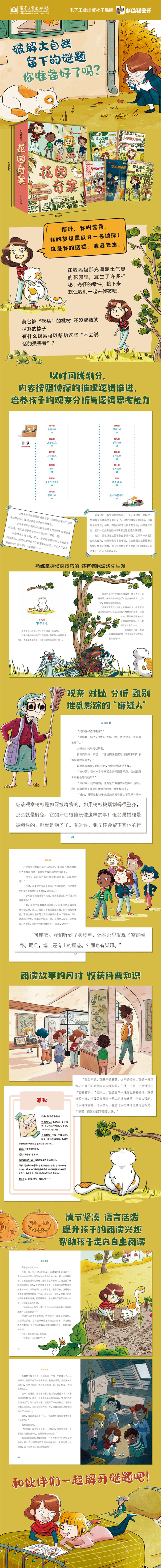本书是一套儿童文学图书。小女孩露露非常喜欢看侦探小说,她有一个梦想:长大以后成为一个名侦探。她有很多好朋友,还有一个英勇的队友——她的猫波波先?。在妈妈的花园里,发生了一系列奇怪的事情:桃树莫名被砍了头,坚果还没成熟就掉落一地,妈妈种的大葱无故失踪……露露和她的伙伴们一起运用大侦探的思维和技巧,解决了在花园里发生的许多神秘、奇怪的事件,在此过程中也搞懂了许多自然科普知识,更加热爱自然。侦破大自然留下的谜题,你准备好了吗?