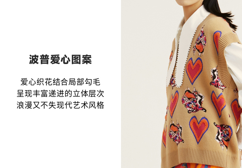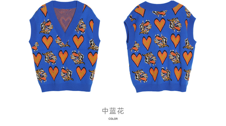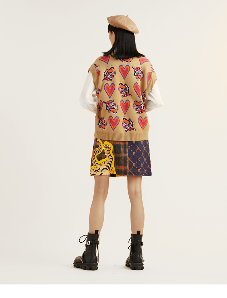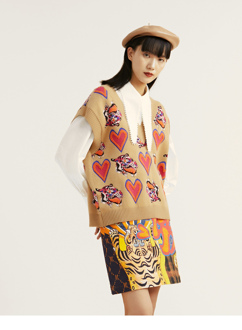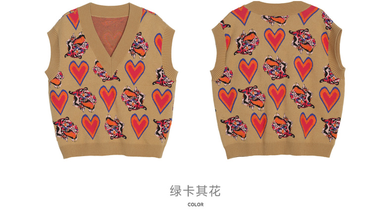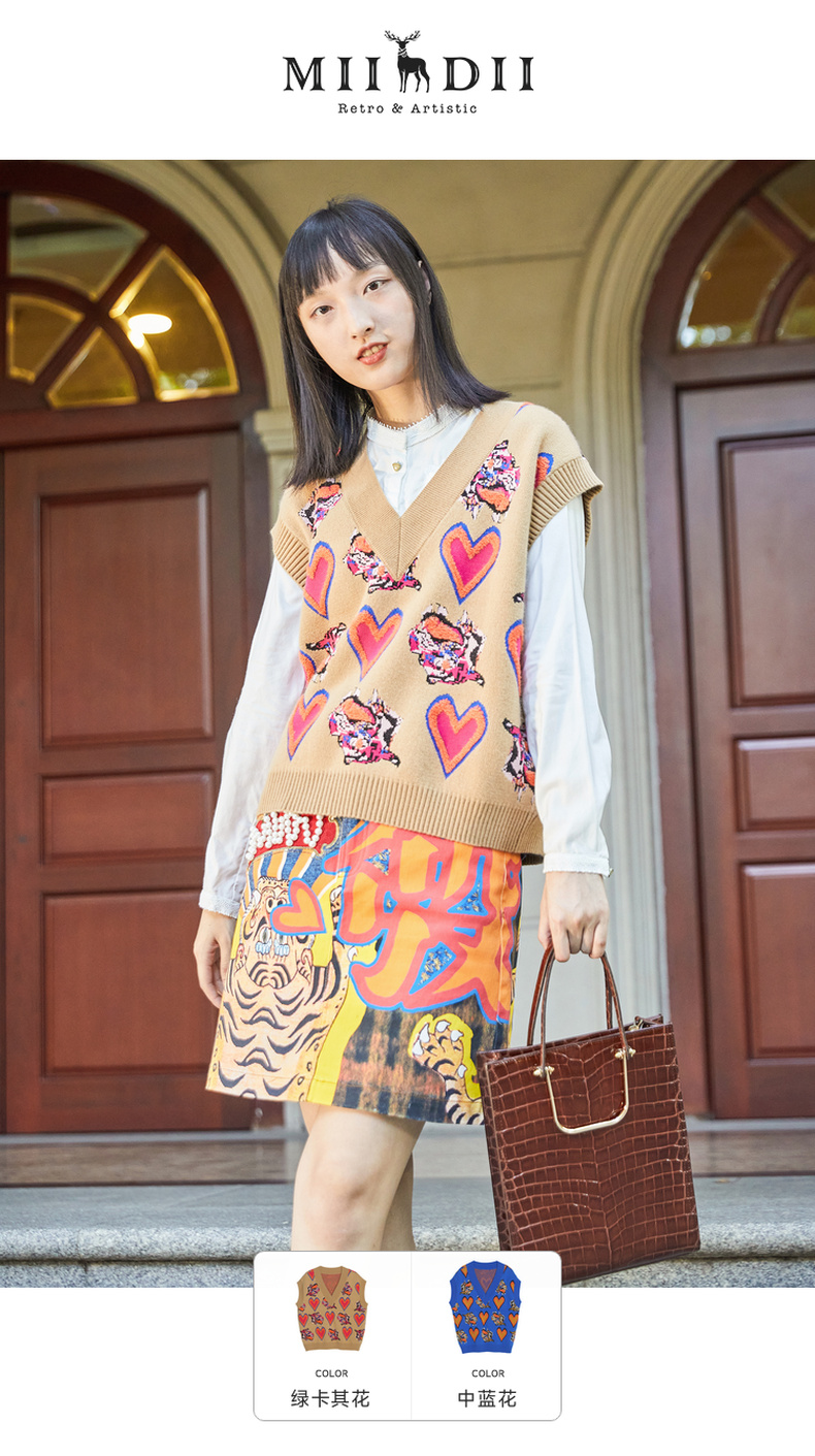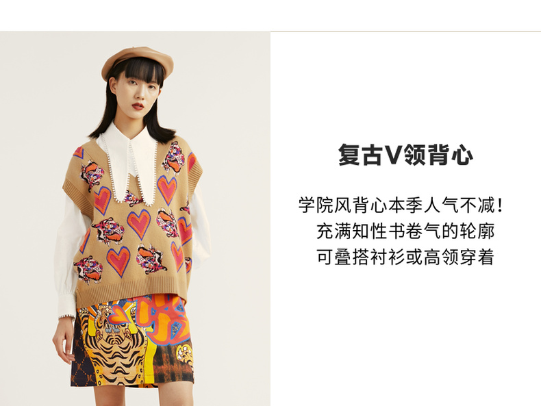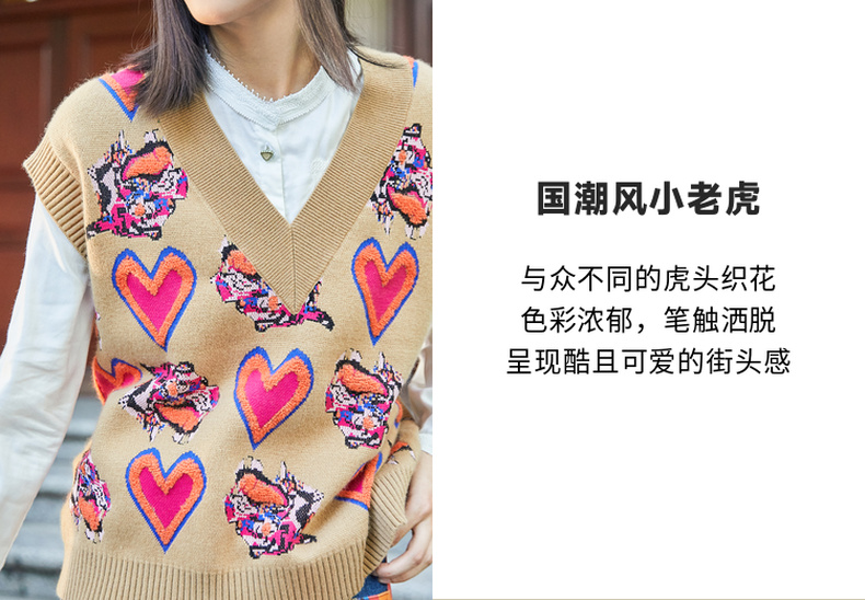 谜底2022新款复古时尚老虎织花V领针织背心马甲外套女228MZ6214