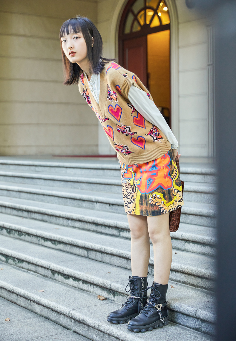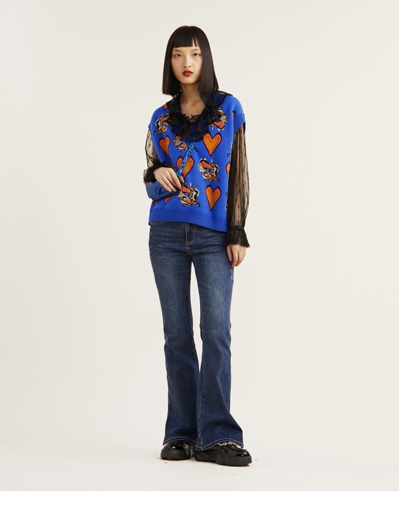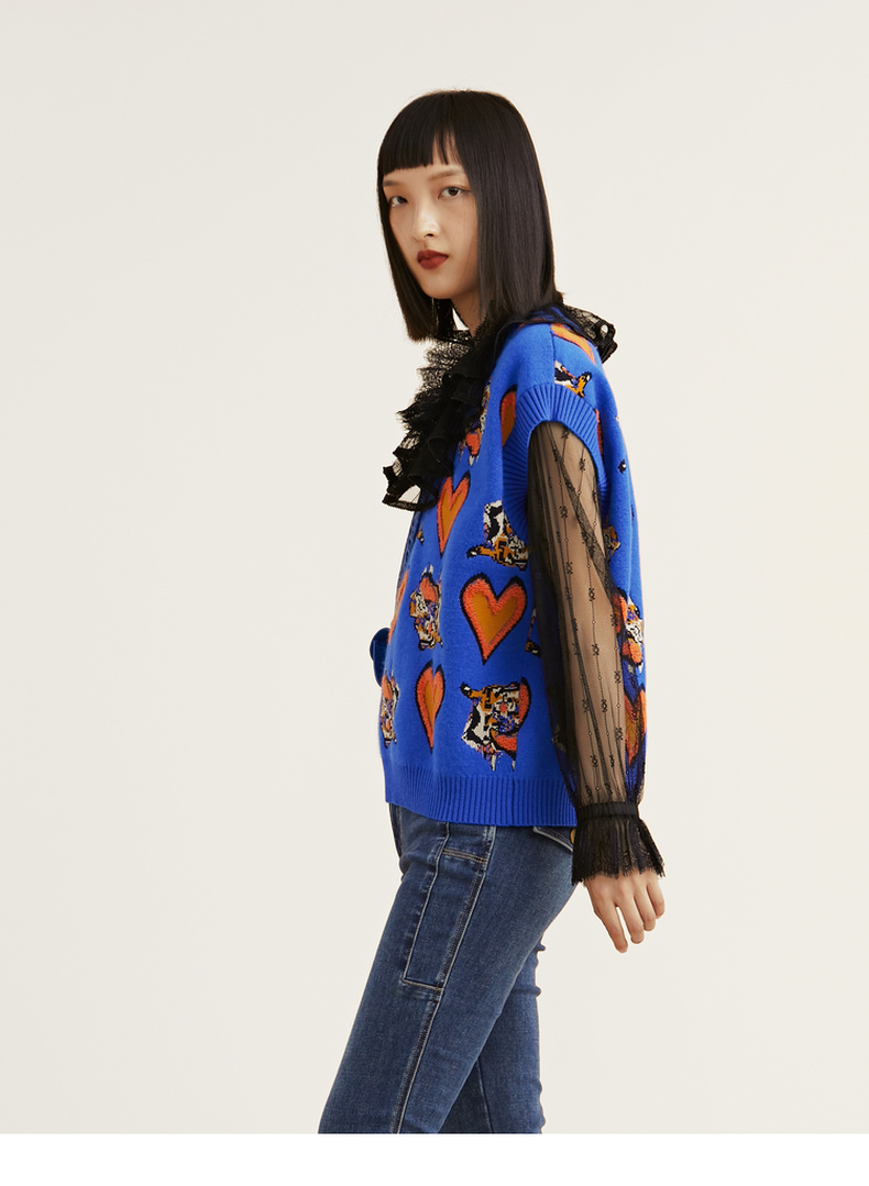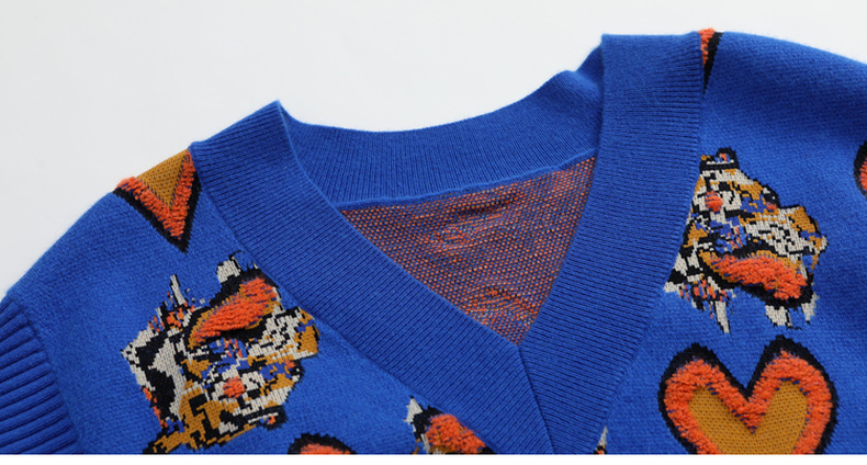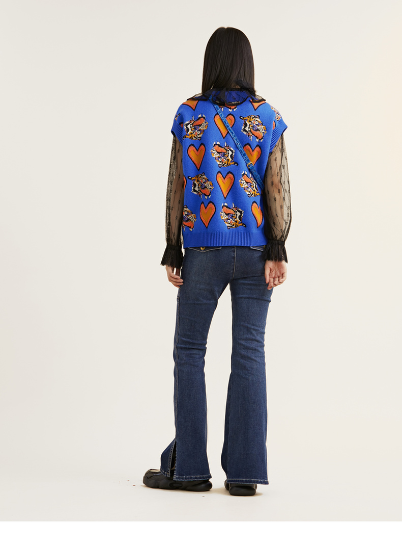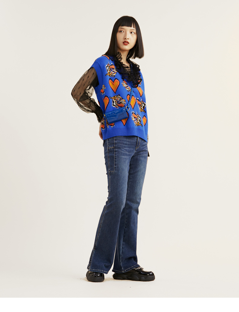 谜底2022新款复古时尚老虎织花V领针织背心马甲外套女228MZ6214