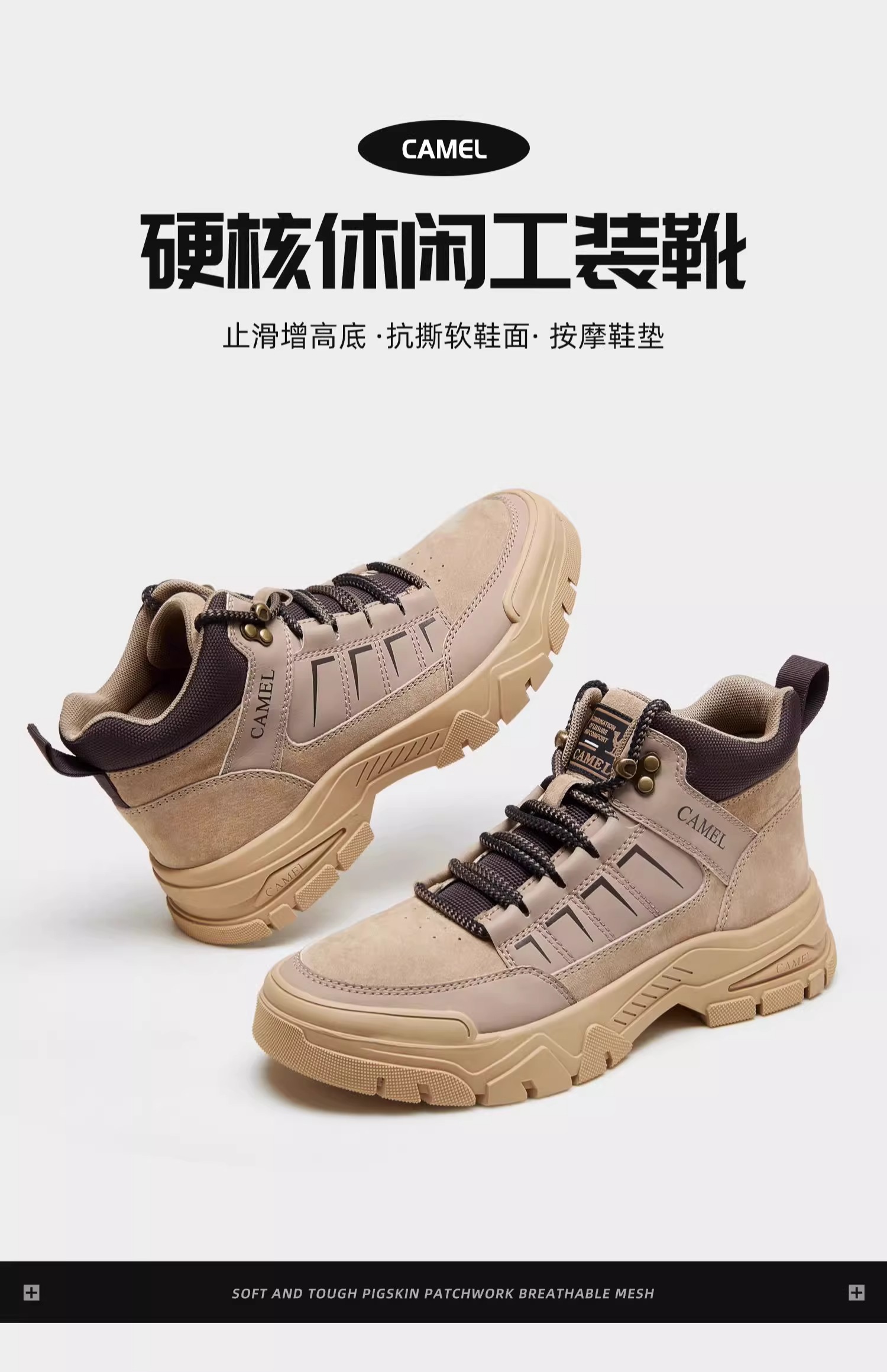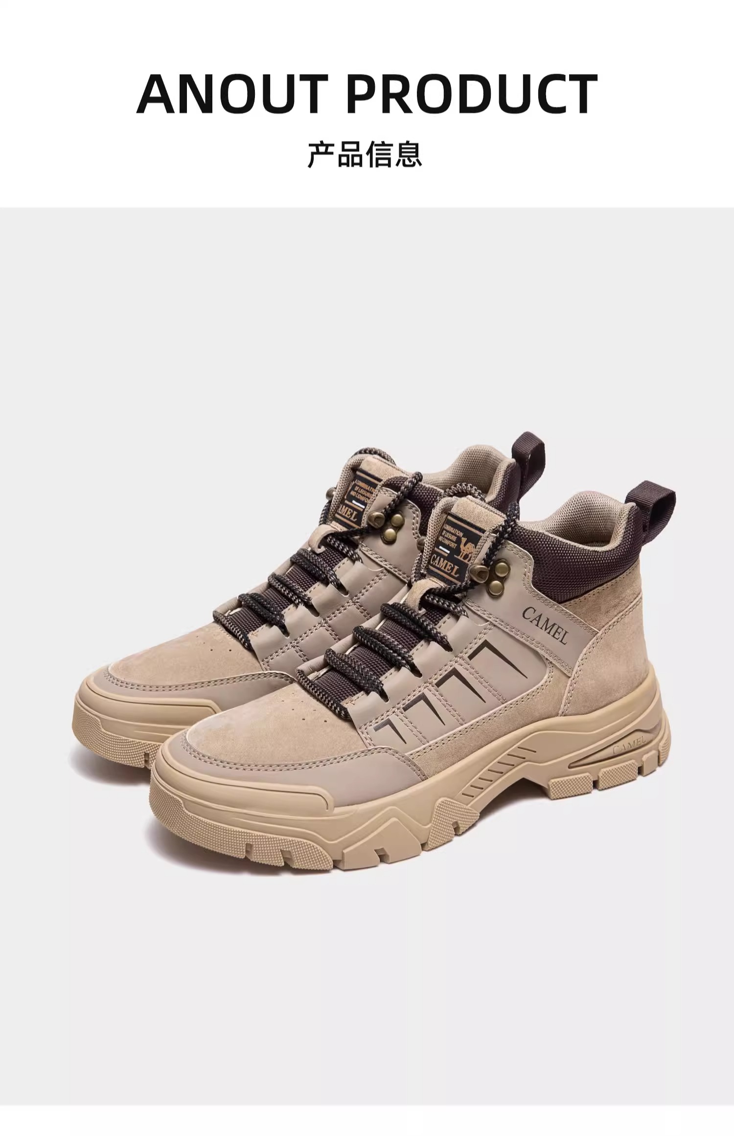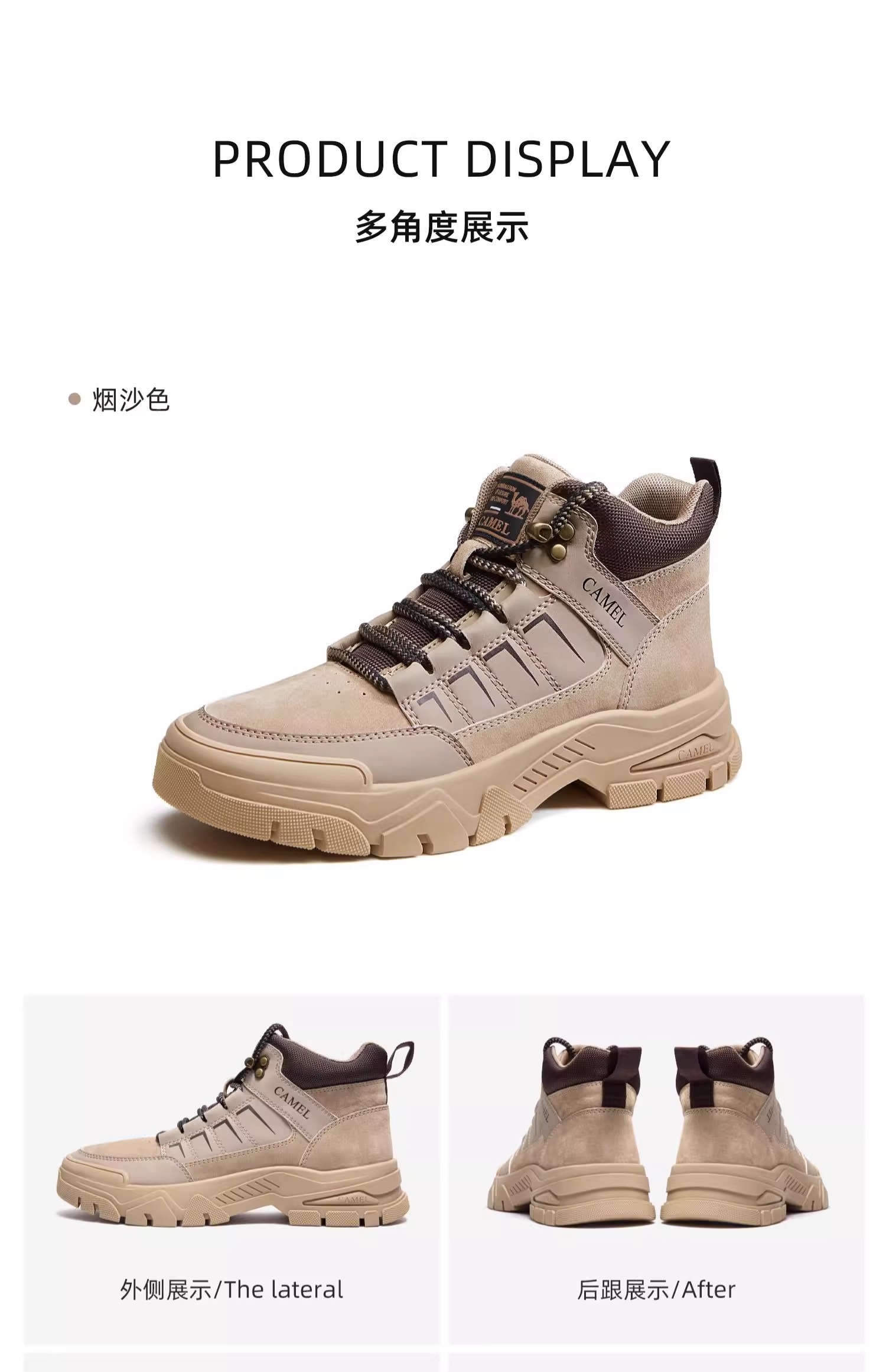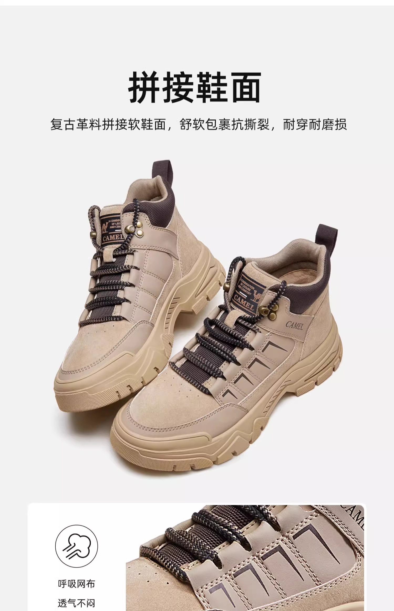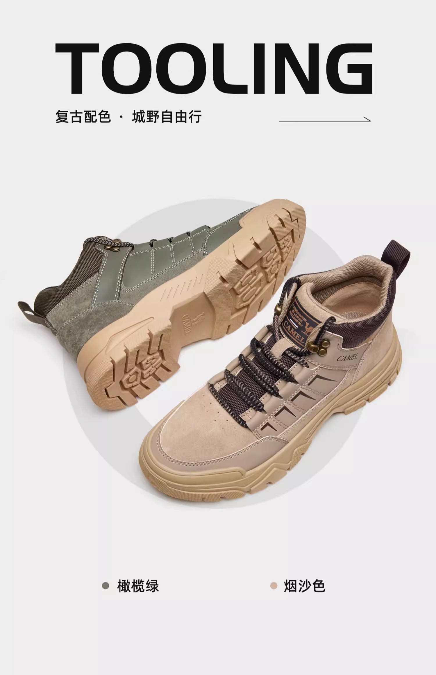 【破圈】骆驼男鞋沙漠靴高帮复古美式工装靴厚底男休闲登山马丁靴 G13W076018