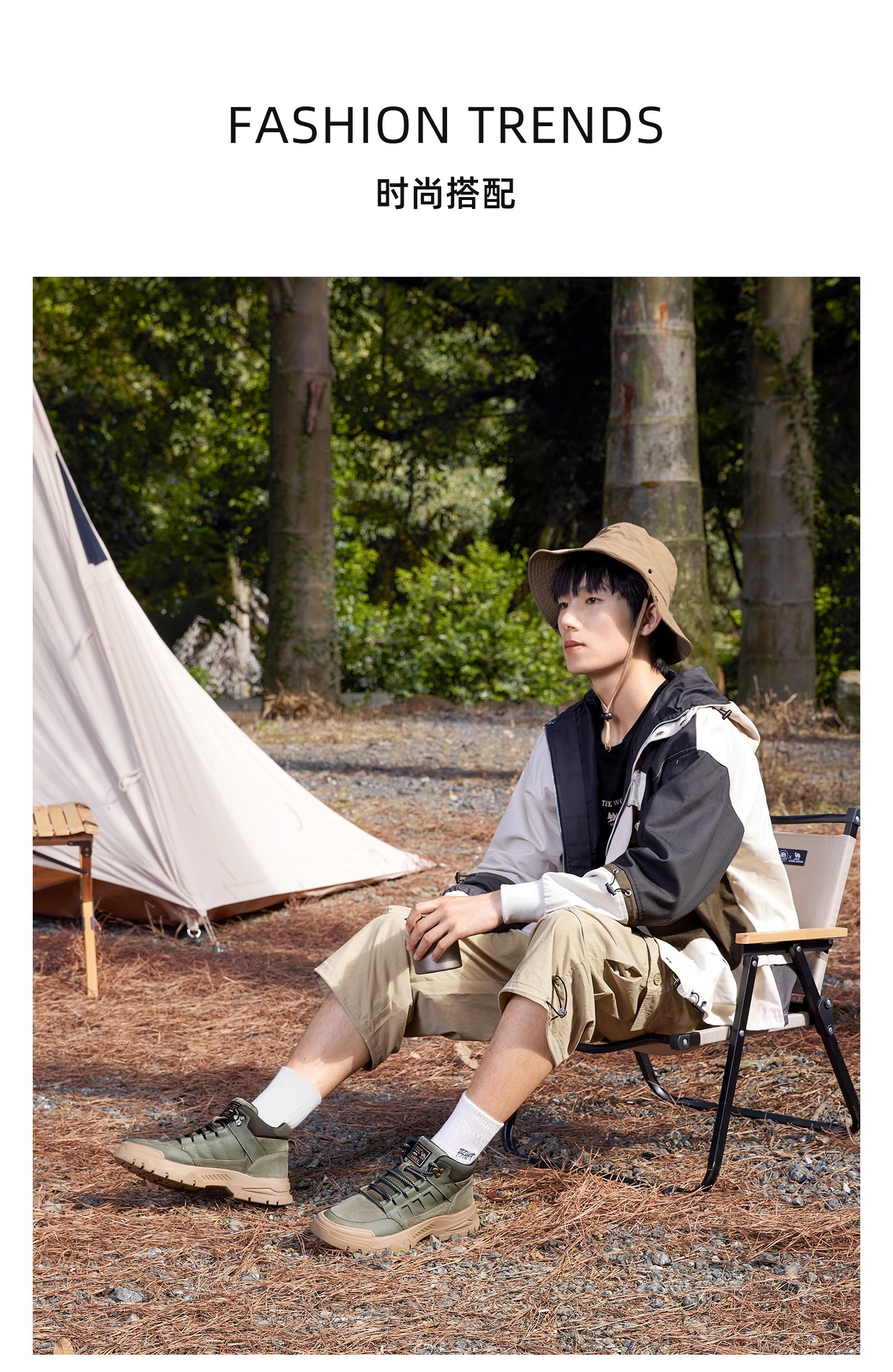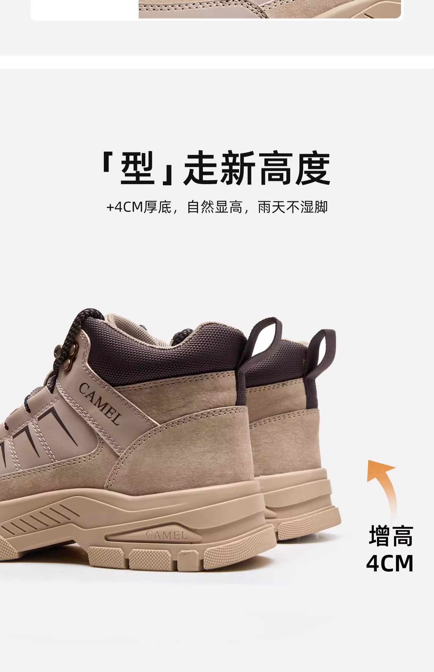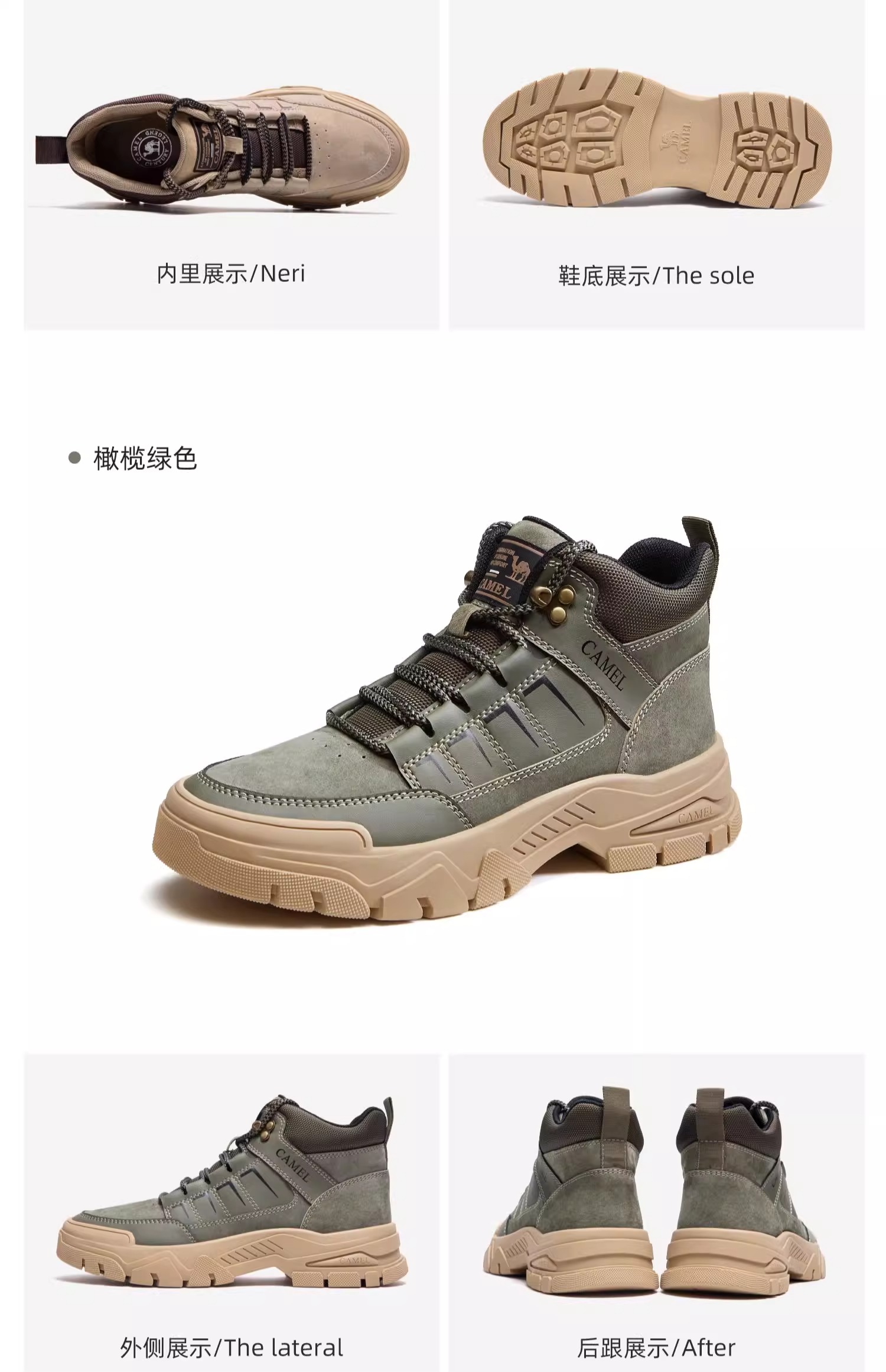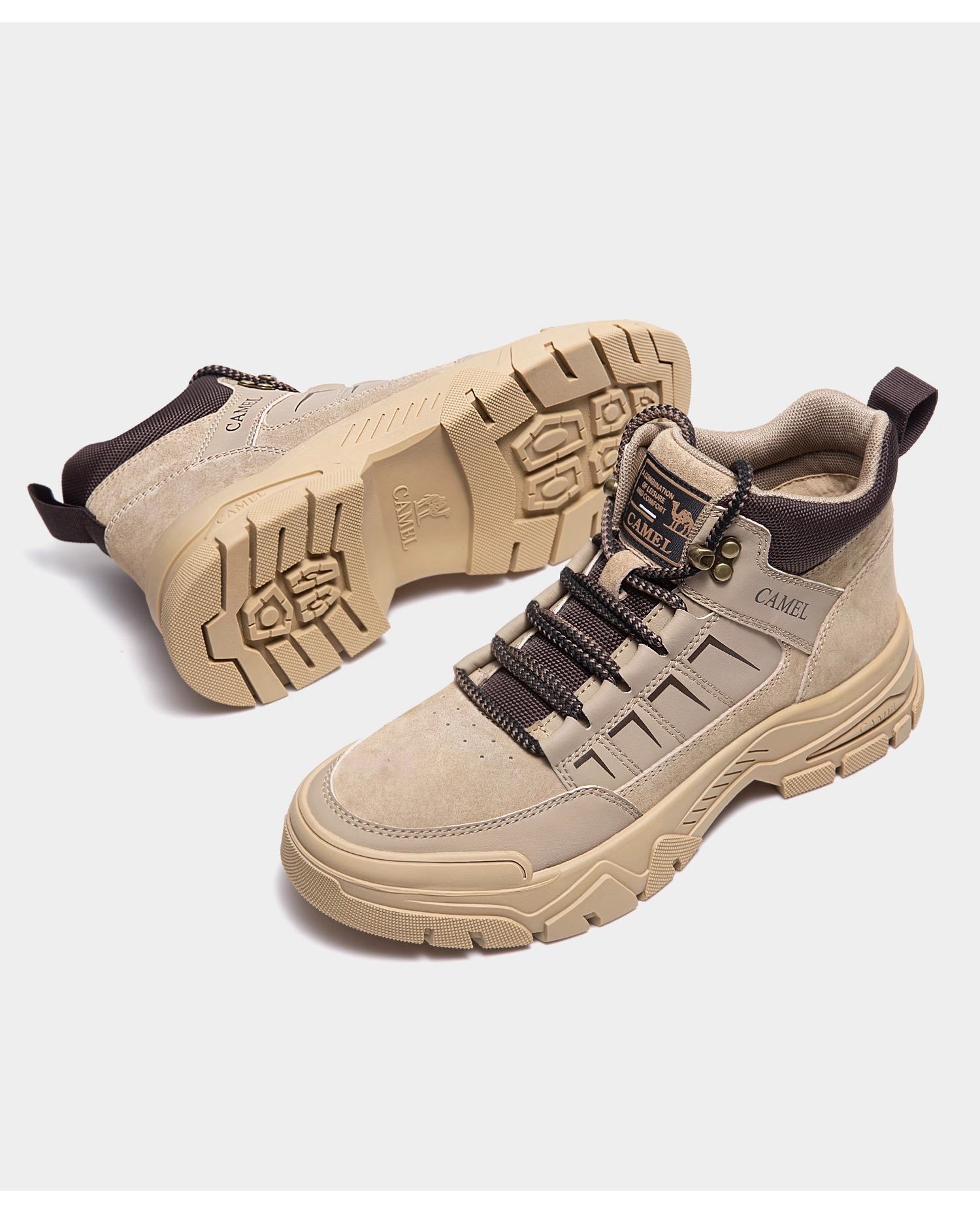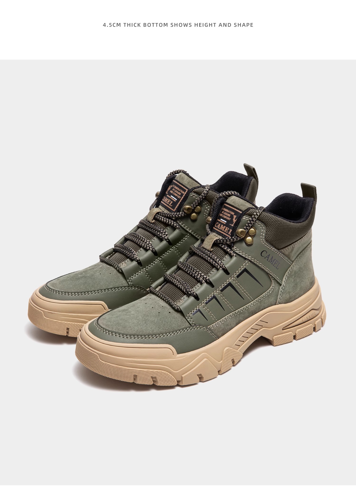 【破圈】骆驼男鞋沙漠靴高帮复古美式工装靴厚底男休闲登山马丁靴 G13W076018