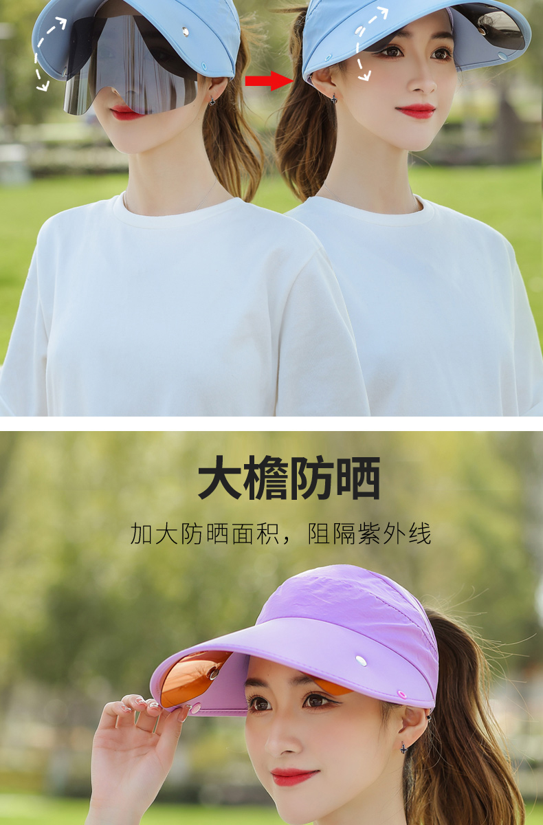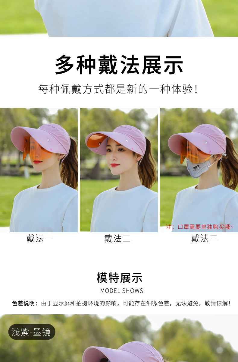 新款爆款网红女神同款防晒帽子面罩夏天遮脸防紫外线空顶太阳帽遮阳帽大檐帽电动车骑车七夕情人节