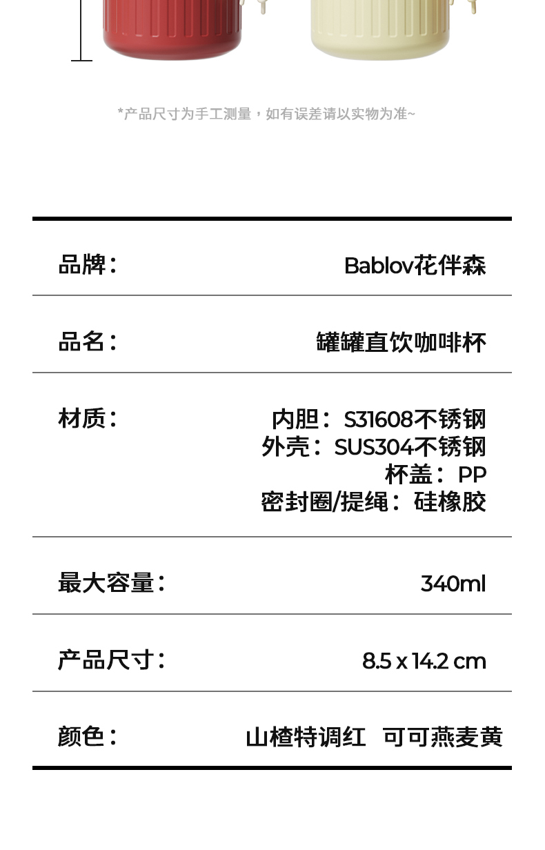bablov保温杯女生高颜值杯子外带水杯小巧便携不锈钢随行咖啡杯