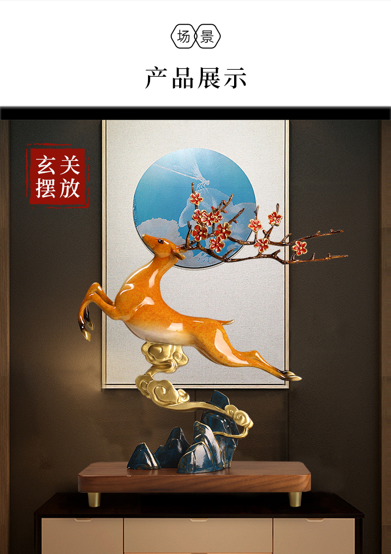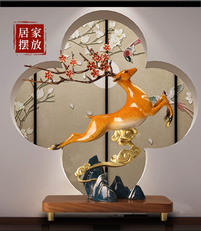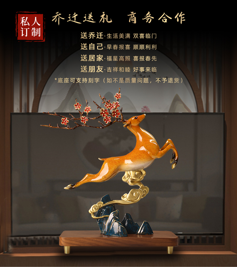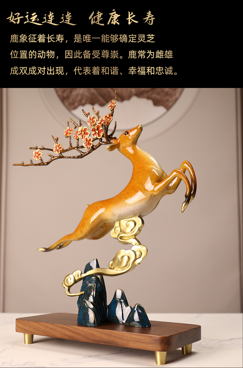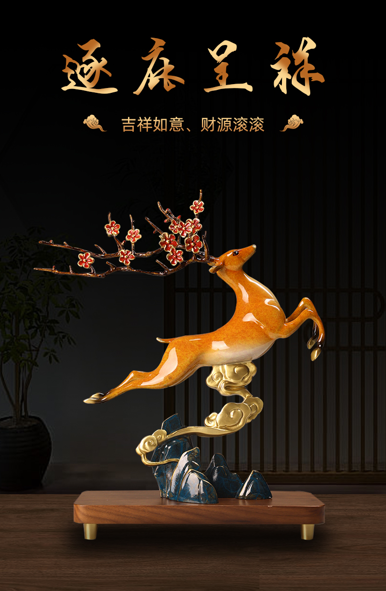 E-QK-BJ1025L 逐鹿呈祥纯铜摆件