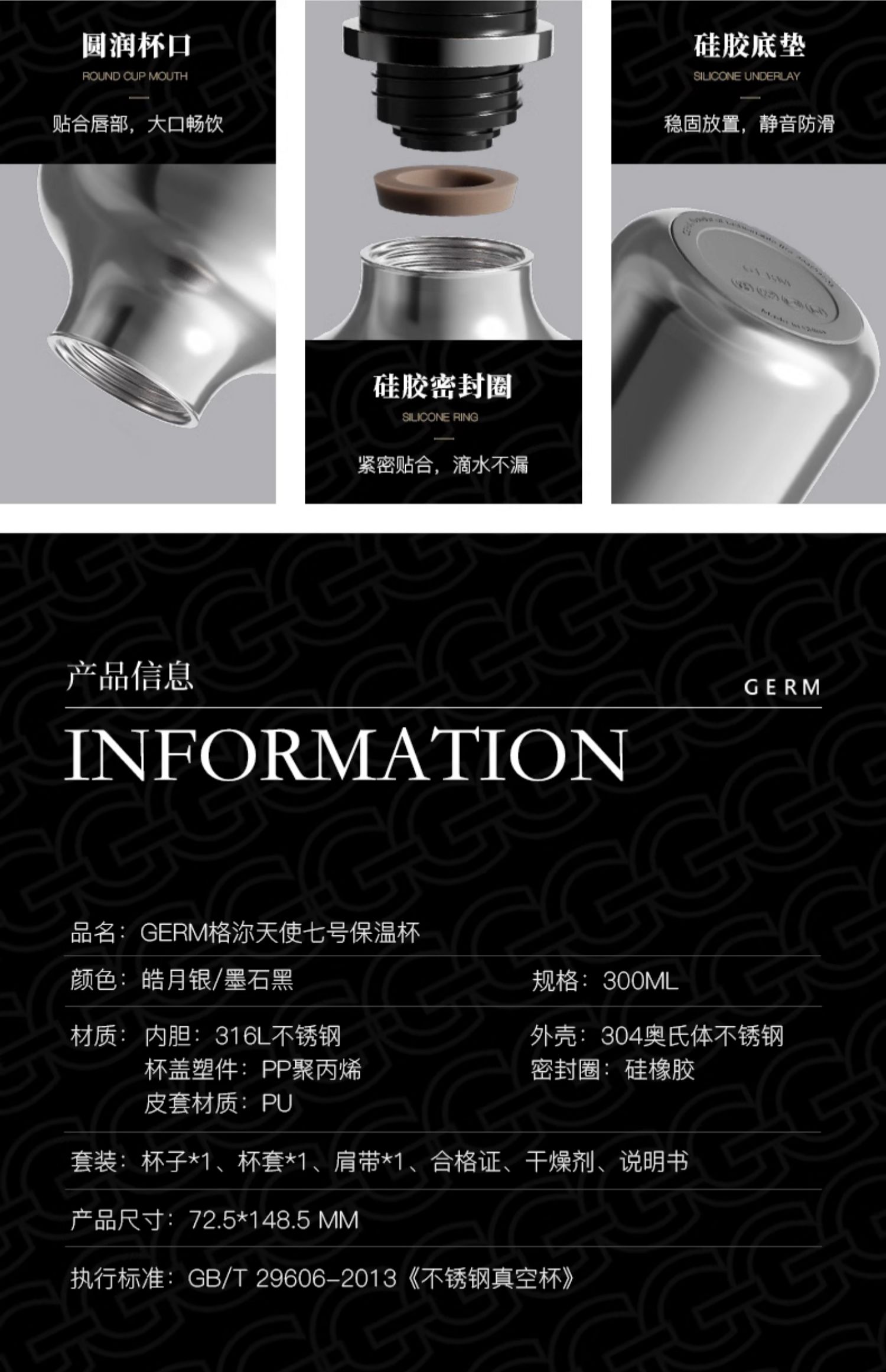 A-GERM-23AW-B14格米-天使七号316L 保温杯 300ML
