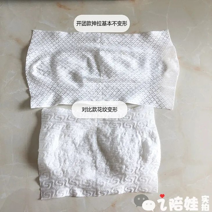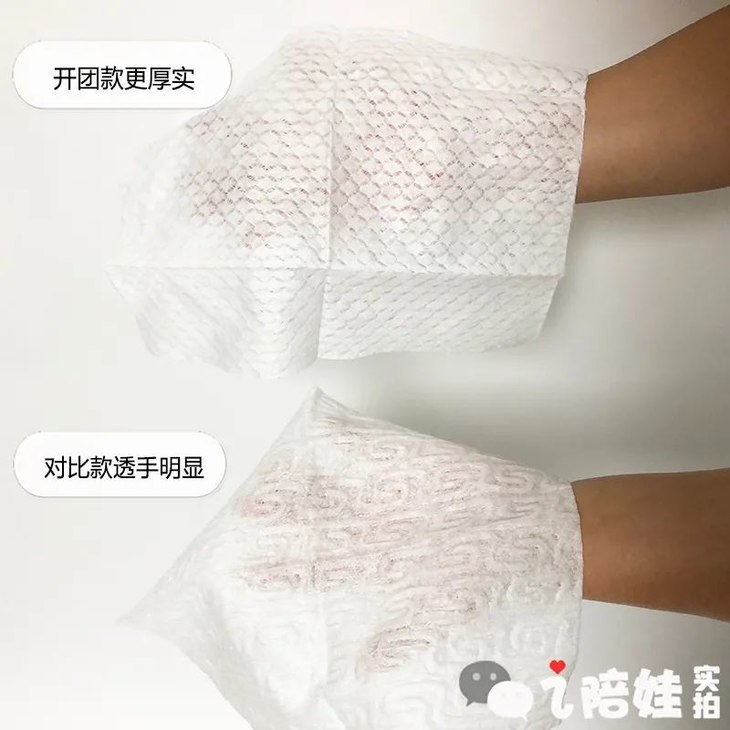 我用手模拟来回摩擦地面的力道,开团款除尘布密度和质地几乎没有变化,还原度挺高的,另一款纹理已经变形起毛絮了,明显松懈了。