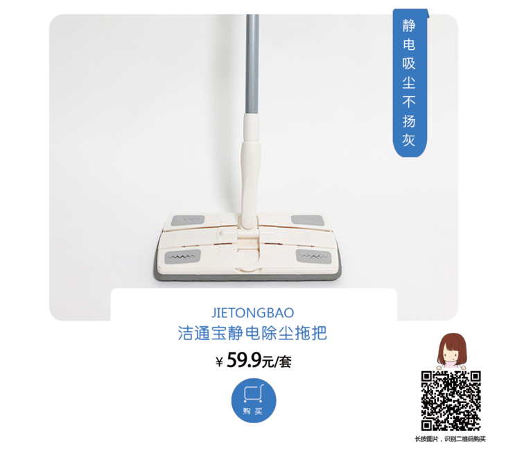 今天给妞开团的是能吸附灰尘毛发的,洁通宝除尘拖把。基本上家具底部和地面灰尘都能清理,吸附毛发的效果也不错,还能干湿两用,价格也挺实惠。