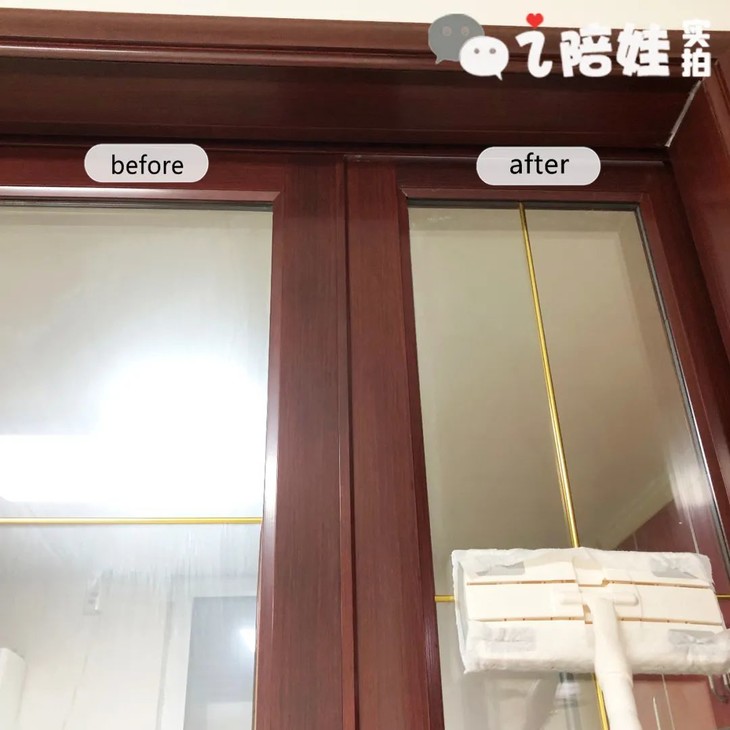 我闺蜜是擦厨房推拉玻璃门(不是特别脏),就先用干巾除尘,再用水浸湿,来回拖几下玻璃就干净多了。