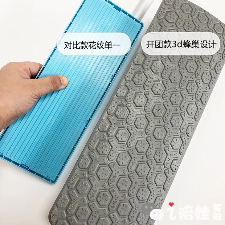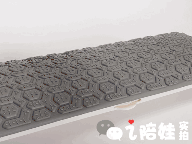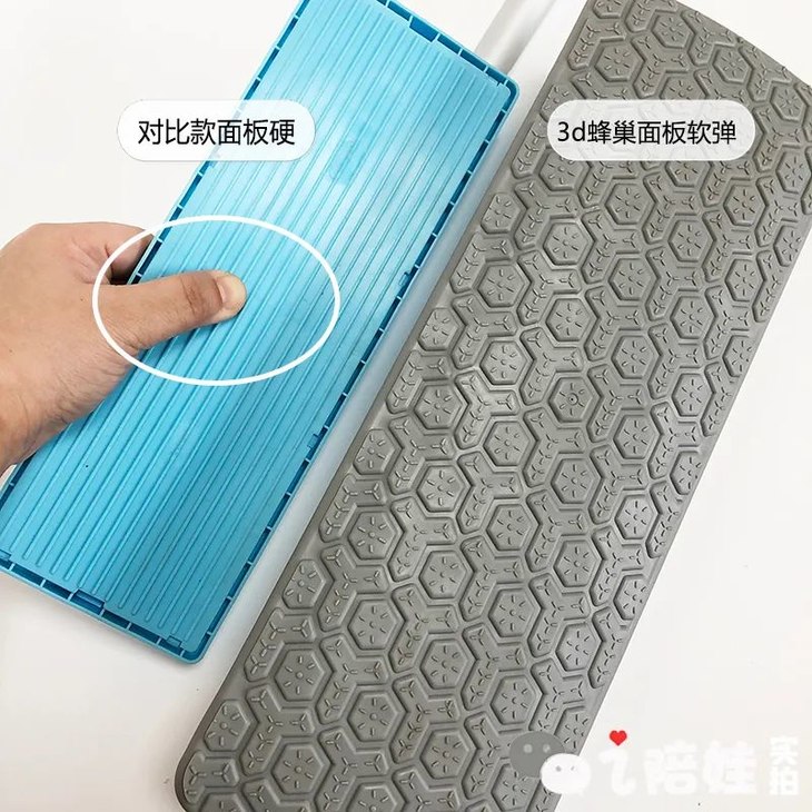 它面板的胶垫是3d蜂巢形状的,软弹又厚实,不容易刮伤地板。