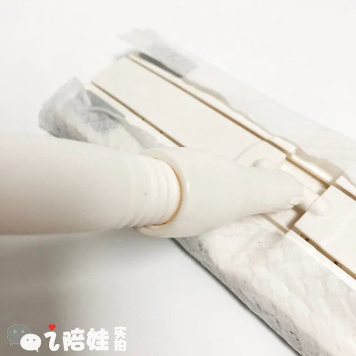 而且,它有个卡扣设计我妈一直念叨说好。就是可以直接夹自家用的抹布,只要地不是特脏,用抹布就更经济一些了(不过拖地力应付小面积脏污还可以,大面积还是得用墩布或者洗地机哈)