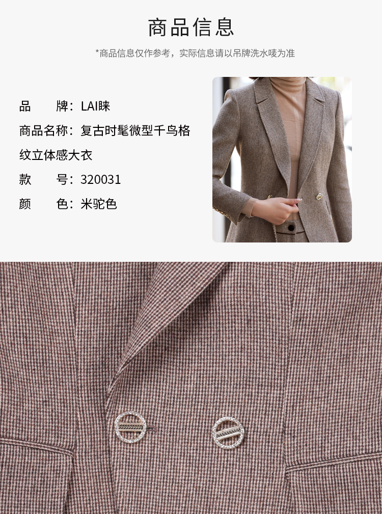 LAI睐复古时髦微型千鸟格纹精致西装外套100009