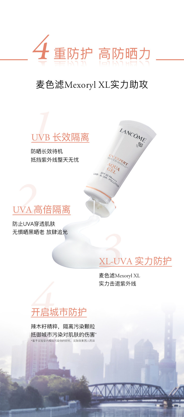 【LANCOME兰蔻水漾轻透“小白管”】防晒隔离露50ml 轻薄透气 SPF50+ 清爽型