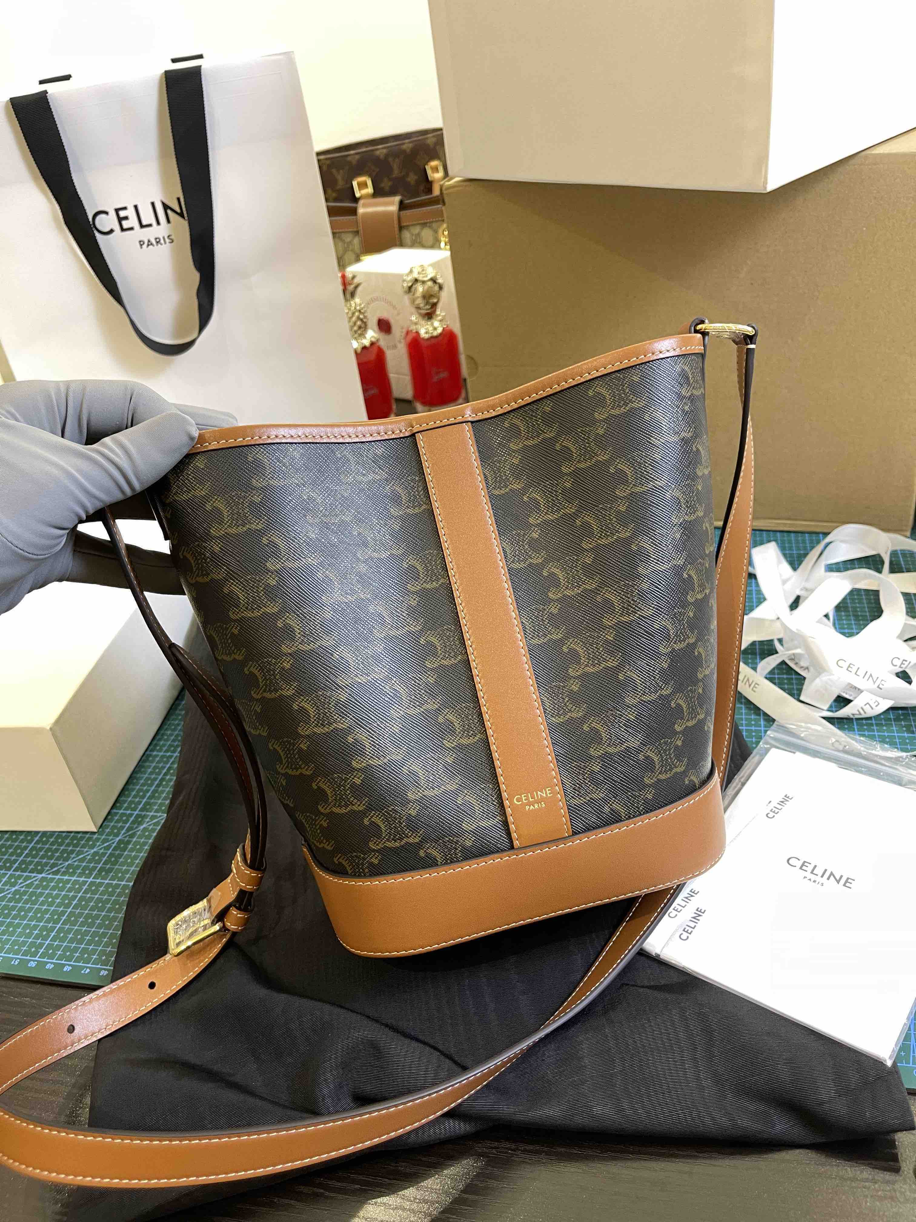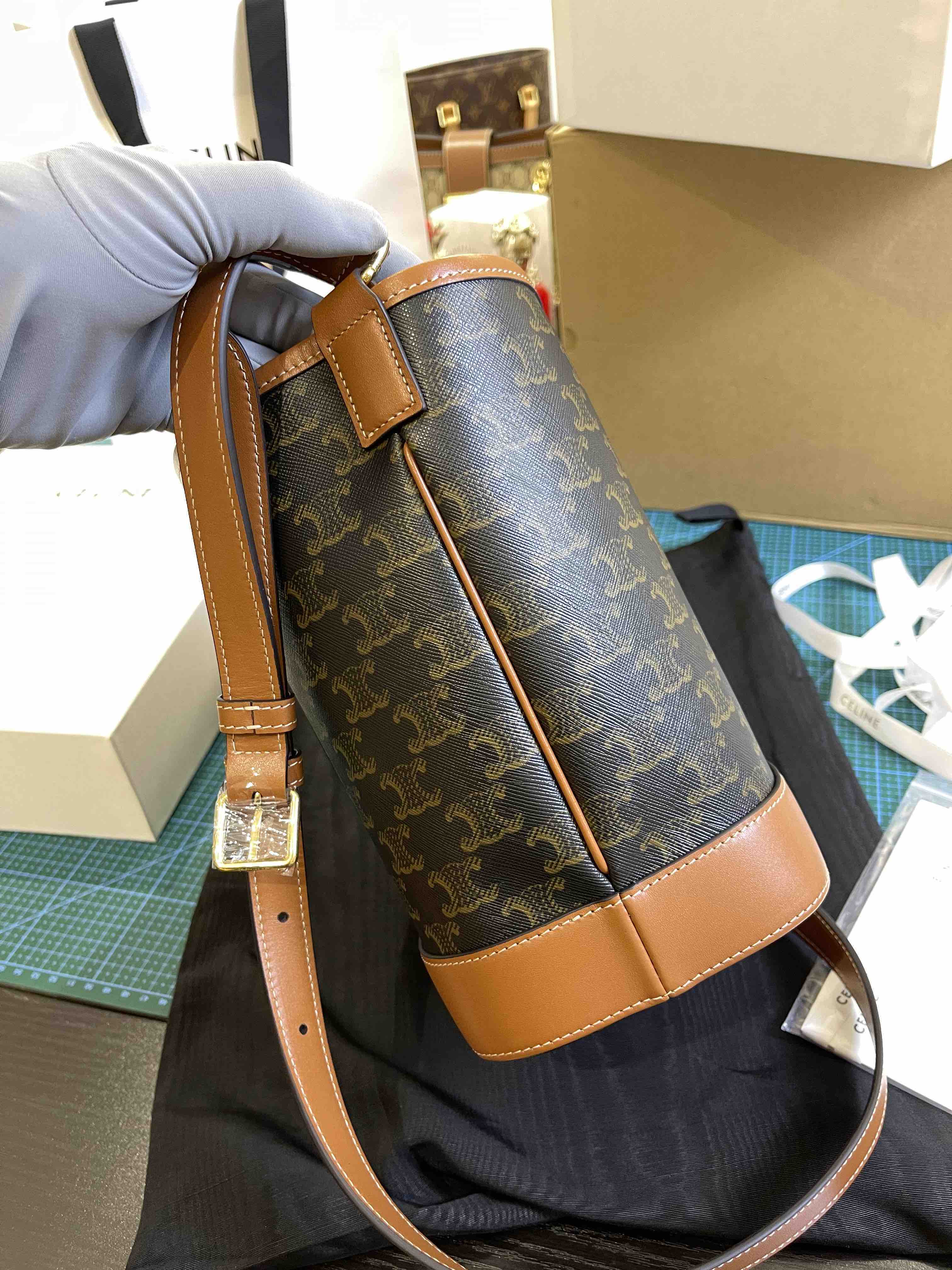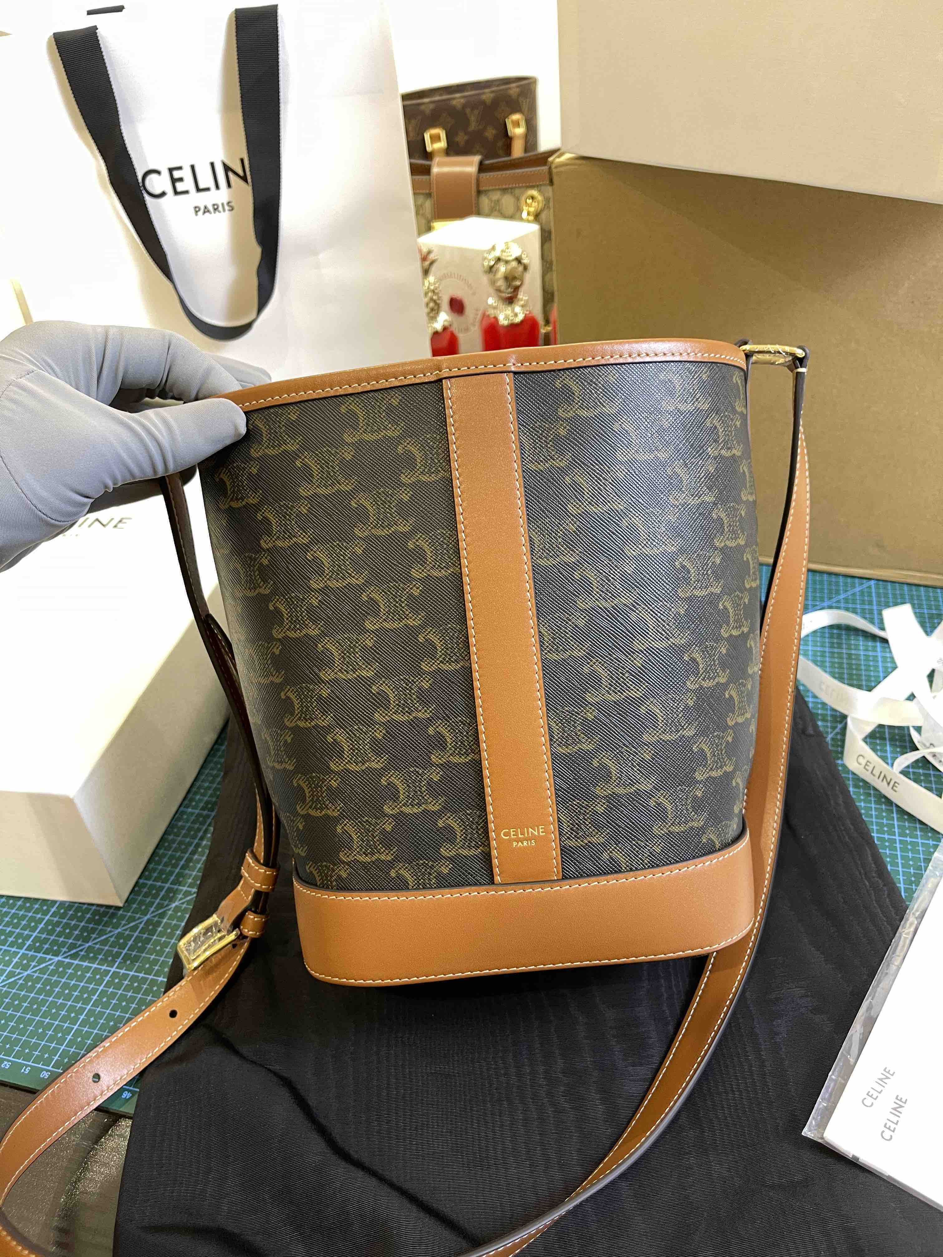 Celine原厂皮老花水桶包小号