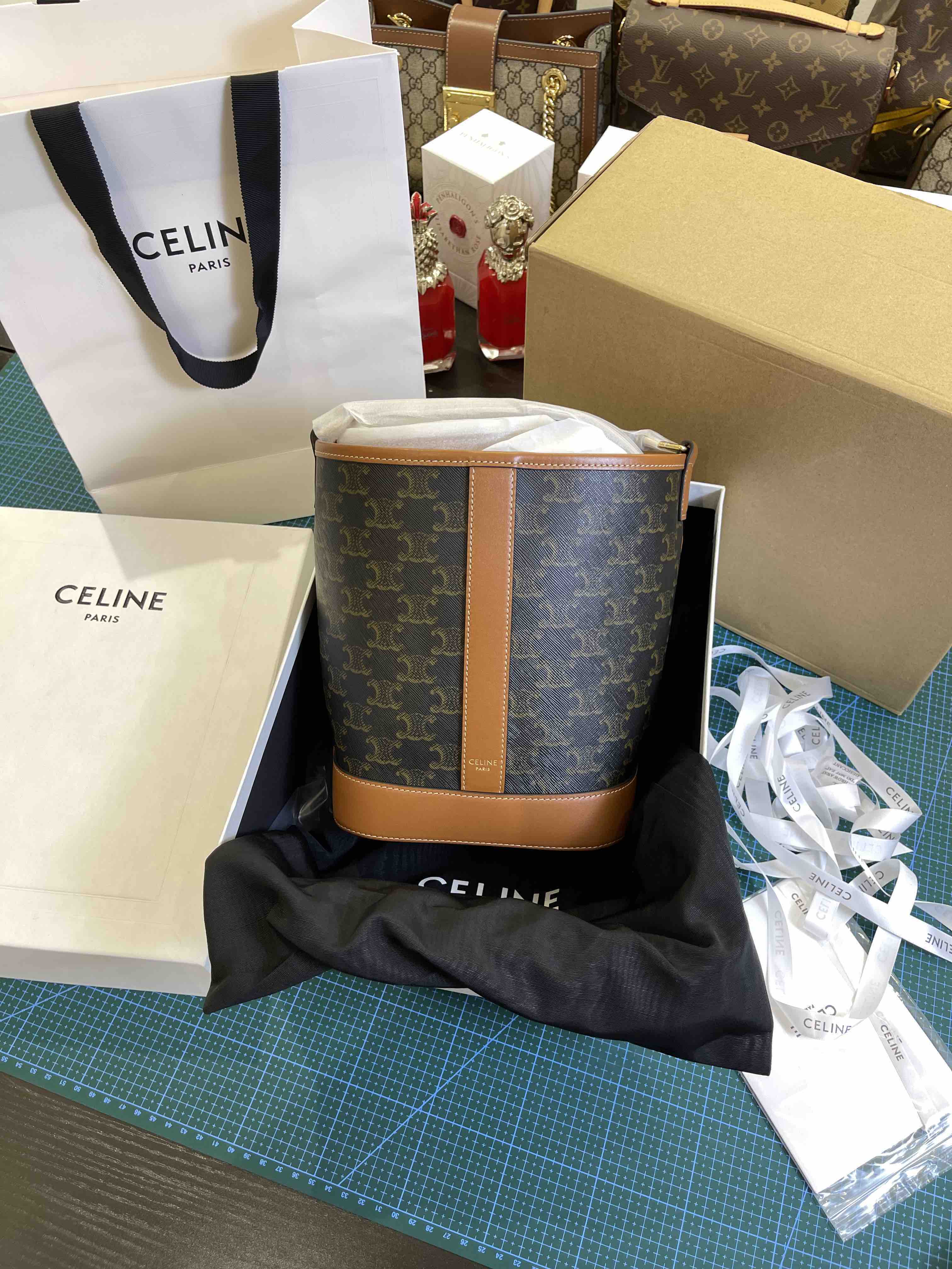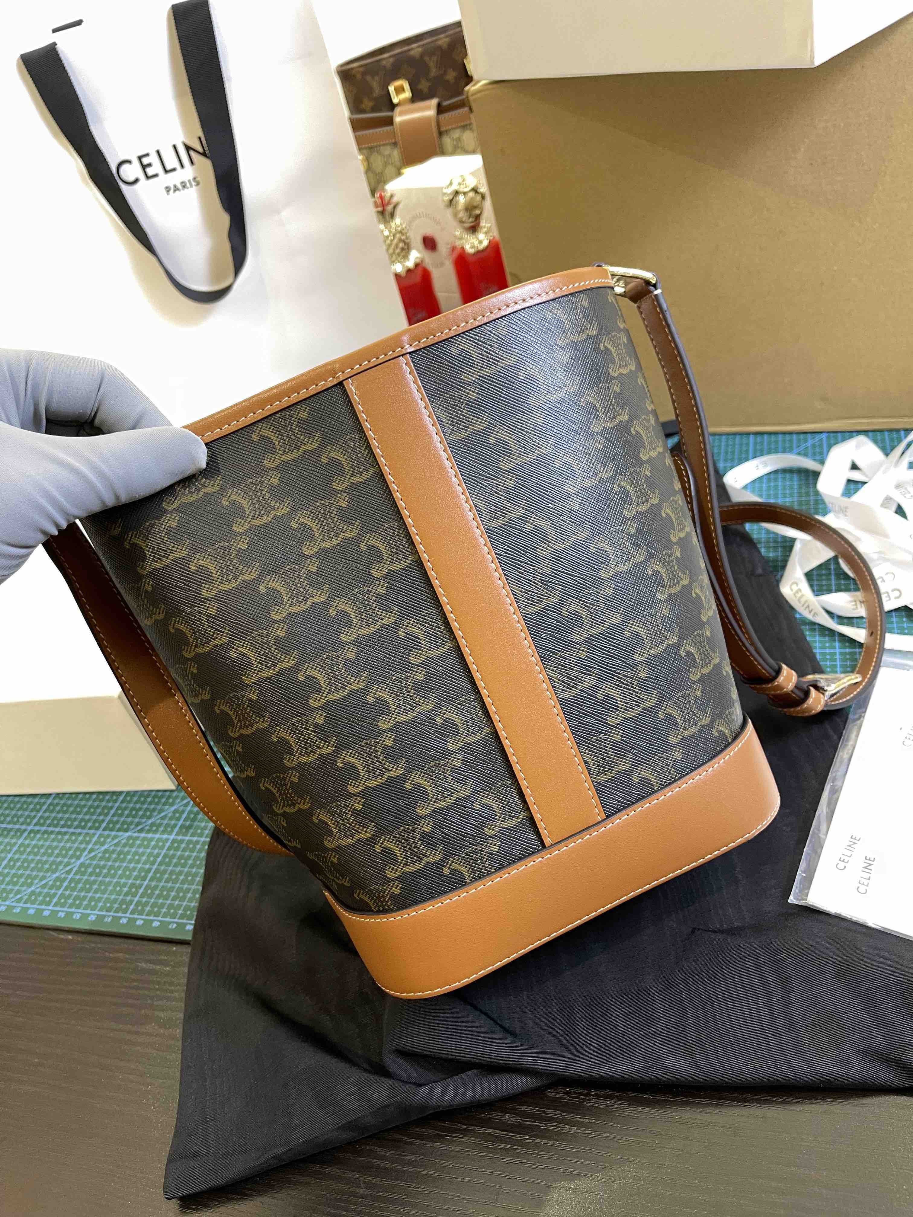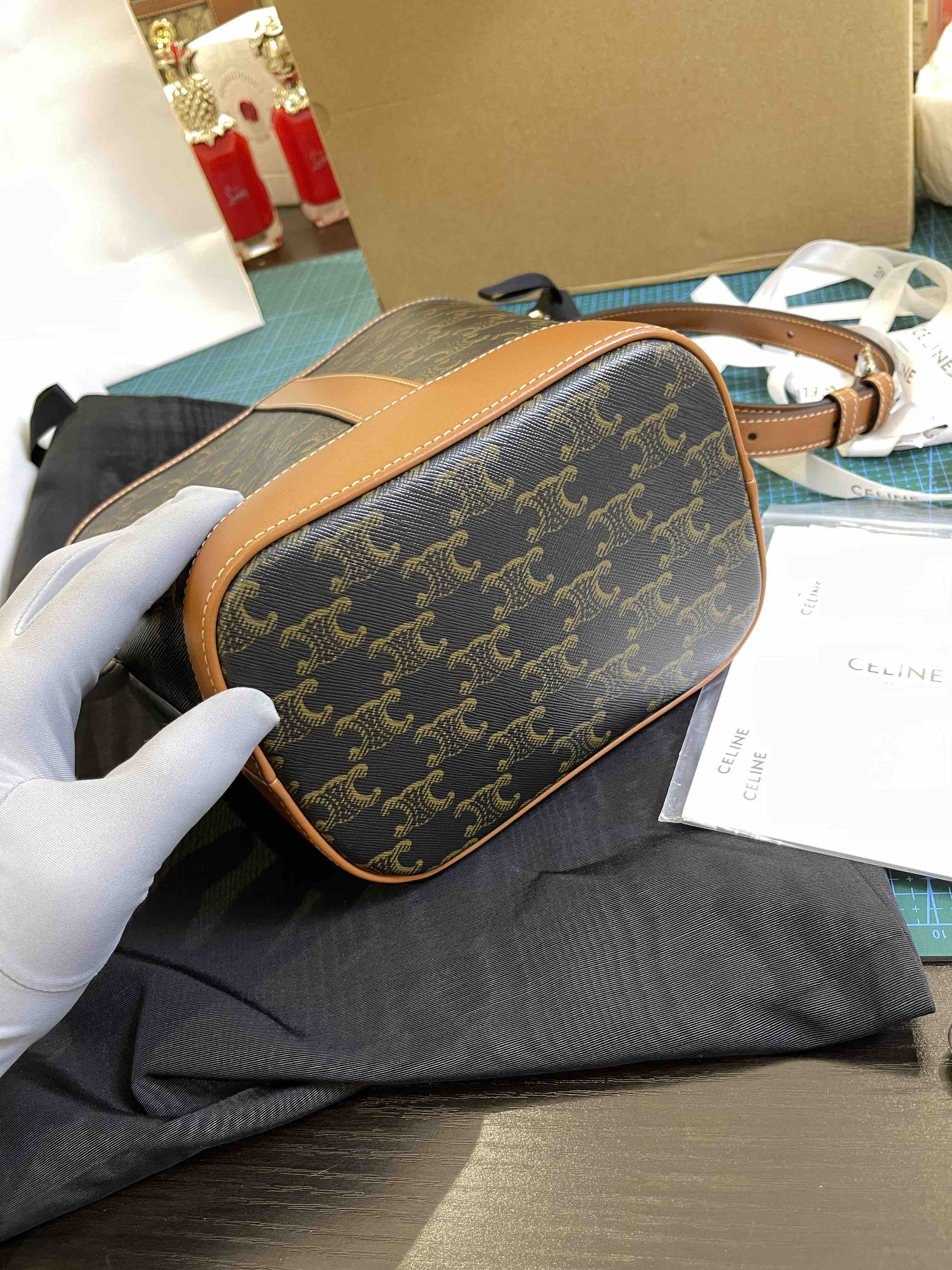 Celine原厂皮老花水桶包小号