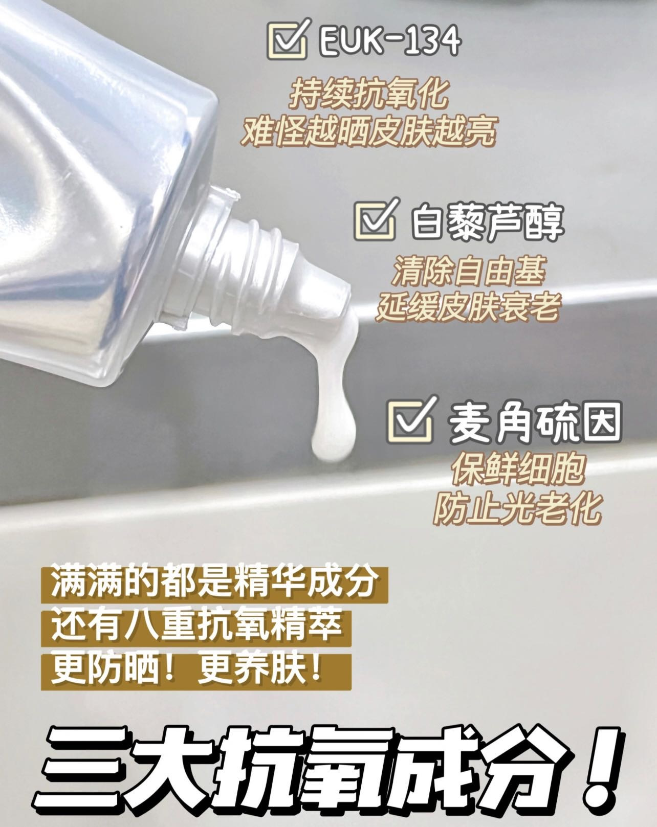 三抗----晒不黑、晒不老、抗氧化一手抓