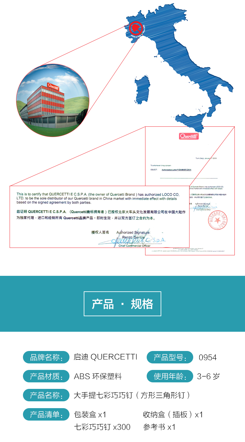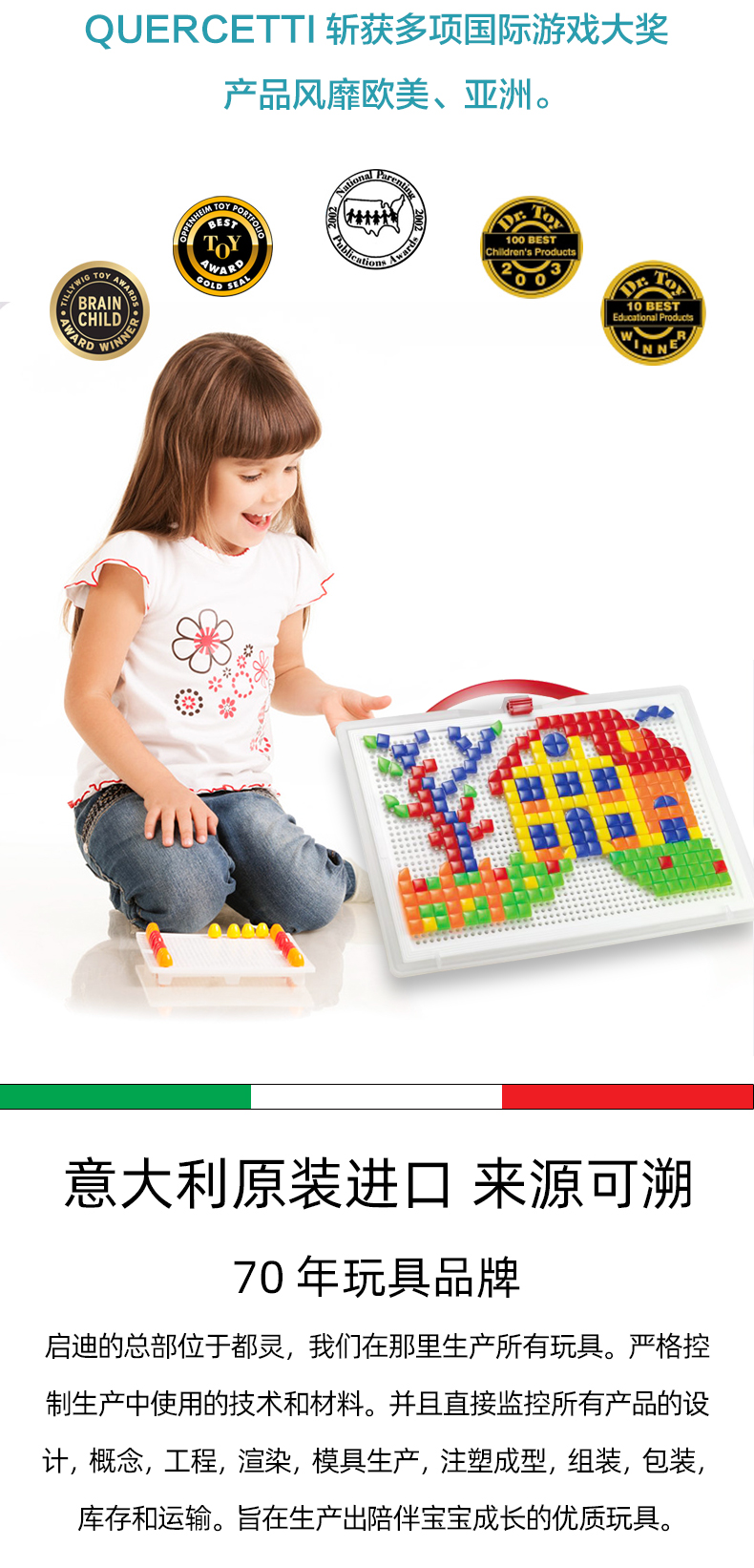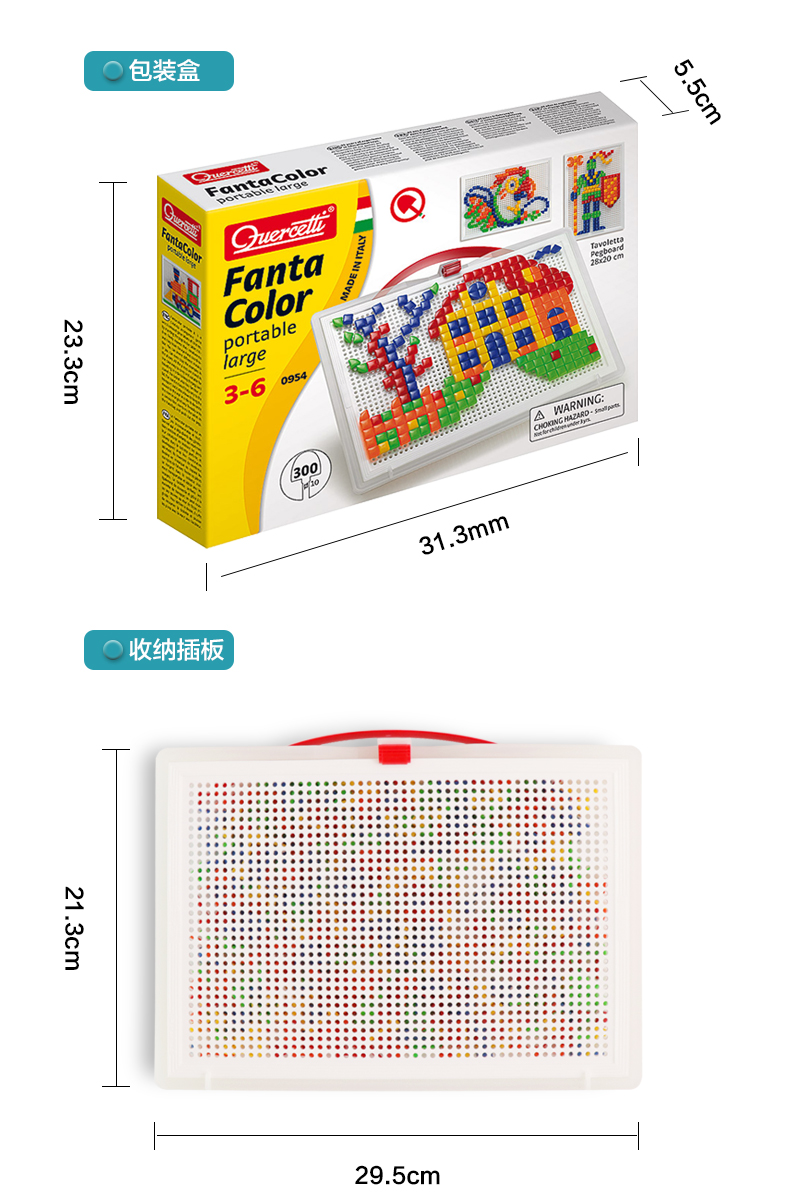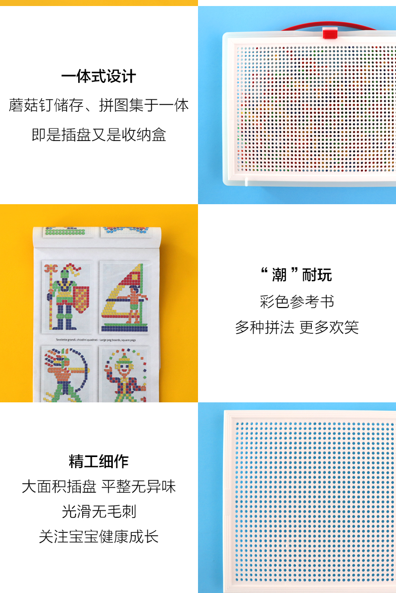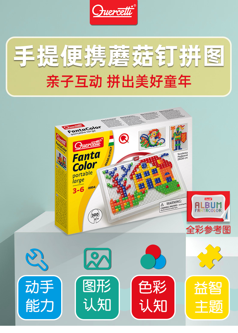 Quercetti启迪 蘑菇钉系列 大手提七彩巧巧钉(方形三角形钉) 3+岁 意大利