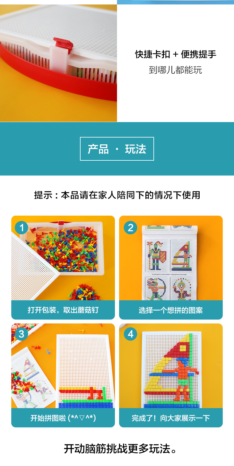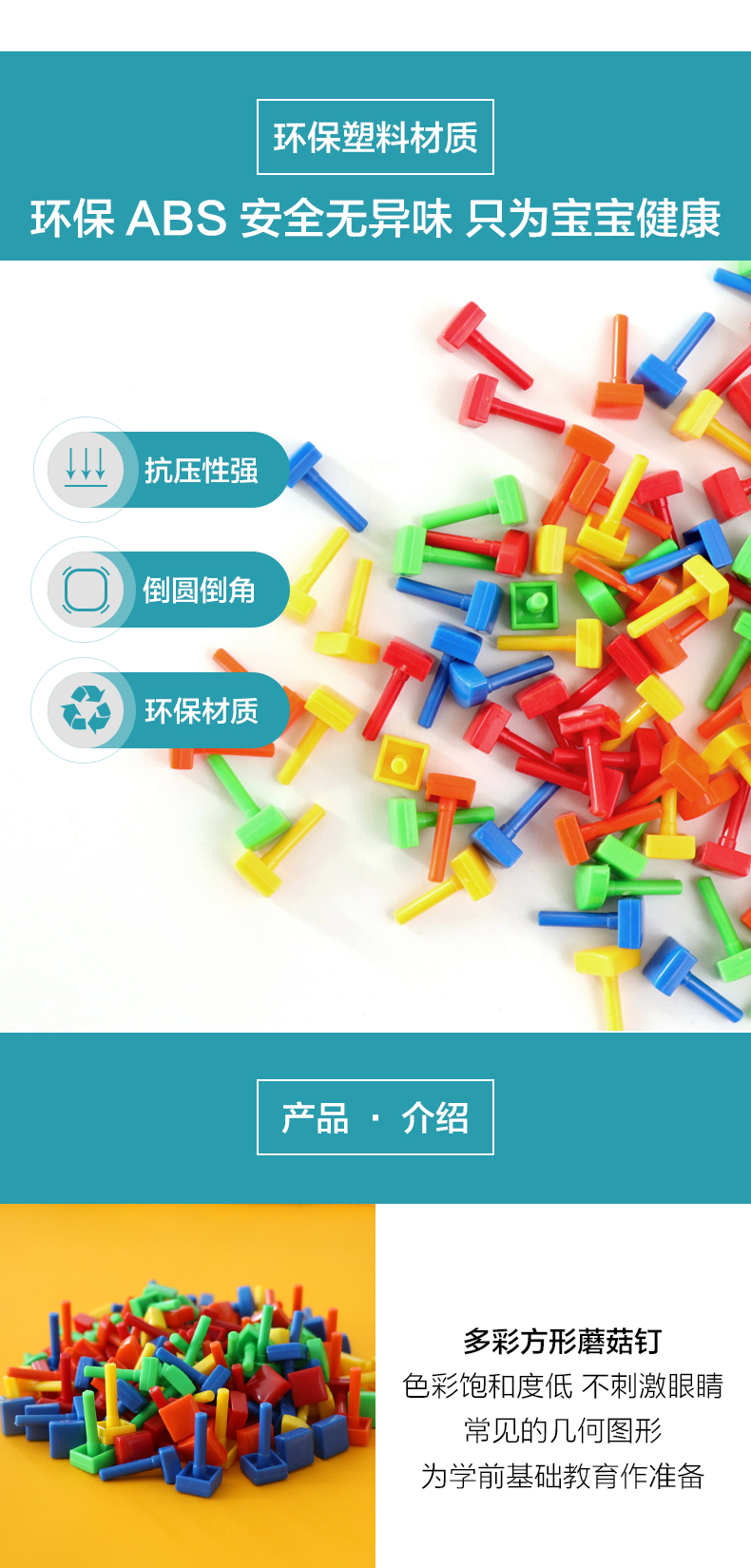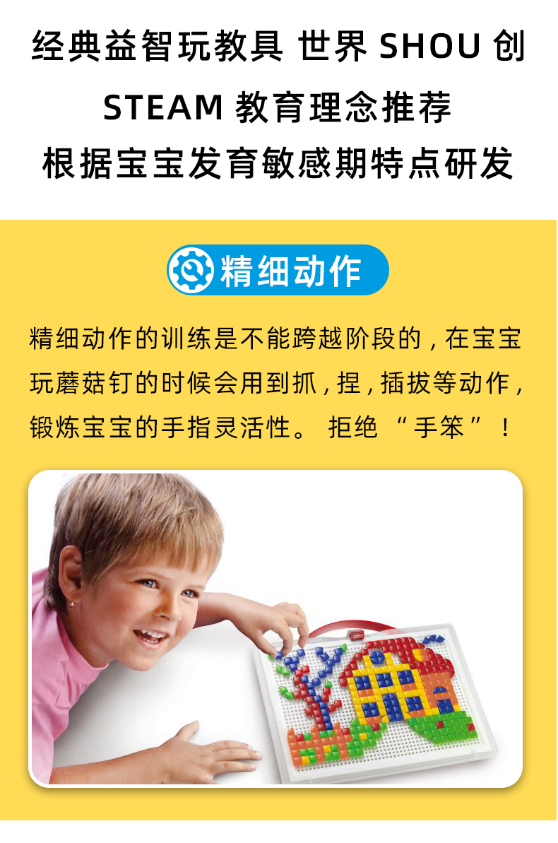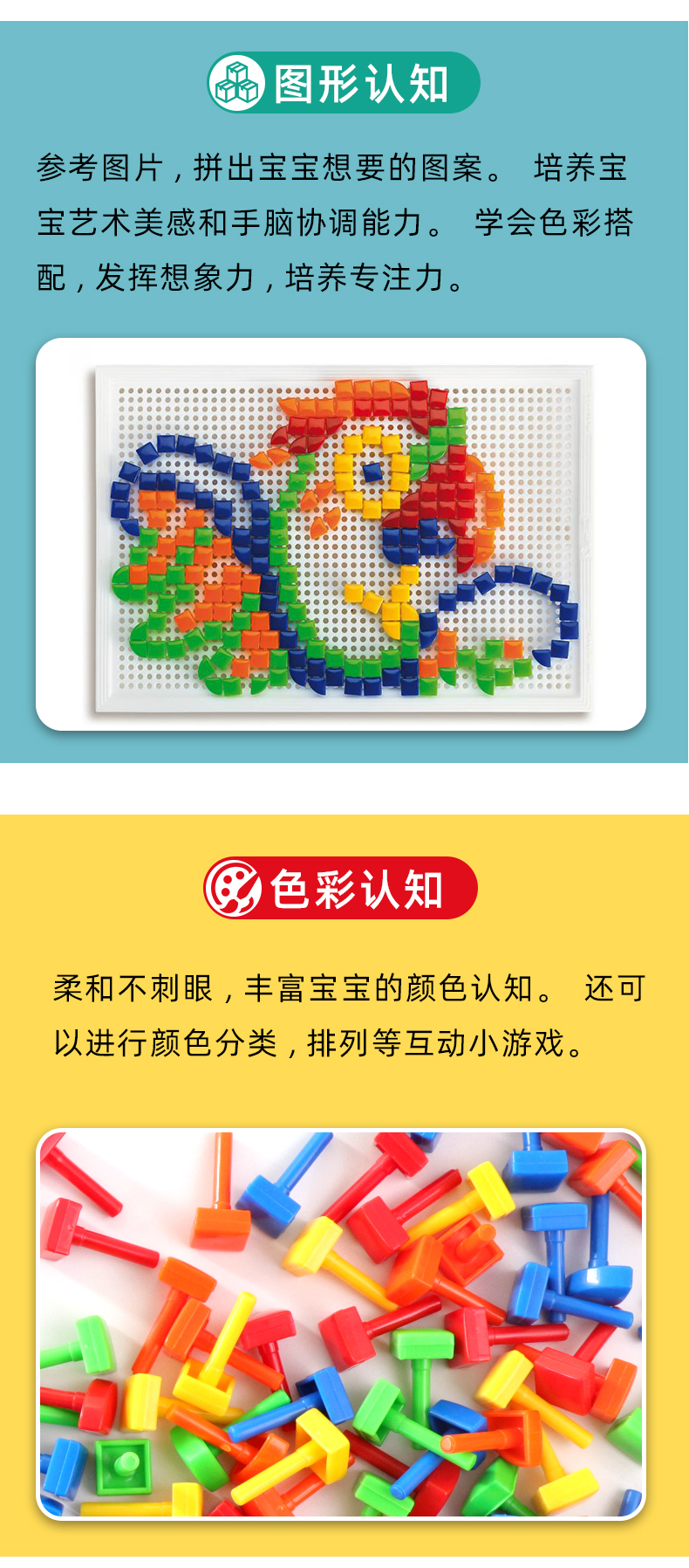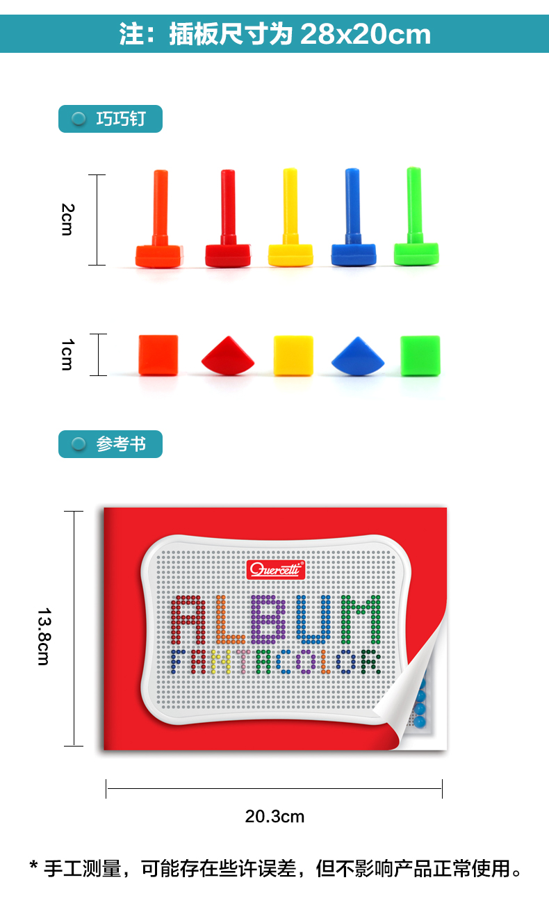 Quercetti启迪 蘑菇钉系列 大手提七彩巧巧钉(方形三角形钉) 3+岁 意大利