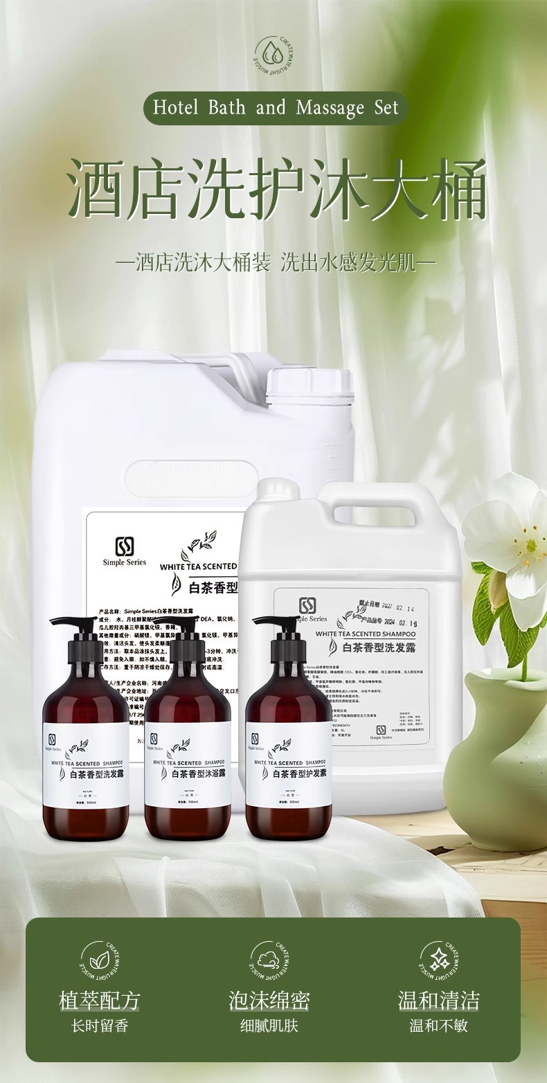 五星级酒店宾馆白茶洗发水沐浴露套装浴场民宿洗浴用品批发补充装