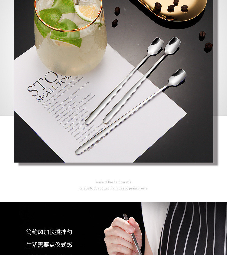 【出口304不锈钢搅拌勺】韩式304不锈钢长冰勺家用咖啡加长搅拌勺多用途加厚调酒长柄勺子