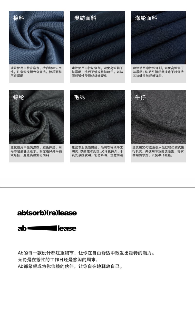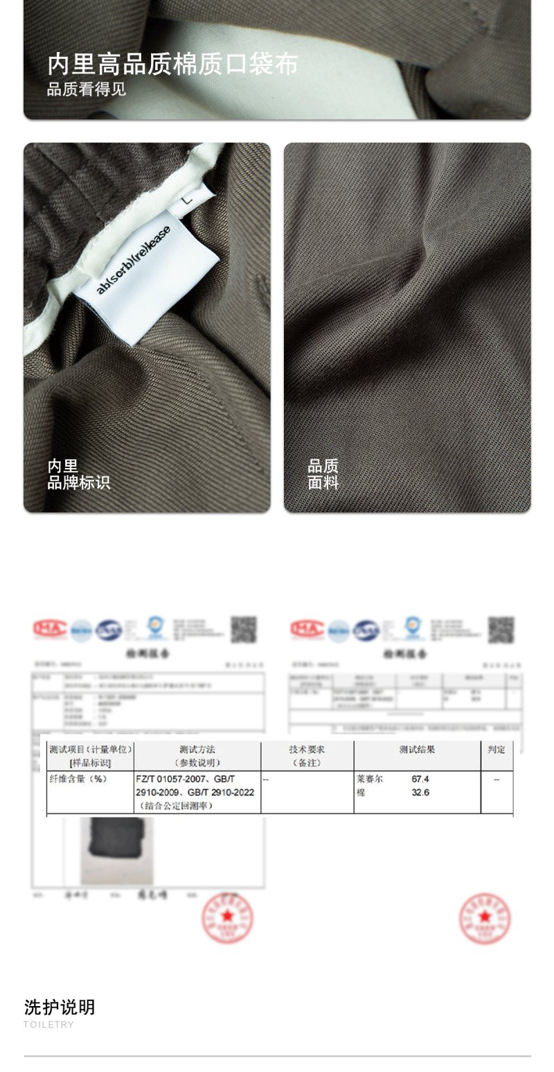 absorbrelease ab白噪深灰色休闲裤男秋冬垂感直筒长裤男士裤子