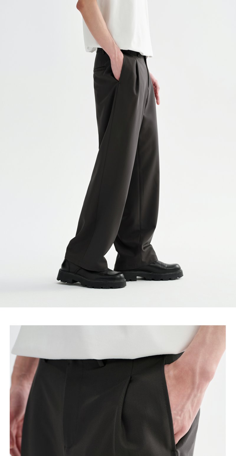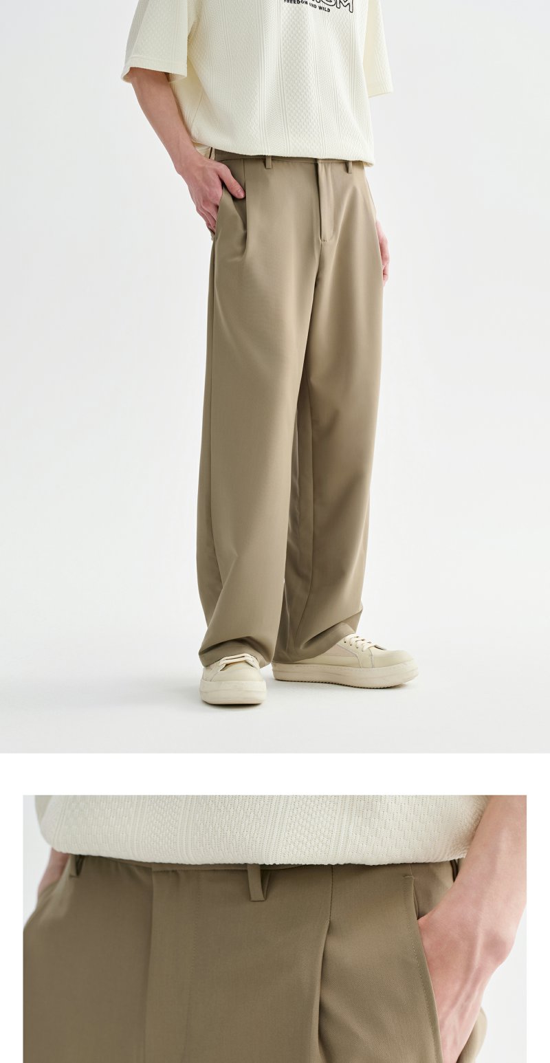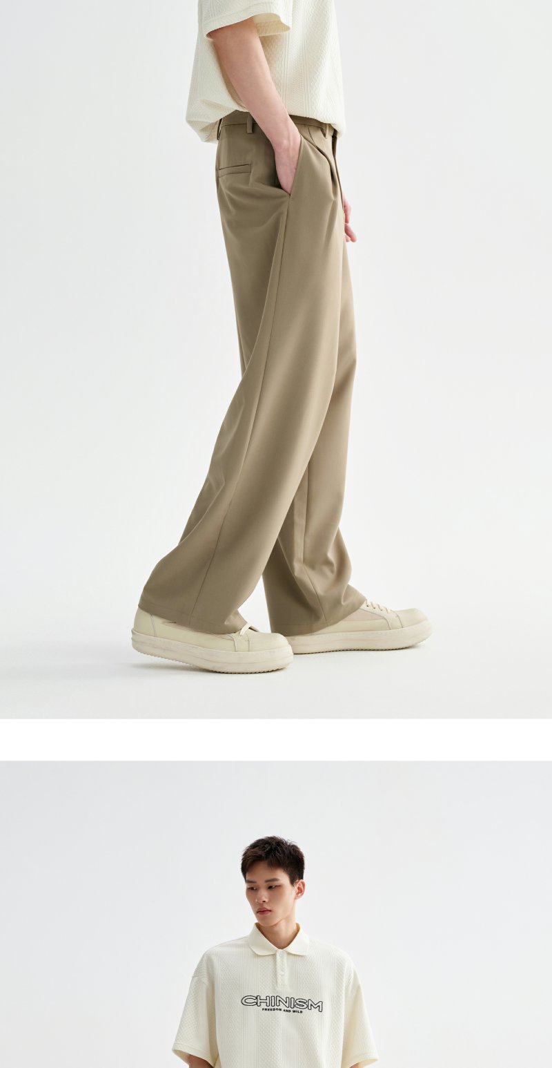 CHINISM赤尘 仿天丝前中叠褶西裤男2025夏季薄款直筒男士休闲裤