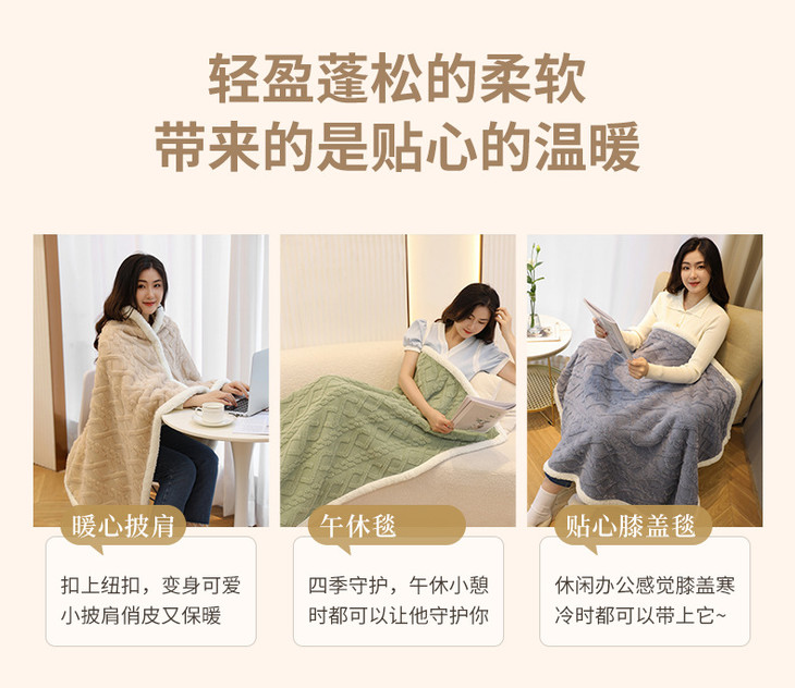 【一毯多用!办公室午休好物】纽扣设计,避免睡觉或者走动时滑落,披肩毯办公室午睡毯冬季加厚毛毯多功能小毯子小被子沙发毯。rb