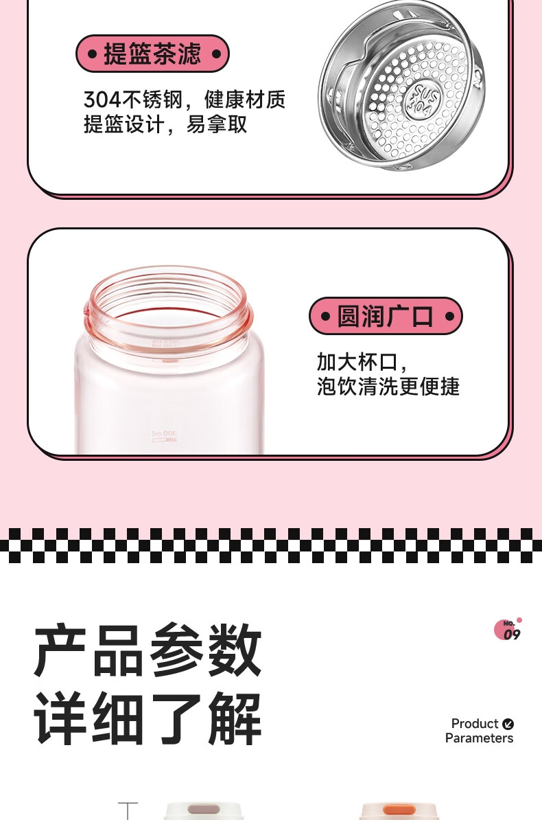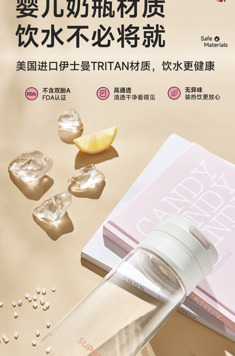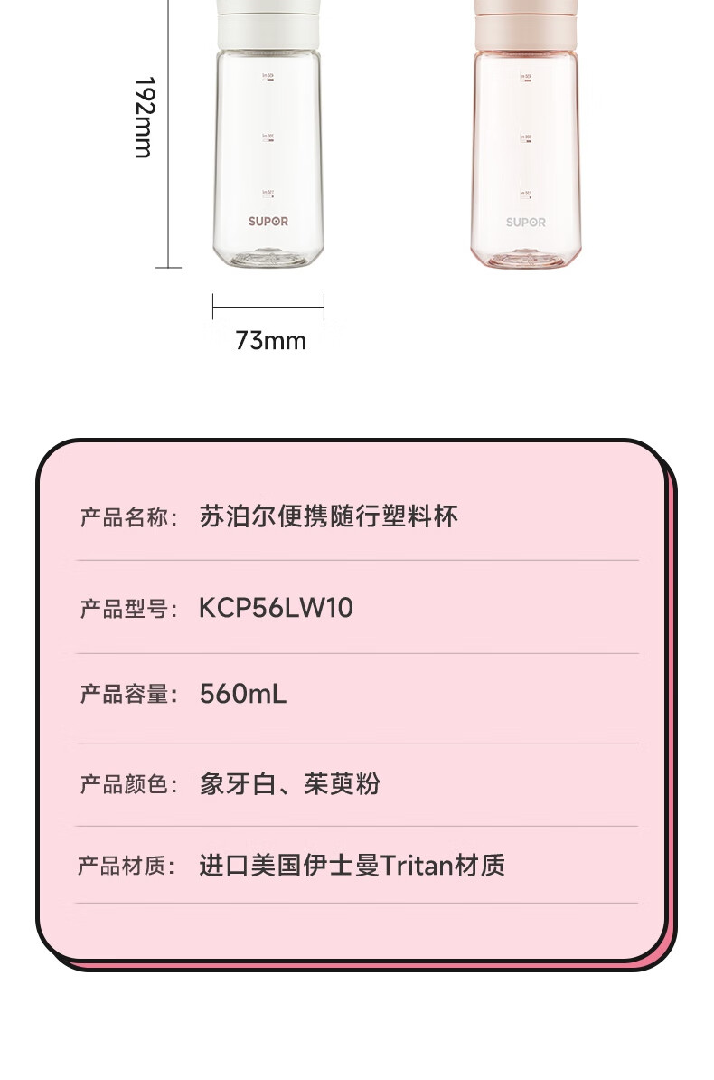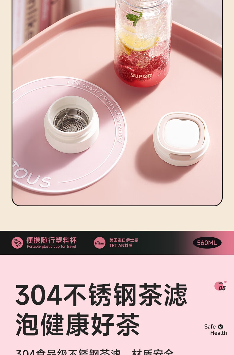 苏泊尔(SUPOR) 便携随行塑料杯tritan水杯子茶水分离简约学生随手茶杯KCP56LW10