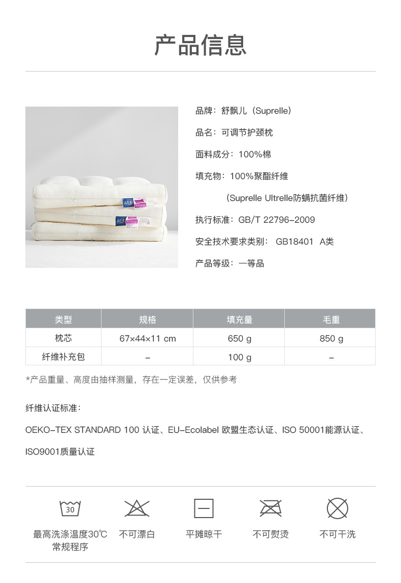 舒飘儿防螨可调节护颈枕