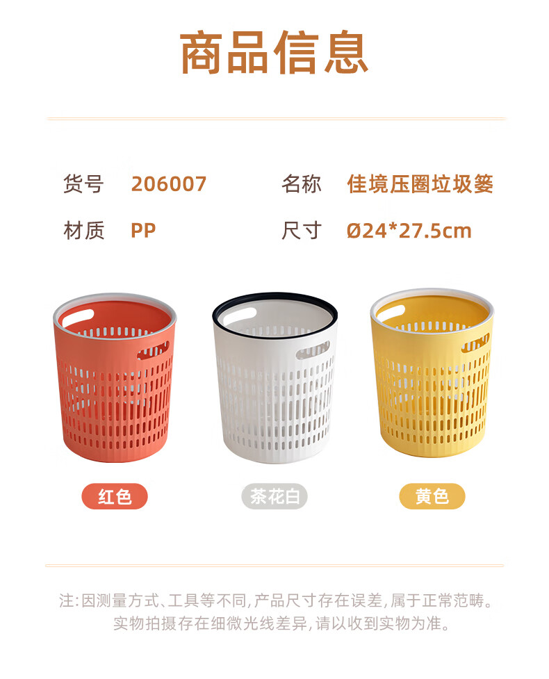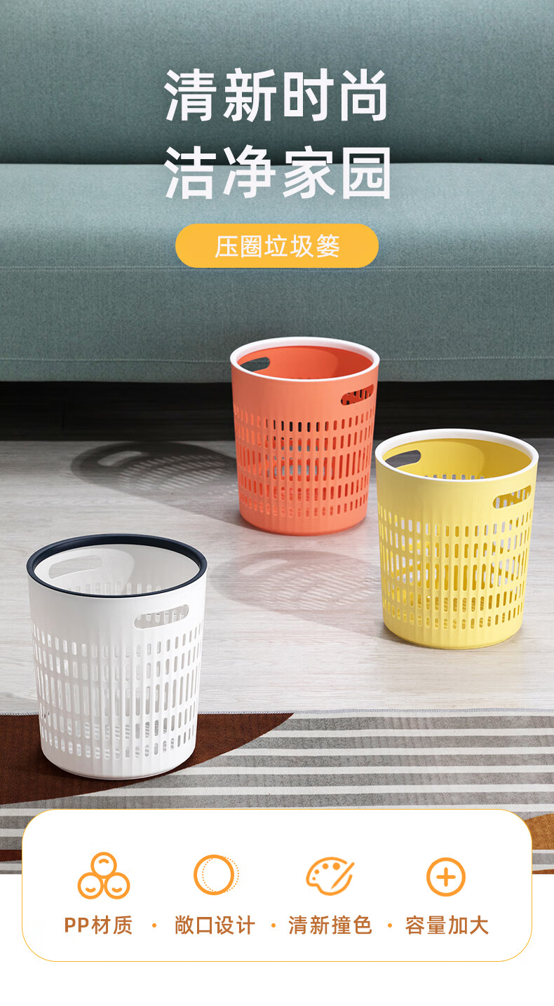 茶花 206007佳境压圈垃圾篓 颜色随机 3个装