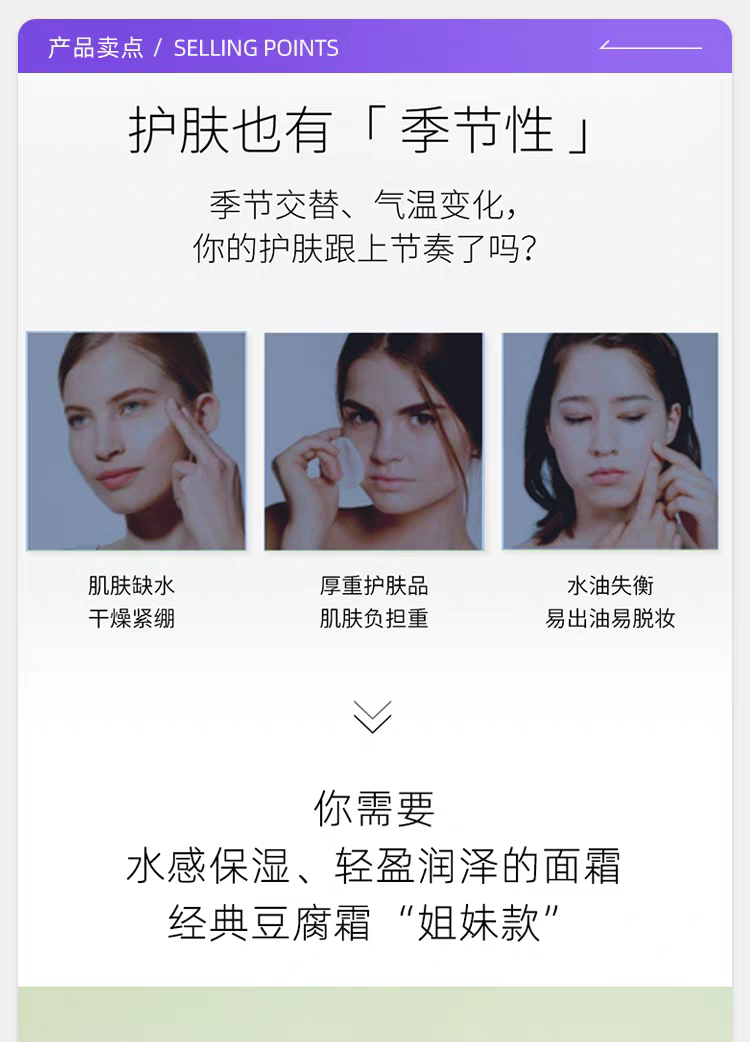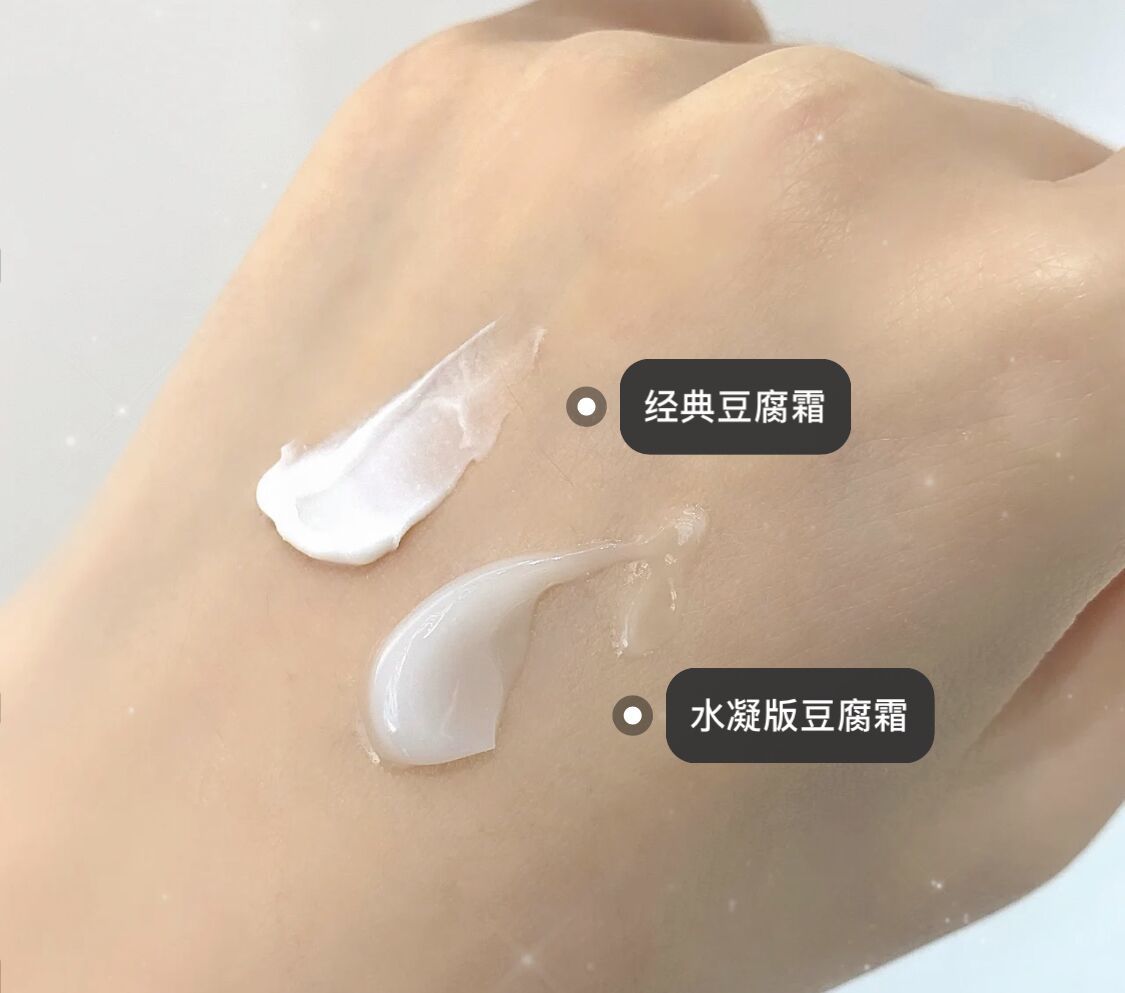 让清爽质地的水凝霜锁水、舒缓能力都不输豆腐霜
