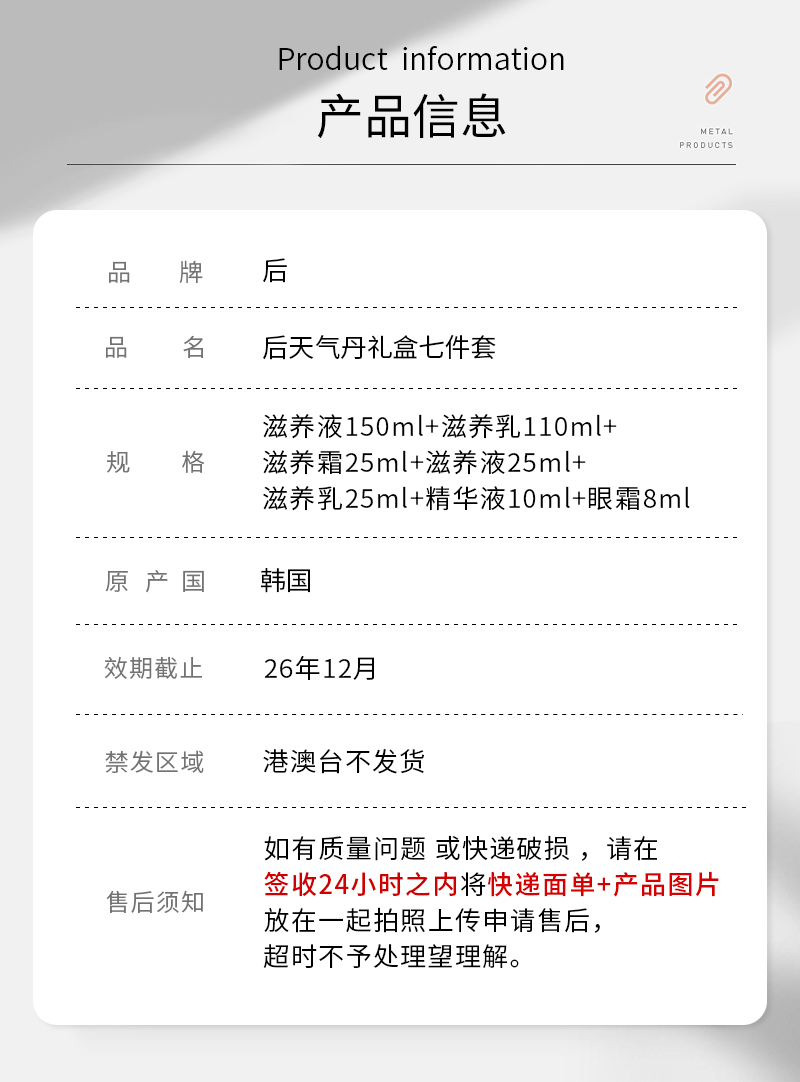 【Whoo/后】天气丹水乳七件套(滋养液150ml+滋养乳110ml+滋养霜25ml+滋养液25ml+滋养乳25ml+精华液10ml+眼霜8ml)(下单后72h发货)