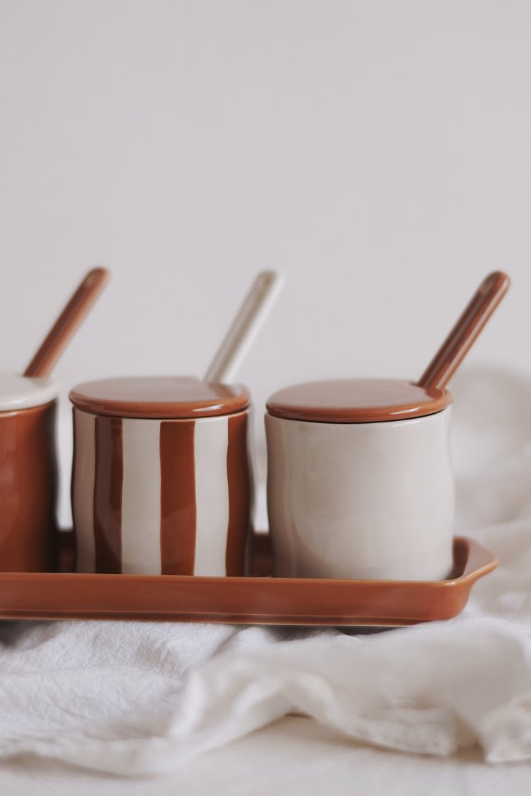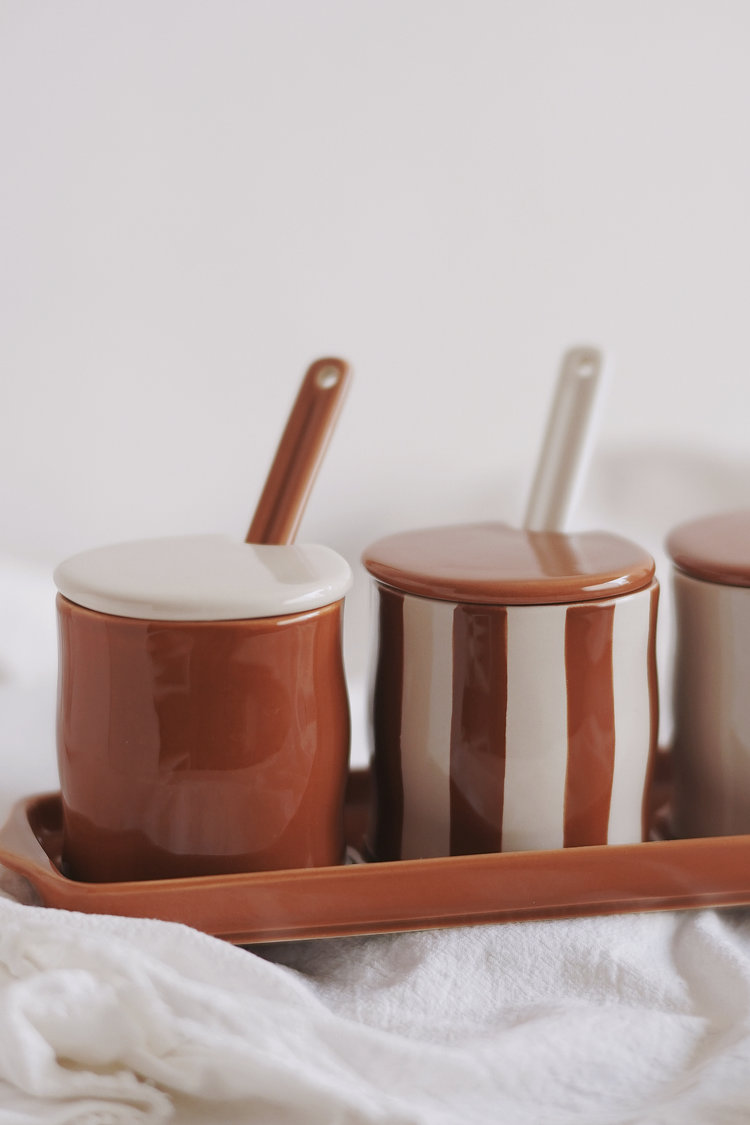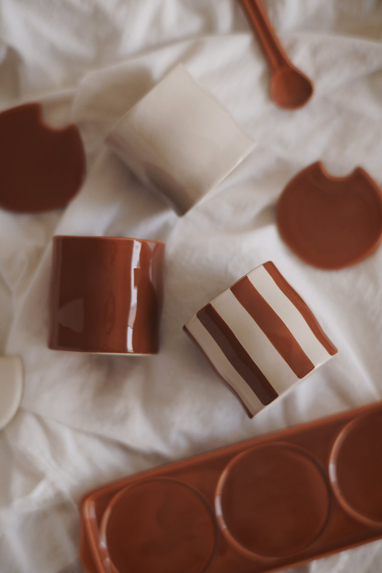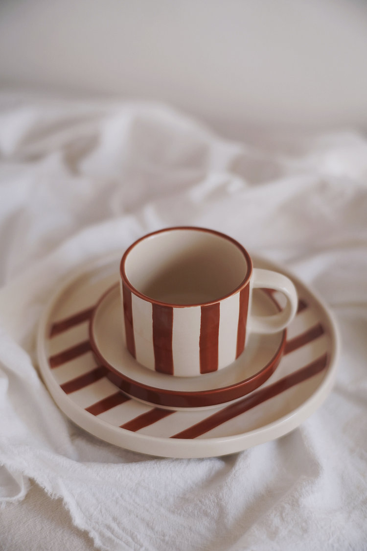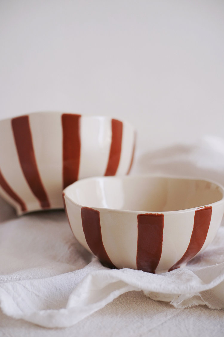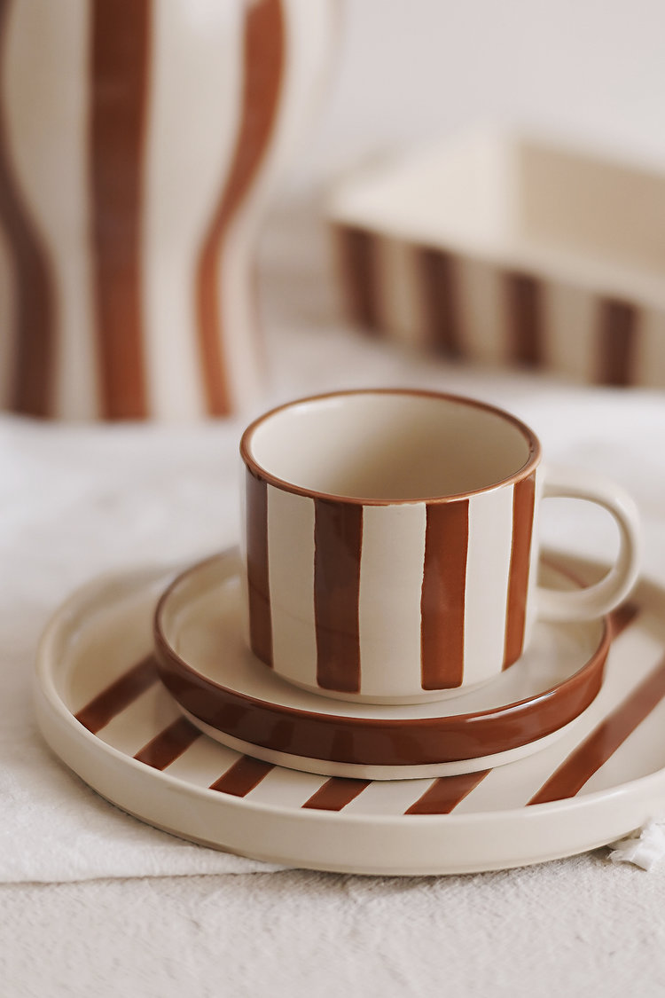有温度的陶瓷餐具🥣【美拉德焦糖色手绘条纹系列】☕️“低价”感受一下出口的高品质!✅多款器型可选