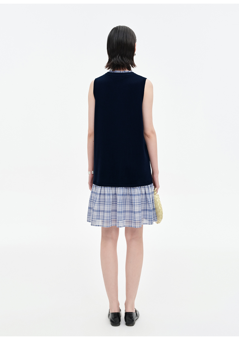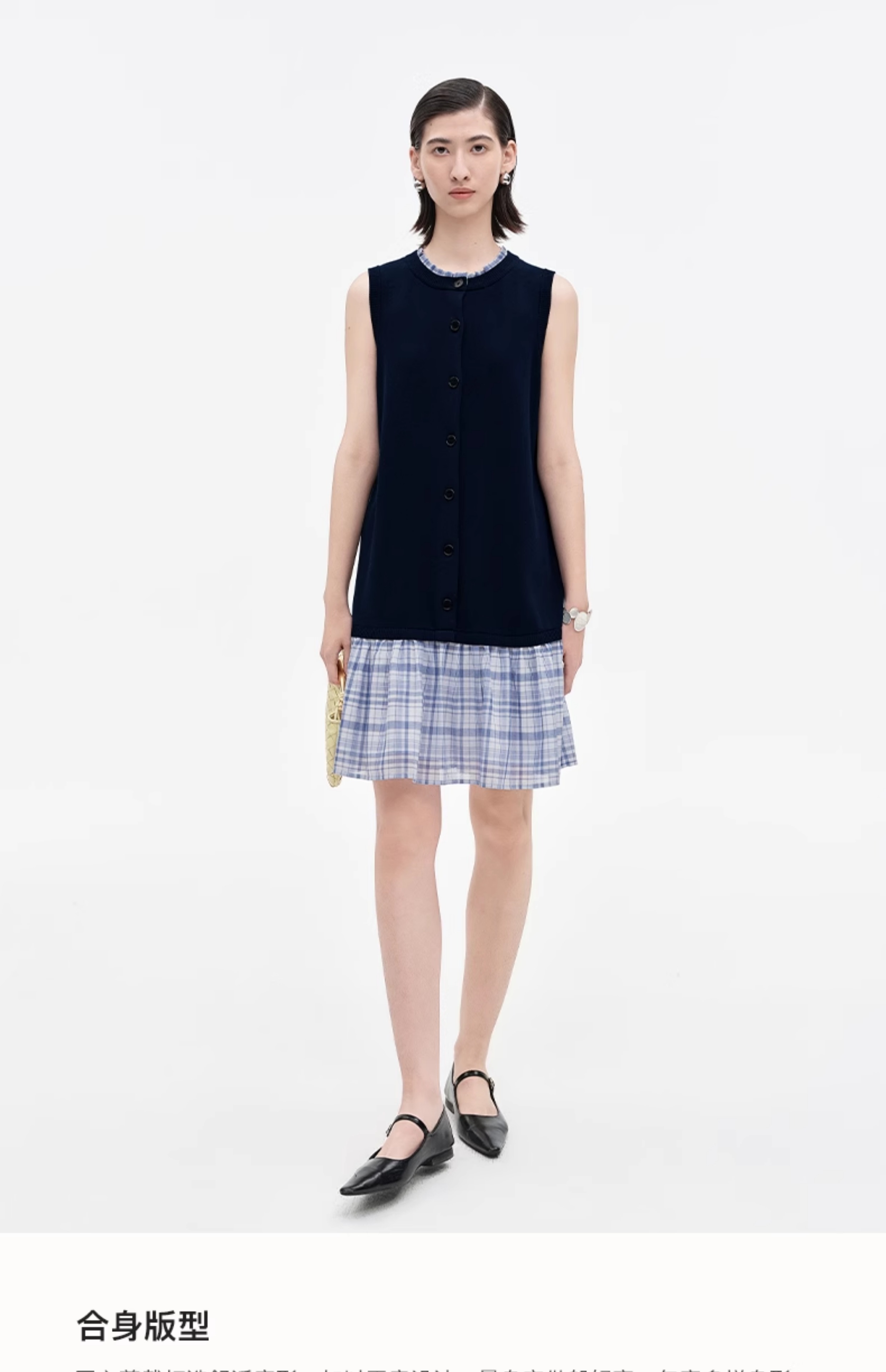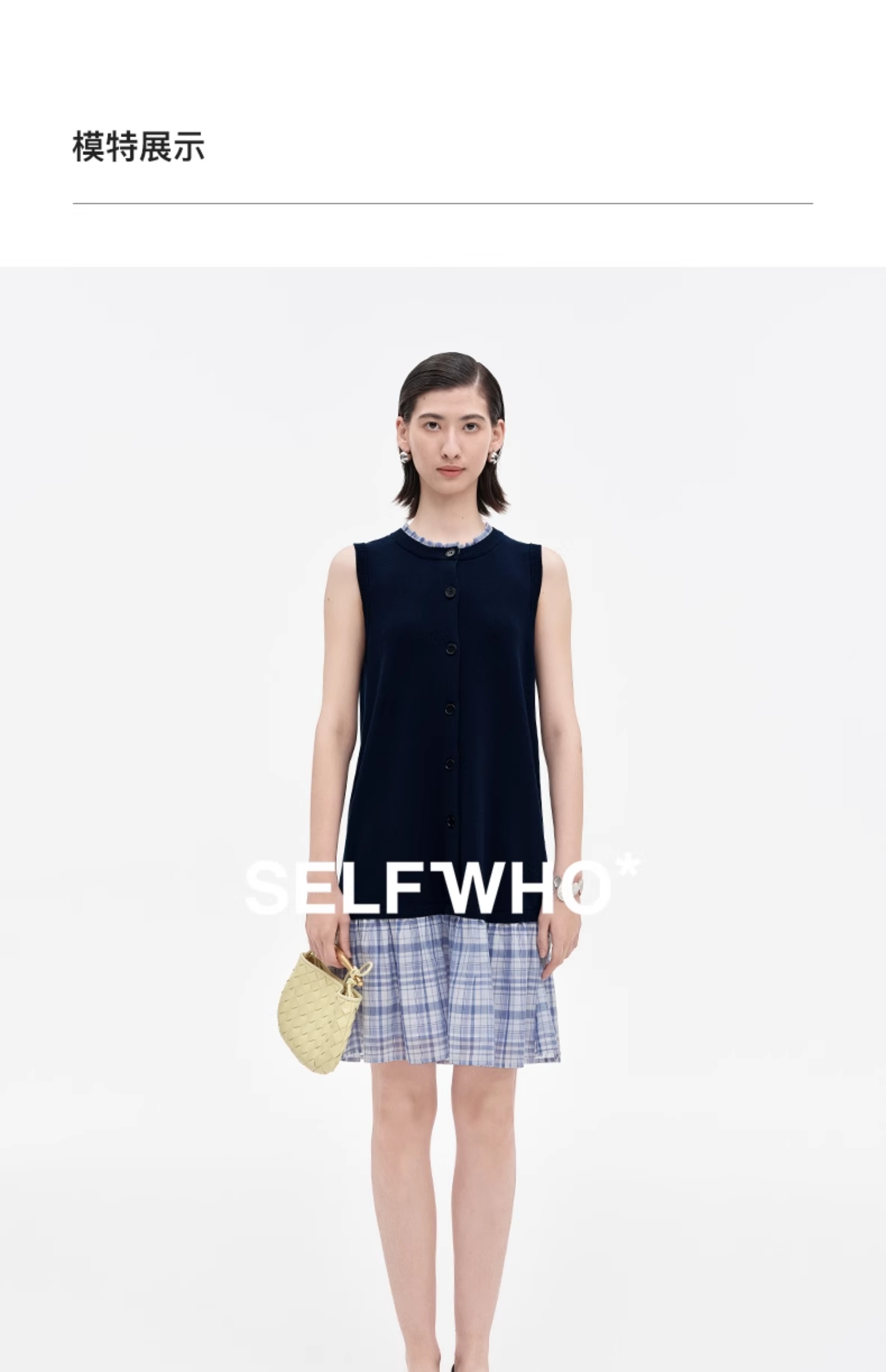 SELFWHO天丝桑蚕丝撞色格纹梭织拼接背心连衣裙女2025秋新款裙子
