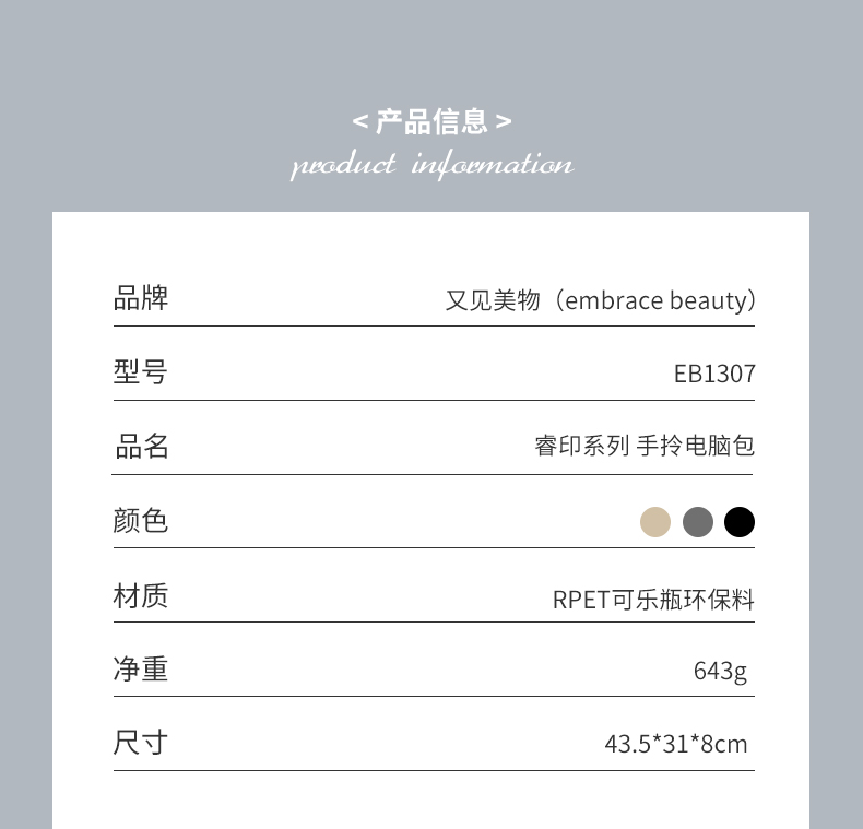 又见美物 轻商务时尚潮流环保RPET大容量休闲电脑背包旅行潮流 EB1307