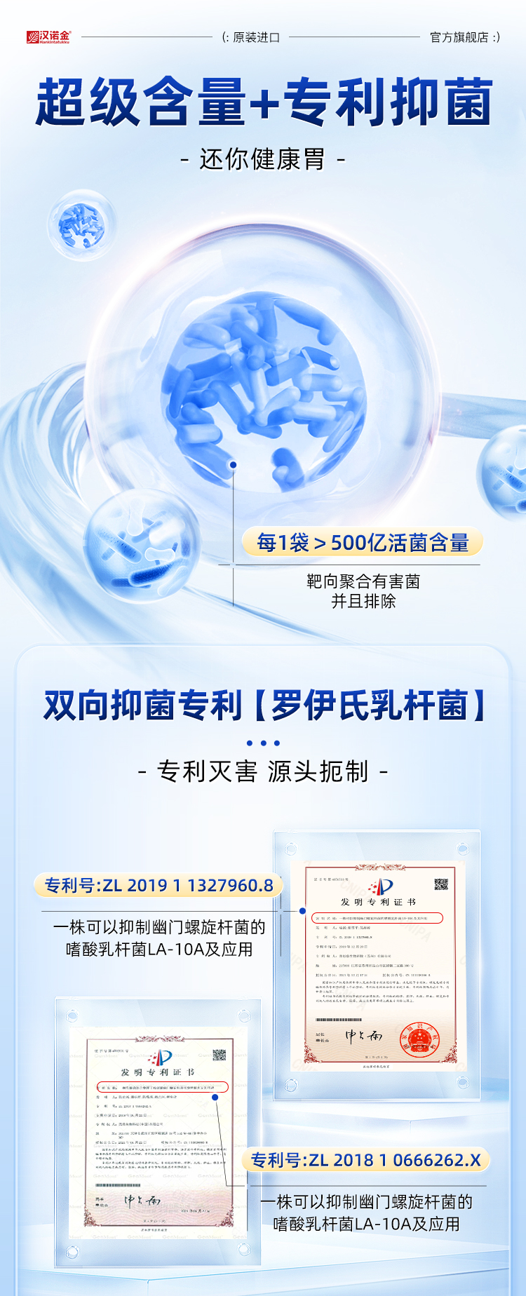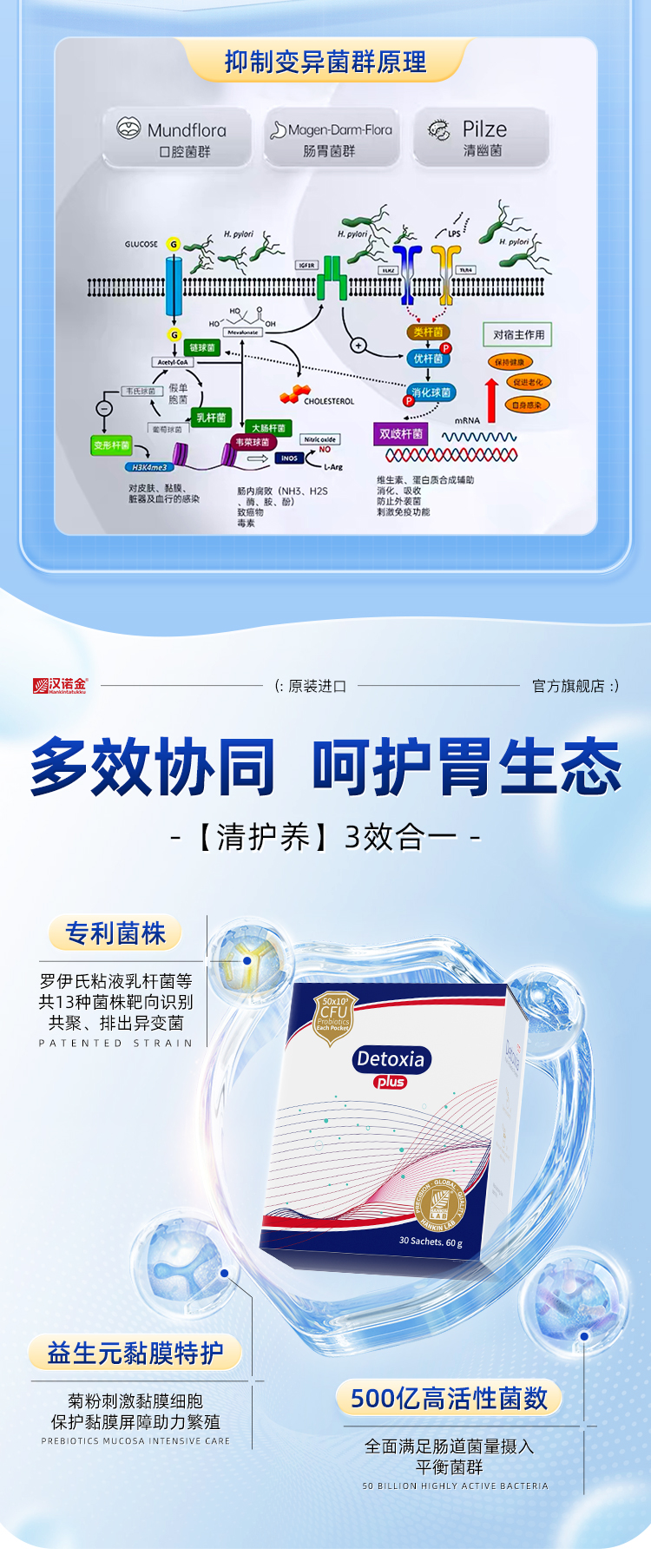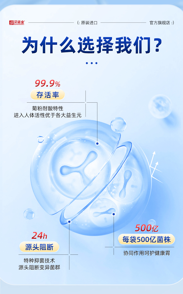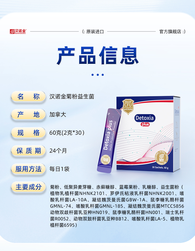 汉诺金® 菊粉抑幽养胃益生菌固体饮料 30条/盒