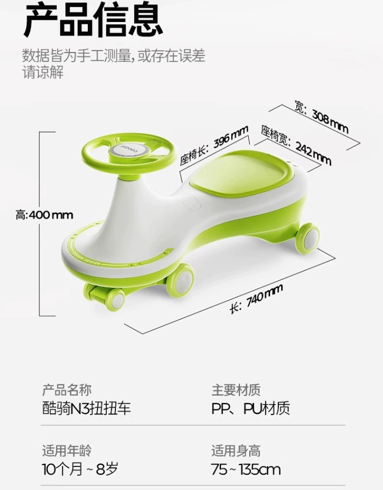 【7新微瑕捡漏】酷骑N3扭扭车( 7新为7天试骑车,可能有试用痕迹,如划痕磨损压痕掉漆,拍下后非质量问题不退不换,拍下默认同意此活动!介意慎拍!如遇缺货会退款处理)