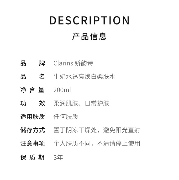 【保税仓】CLARINS 娇韵诗 滋润型美白水 200ml 效期26.11月/27.6月随机发