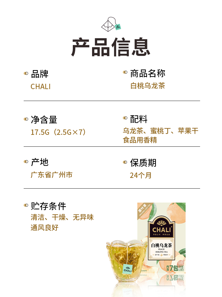 CHALI茶里白桃乌龙茶盒装17.5g(新版)