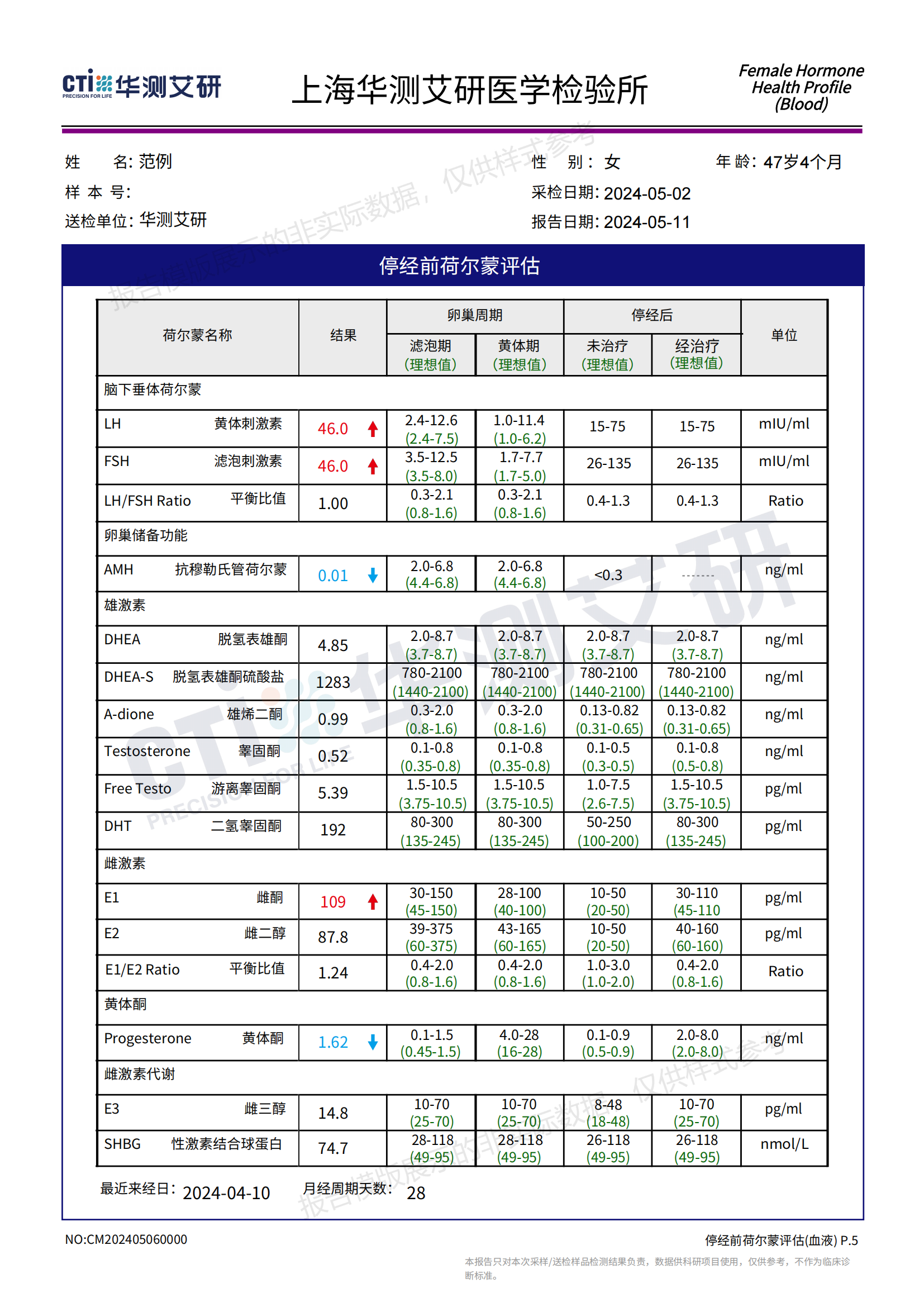 【检测】停经前荷尔蒙评估-黄体期(血液)华测1068