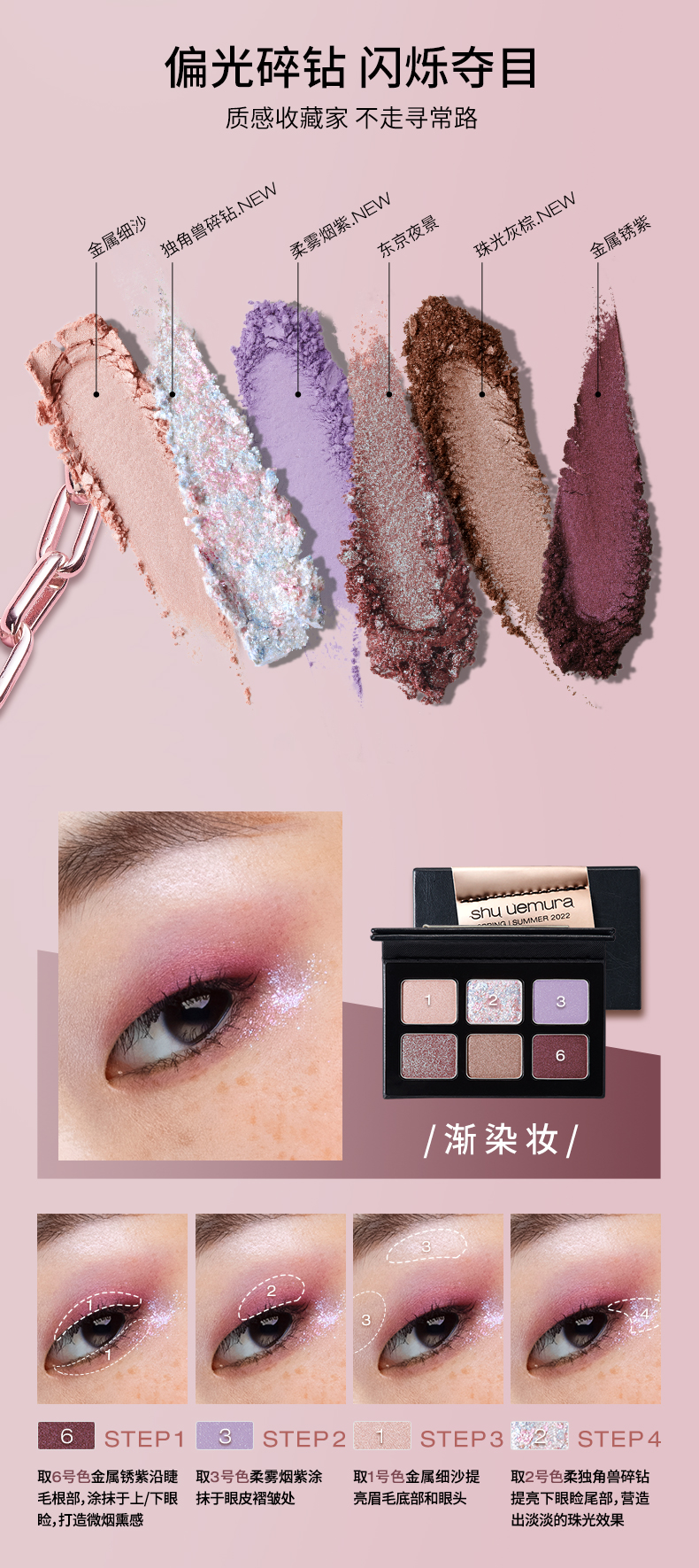 植村秀(shu uemura)春夏限定六色眼影盘烟紫盘烟粉盘哑光 心选到家
