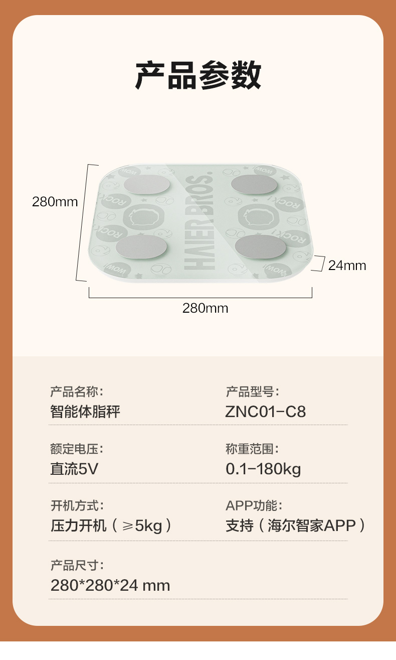 【921海尔大促】海尔兄弟 智能IP体脂秤 智家直连 ZNC01-C8