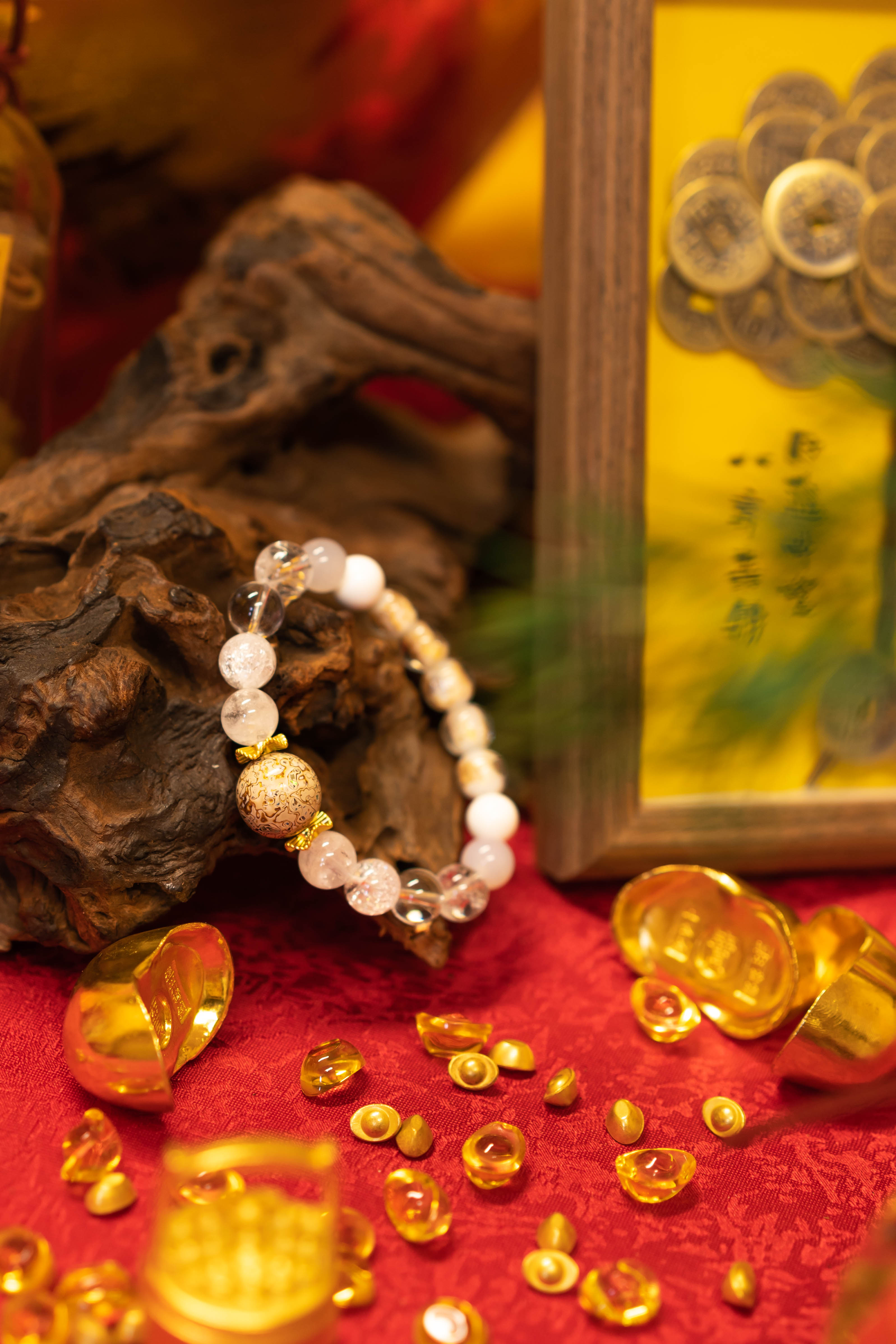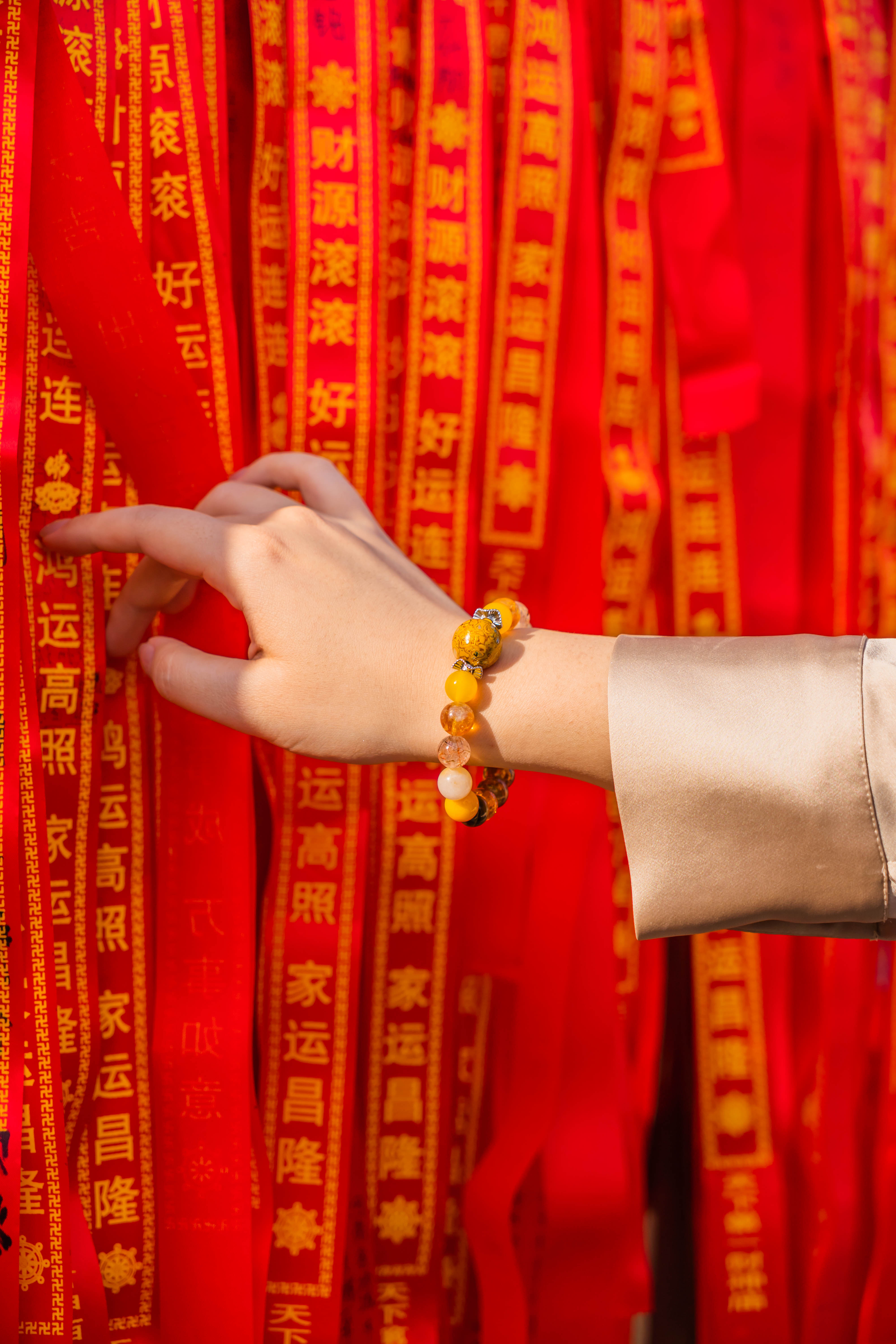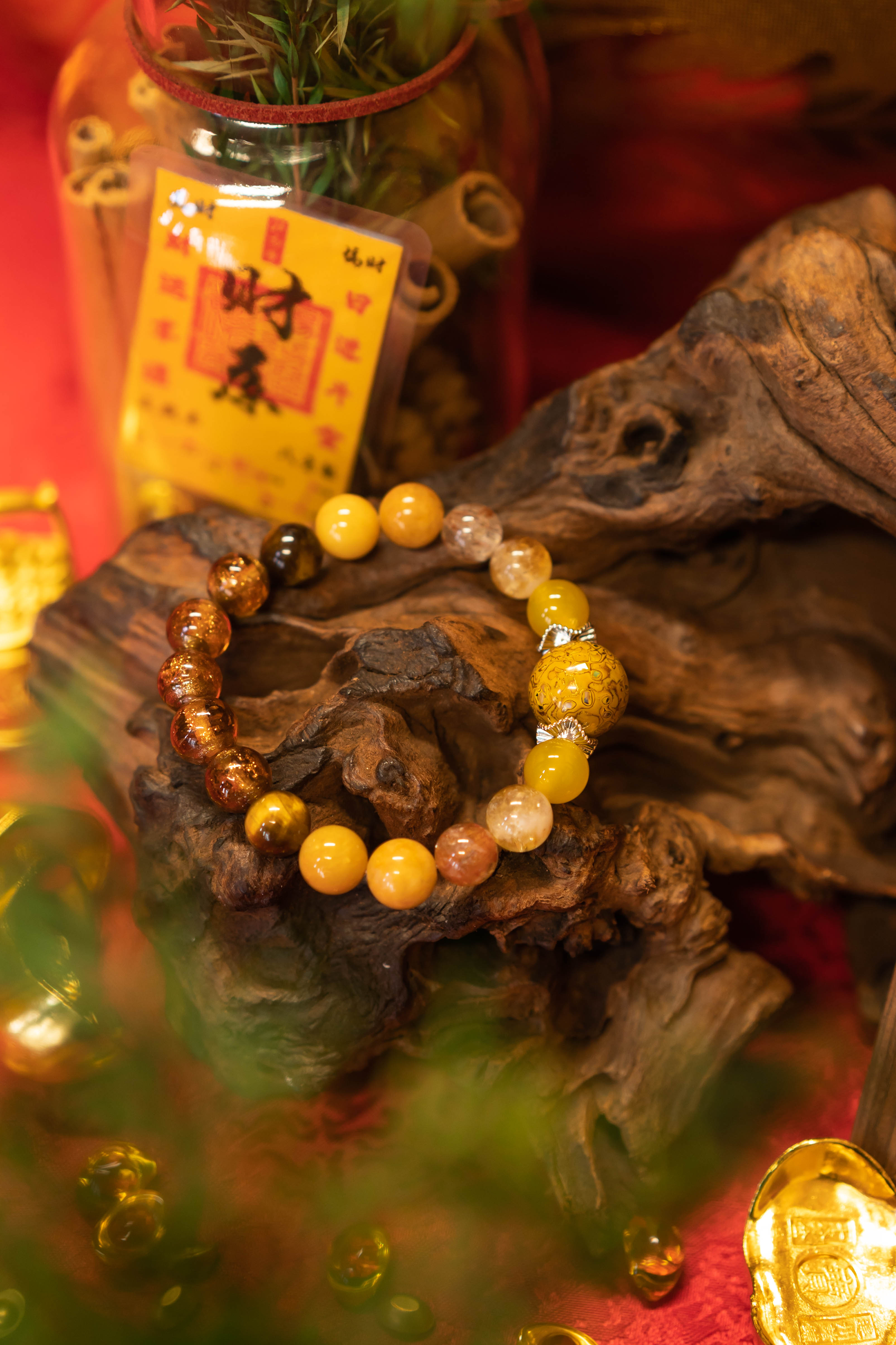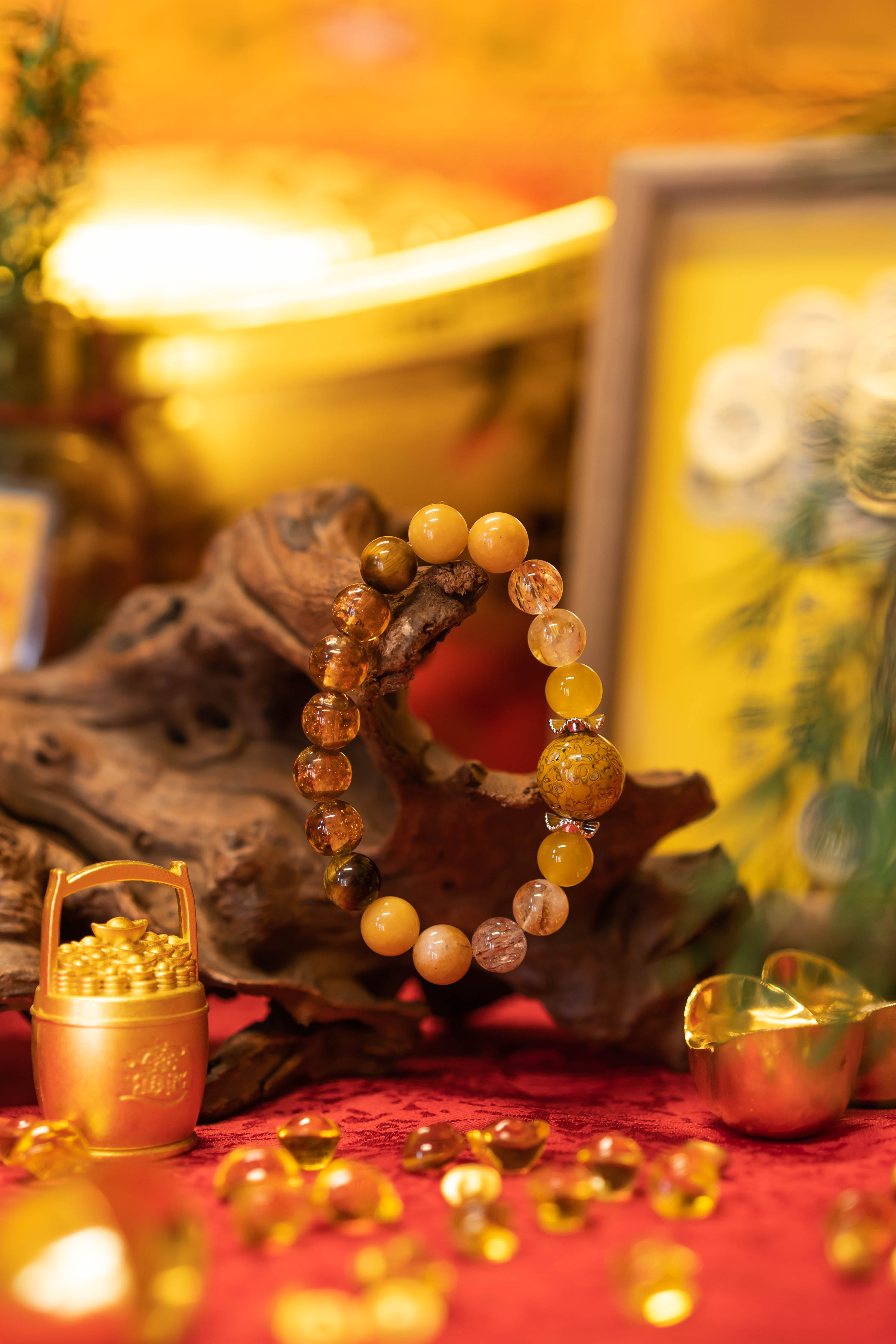 材质:大漆珠,黄玛瑙,黄塔晶,黑金超七,黄东陵,黄玉髓,黄虎眼,香灰琉璃