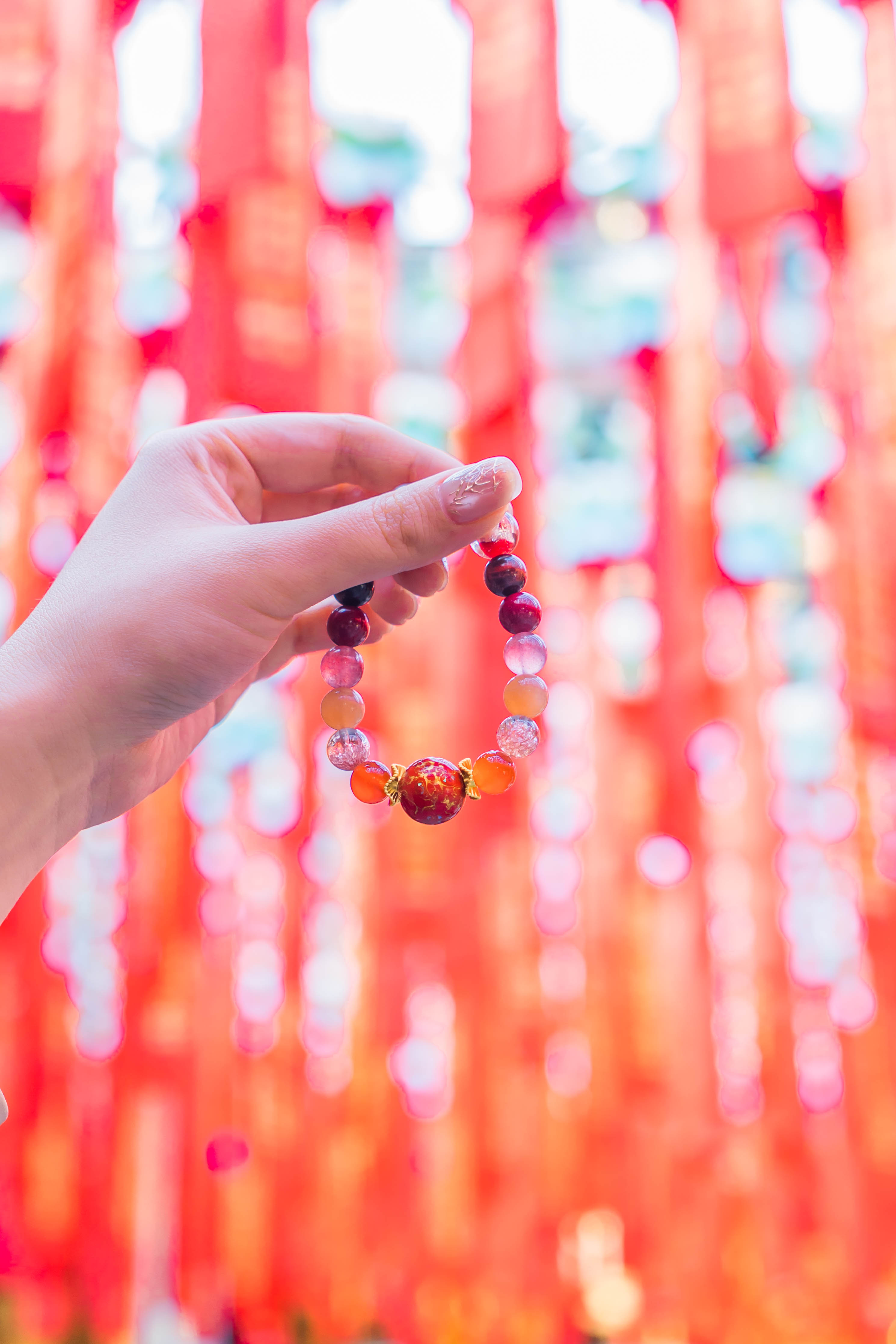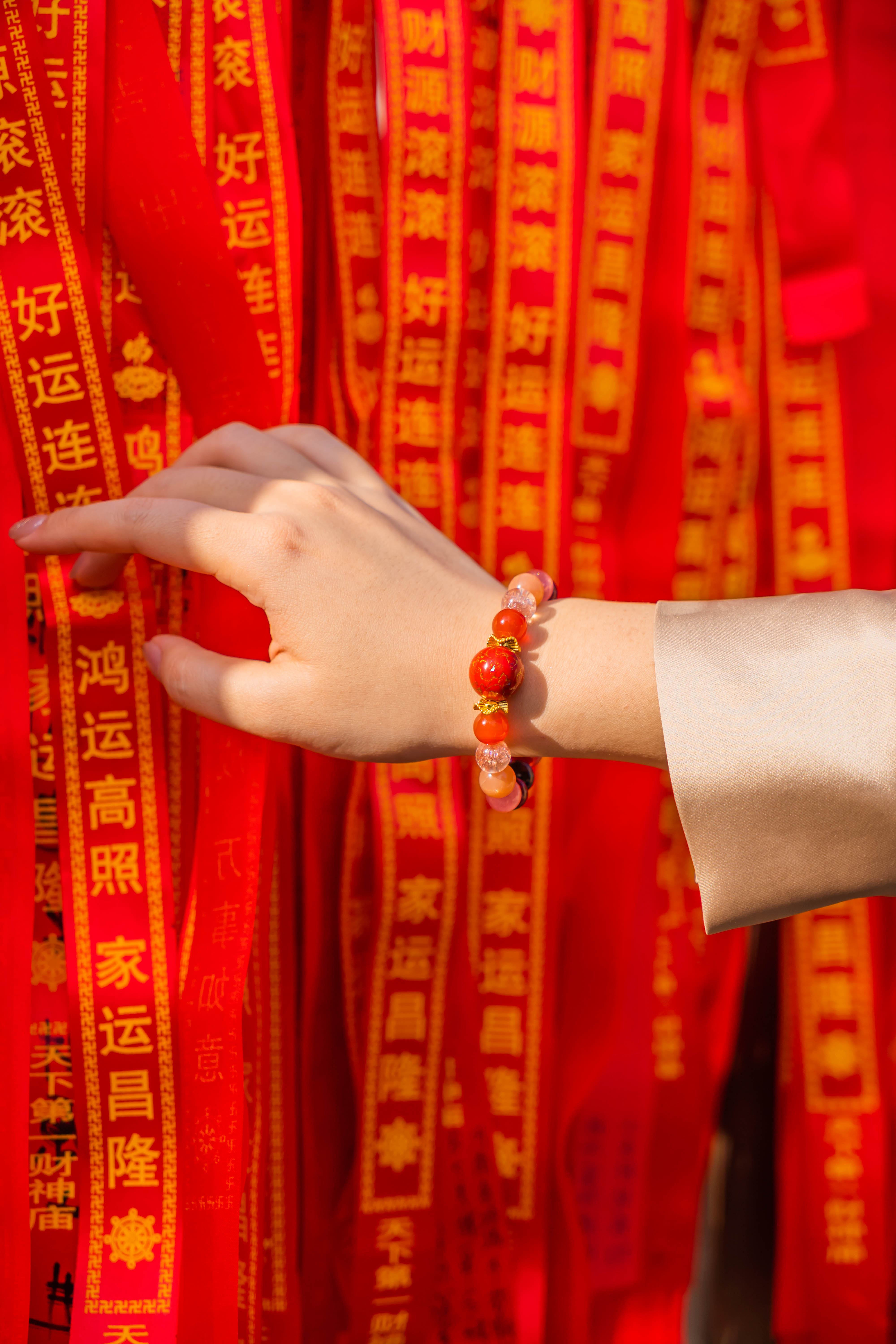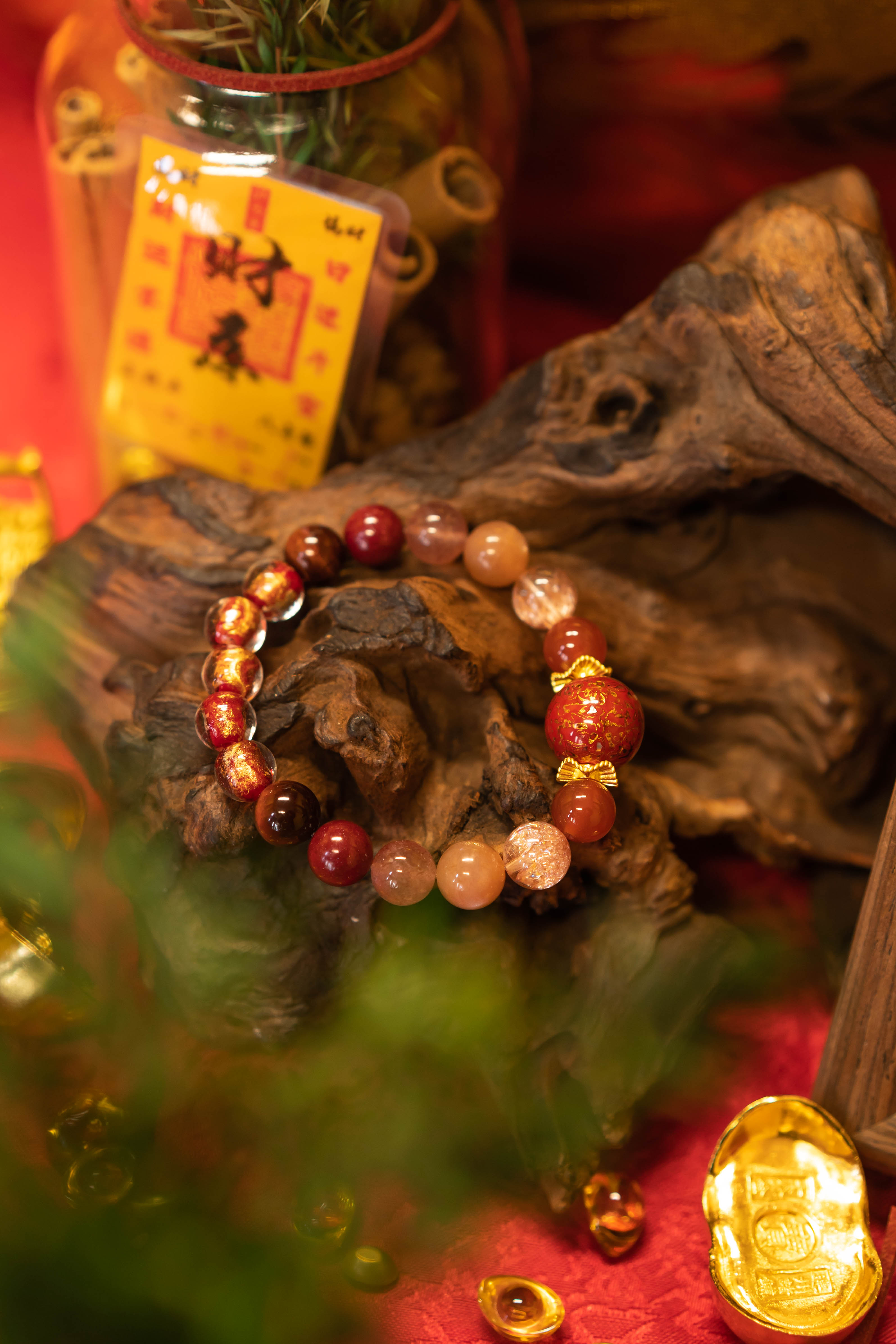 材质:大漆珠,红玛瑙,烟花超七,太阳石,草莓晶,朱砂,红虎眼,香灰琉璃