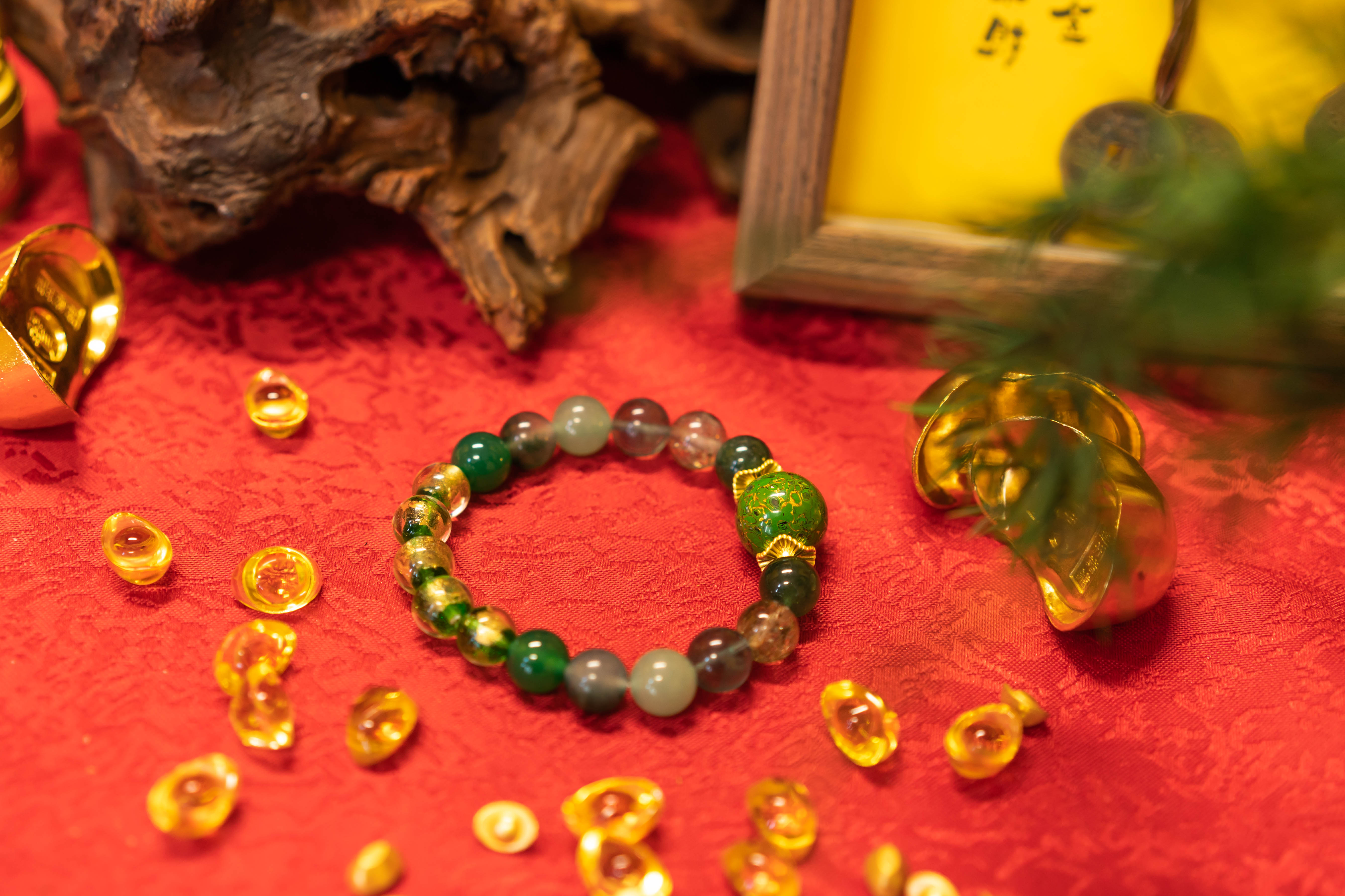 材质:大漆珠,草莓晶,绿发晶,绿萤石,东陵玉,水草玛瑙,绿玉髓,香灰琉璃