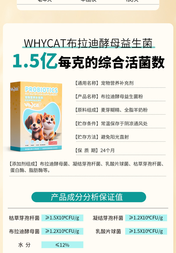 【双12大促】whycat益生菌猫咪狗狗专用宠物调理肠胃