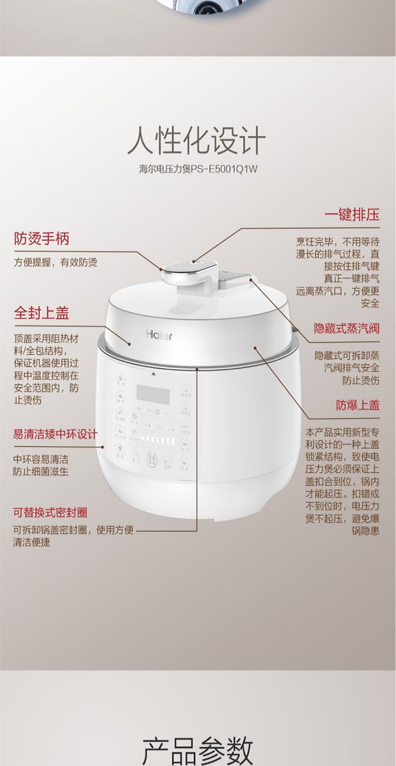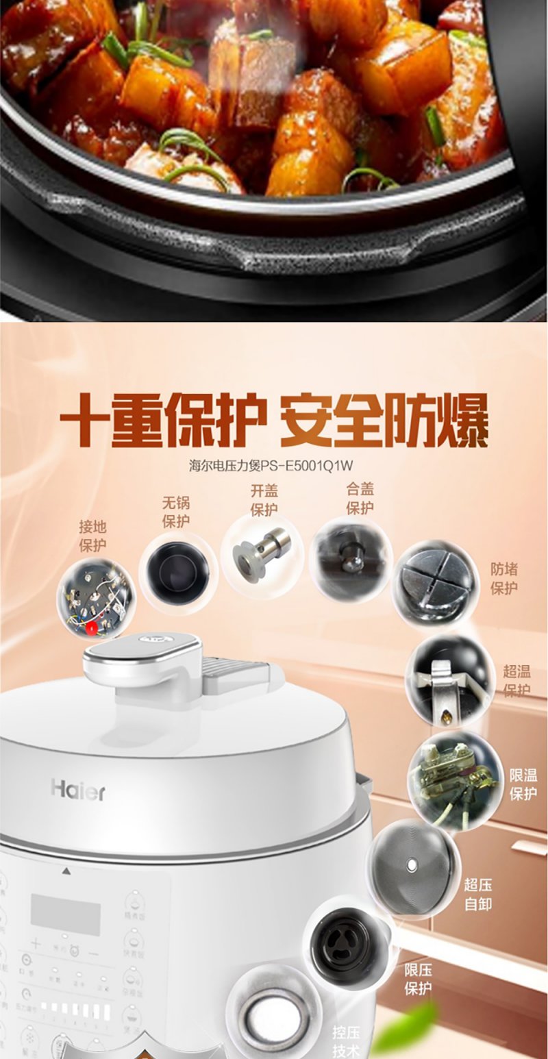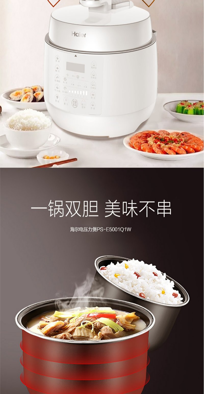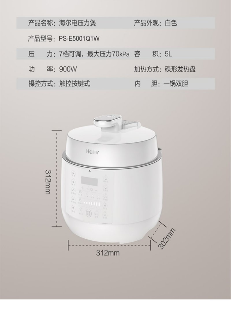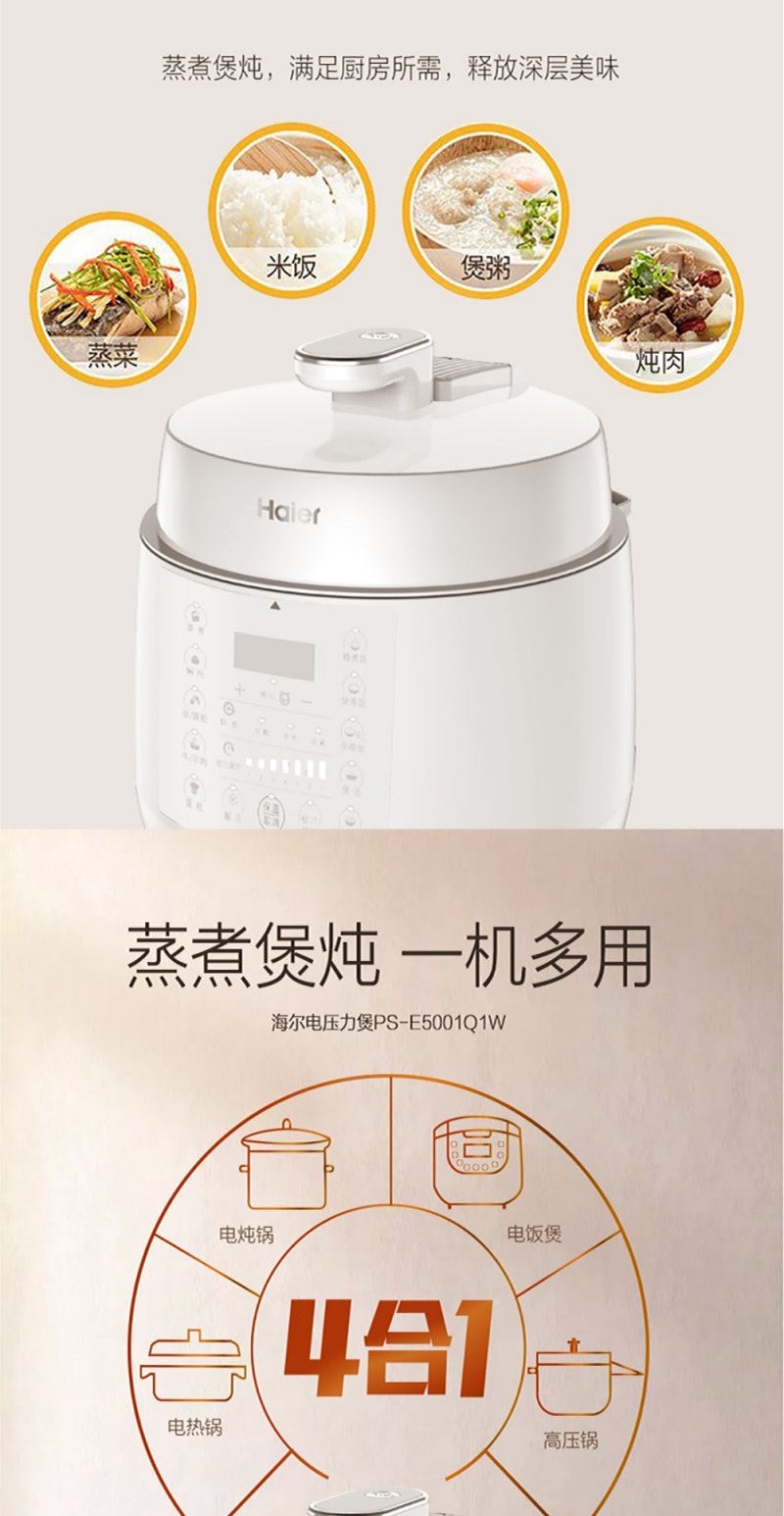 海尔 电压力锅 5L 智能家用蒸煮一机 PS-E5001Q1W