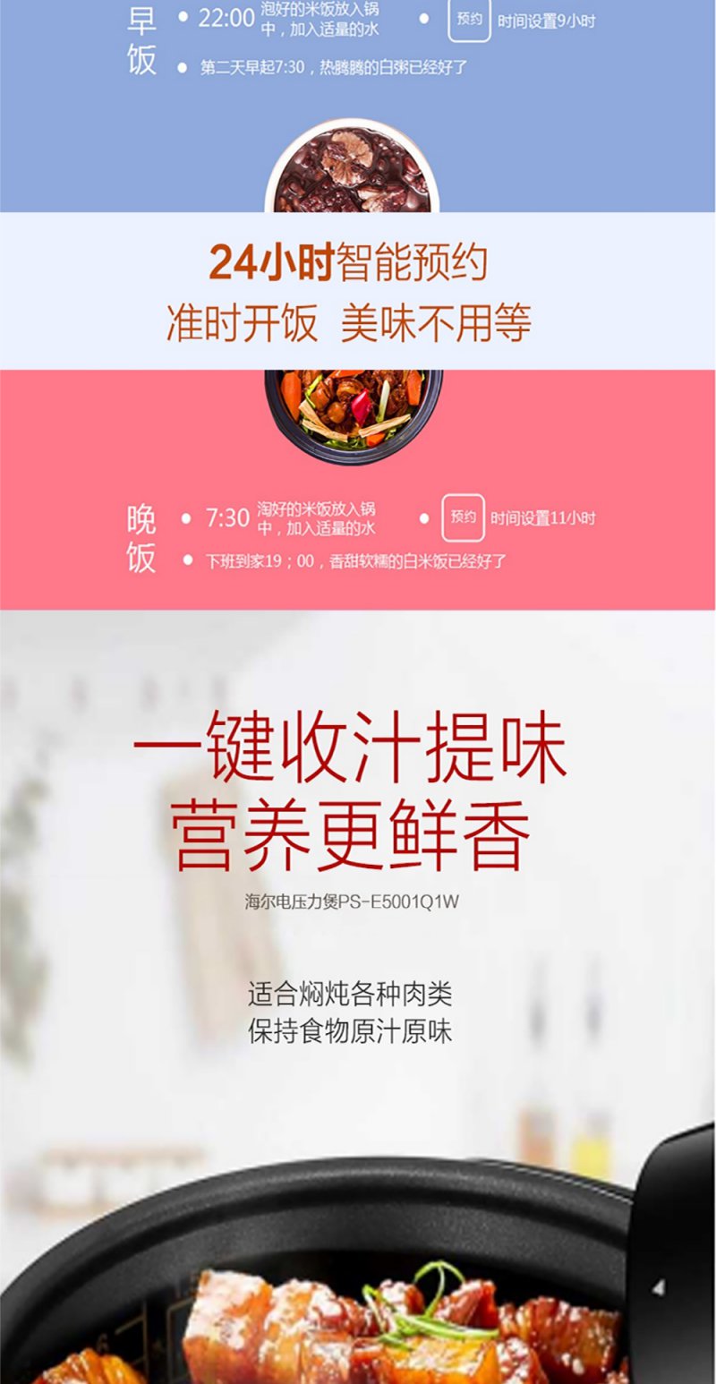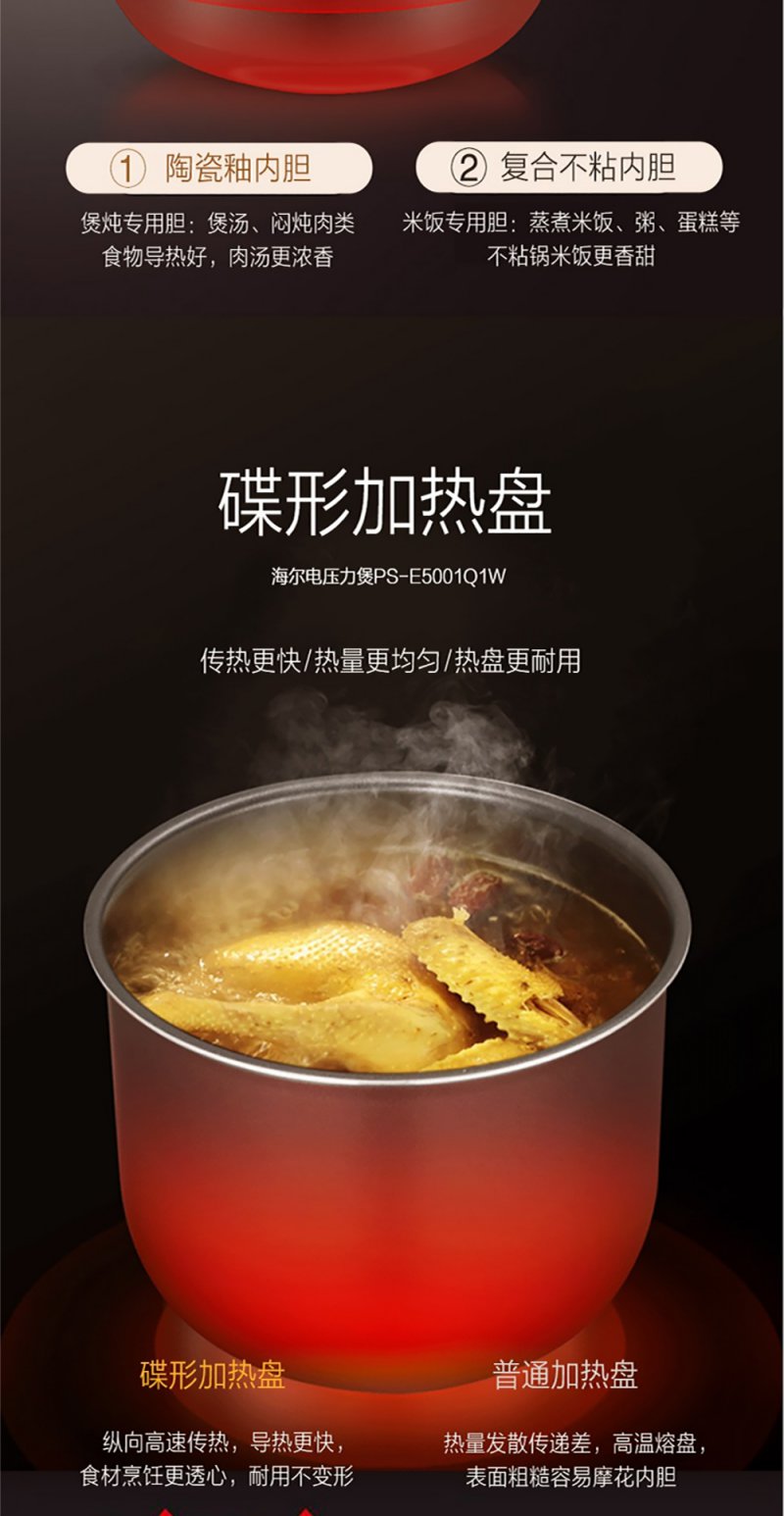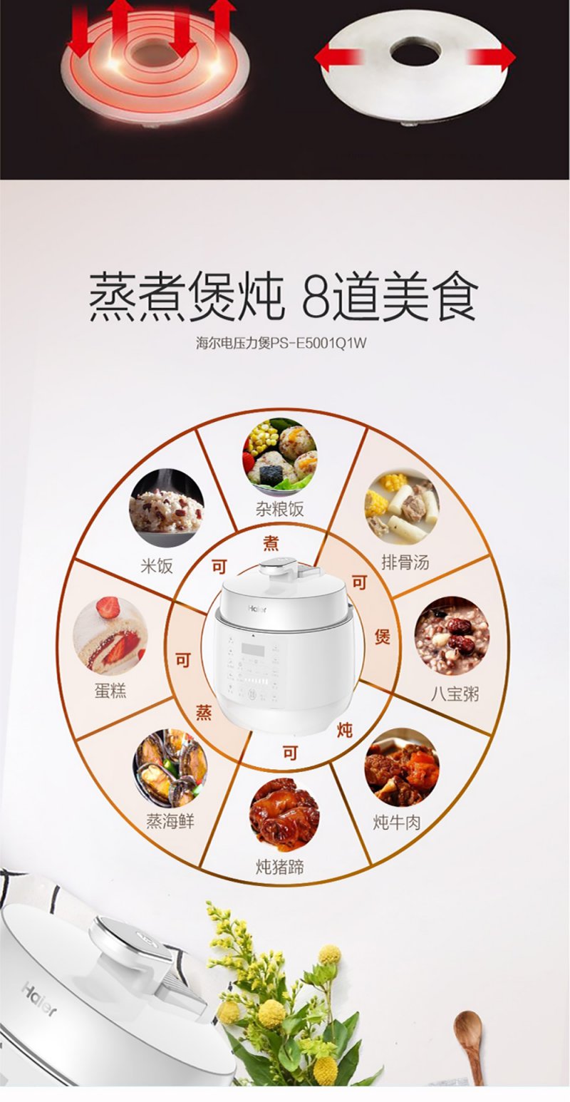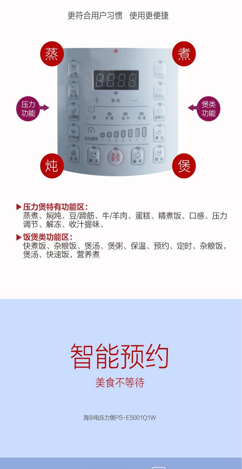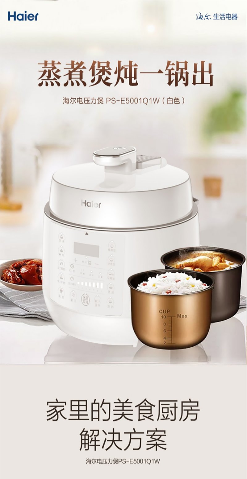 海尔 电压力锅 5L 智能家用蒸煮一机 PS-E5001Q1W