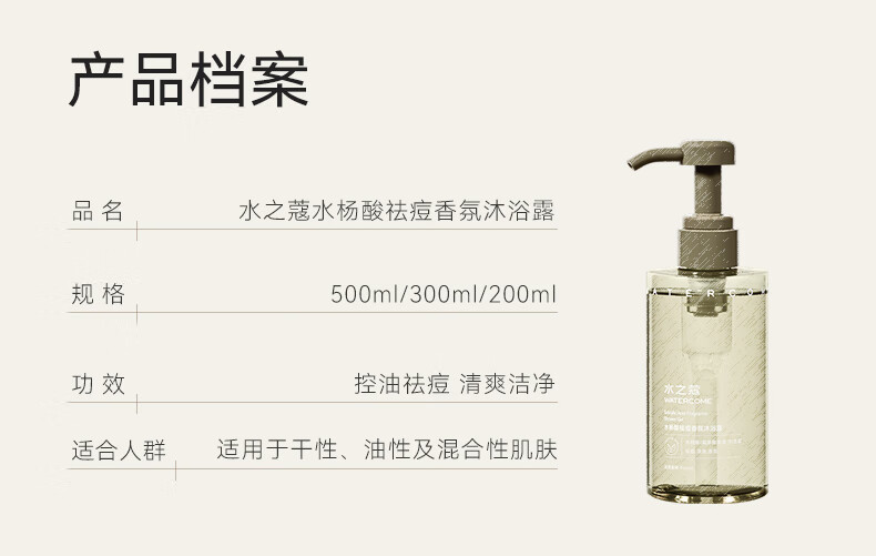 水之蔻 水杨酸祛痘香氛沐浴露500ml