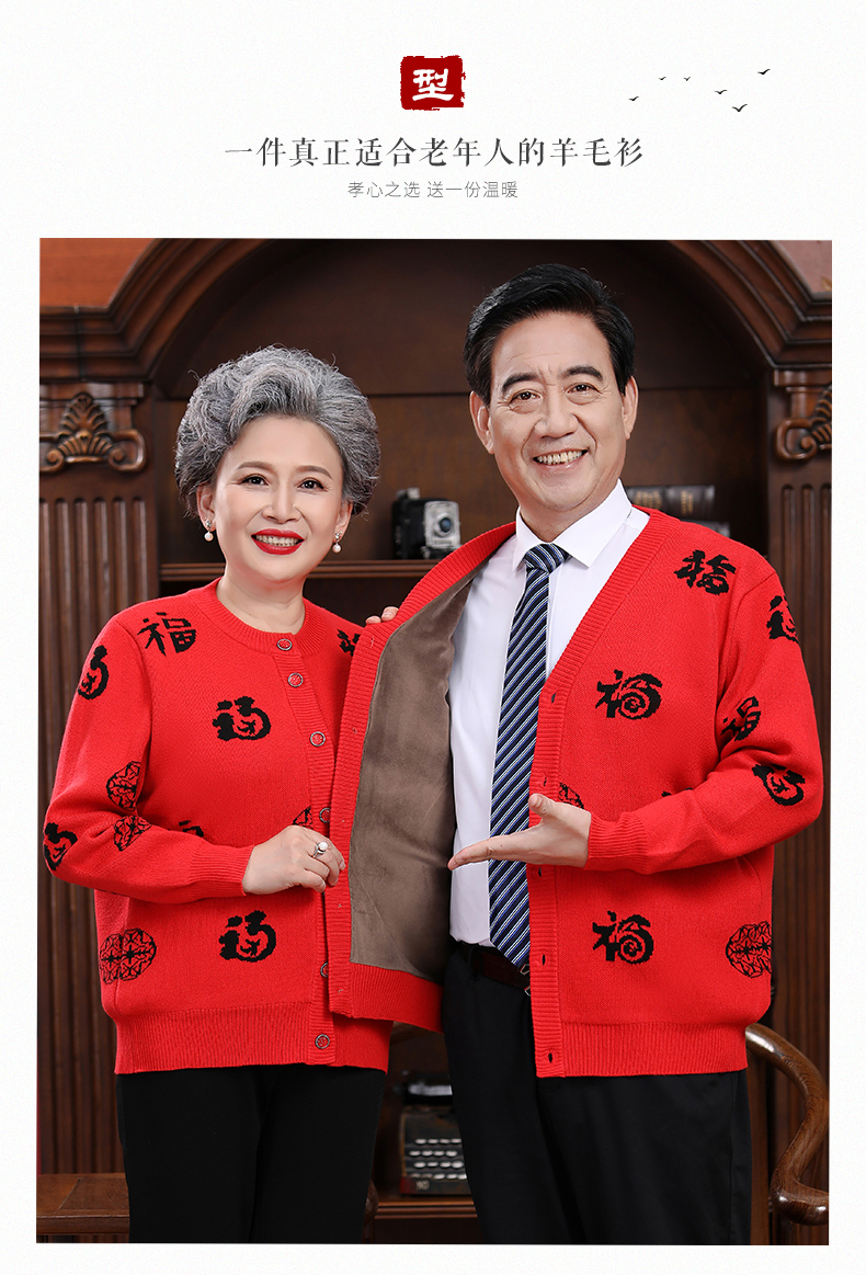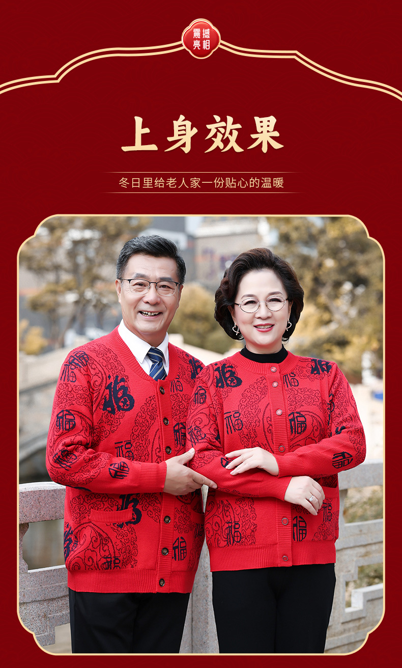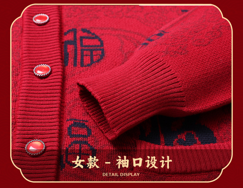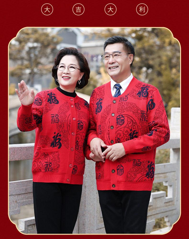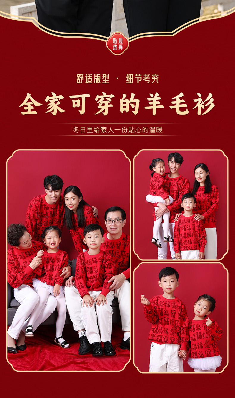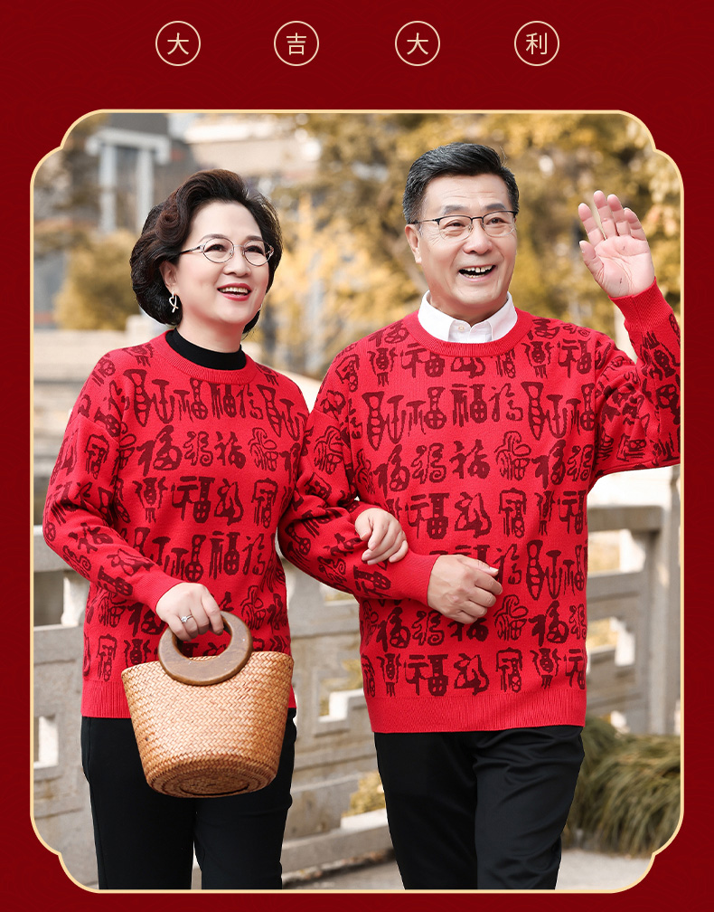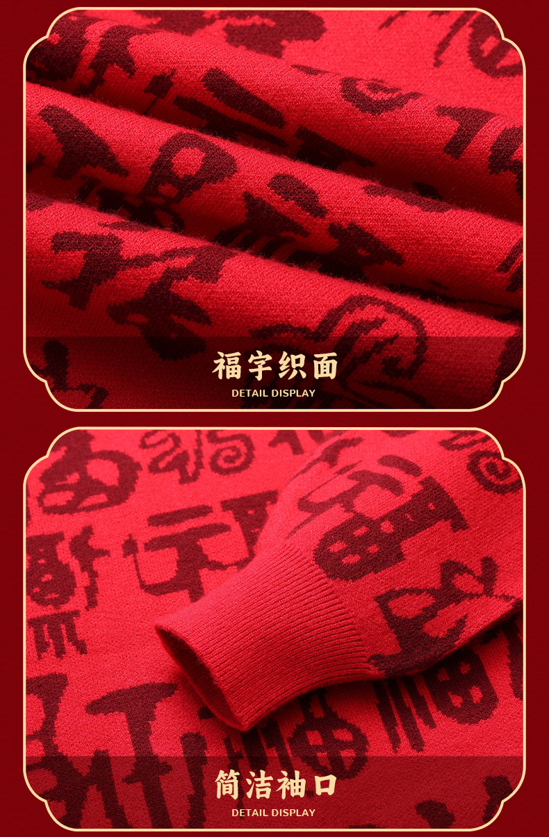 优选丨明星同款父母新年鸿福开衫/新年全身福字套头红色毛衣