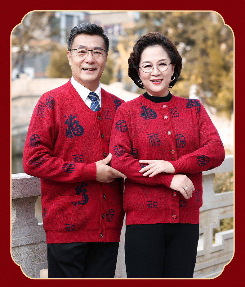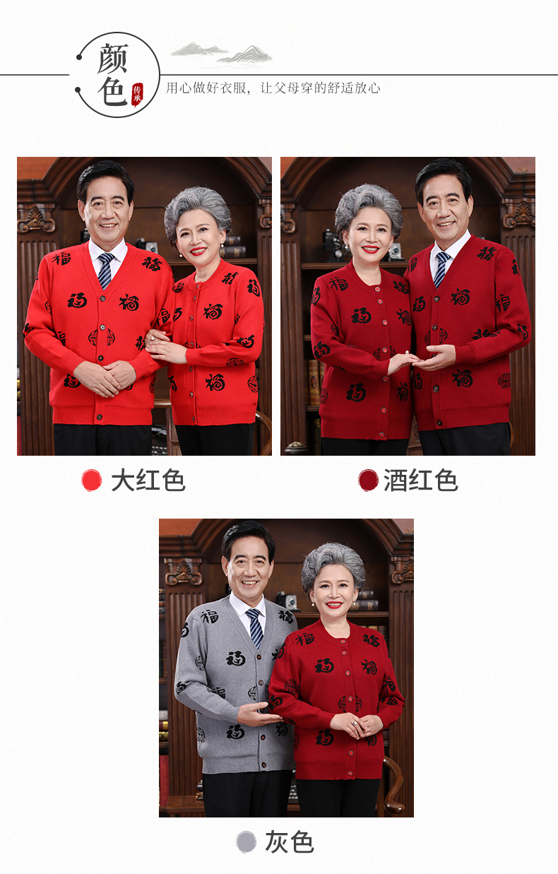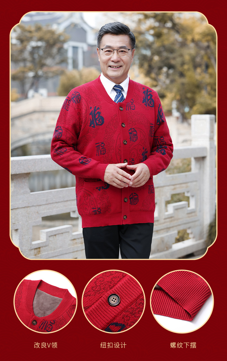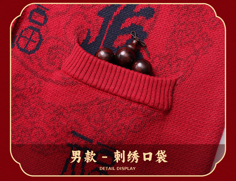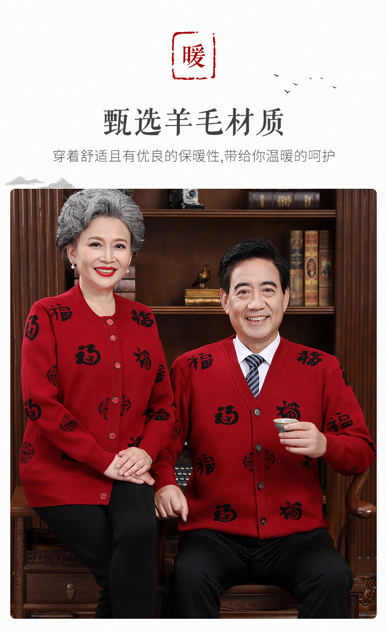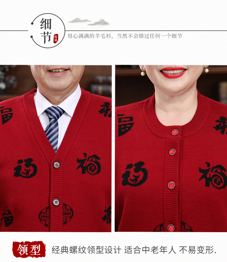 优选丨明星同款父母新年鸿福开衫/新年全身福字套头红色毛衣